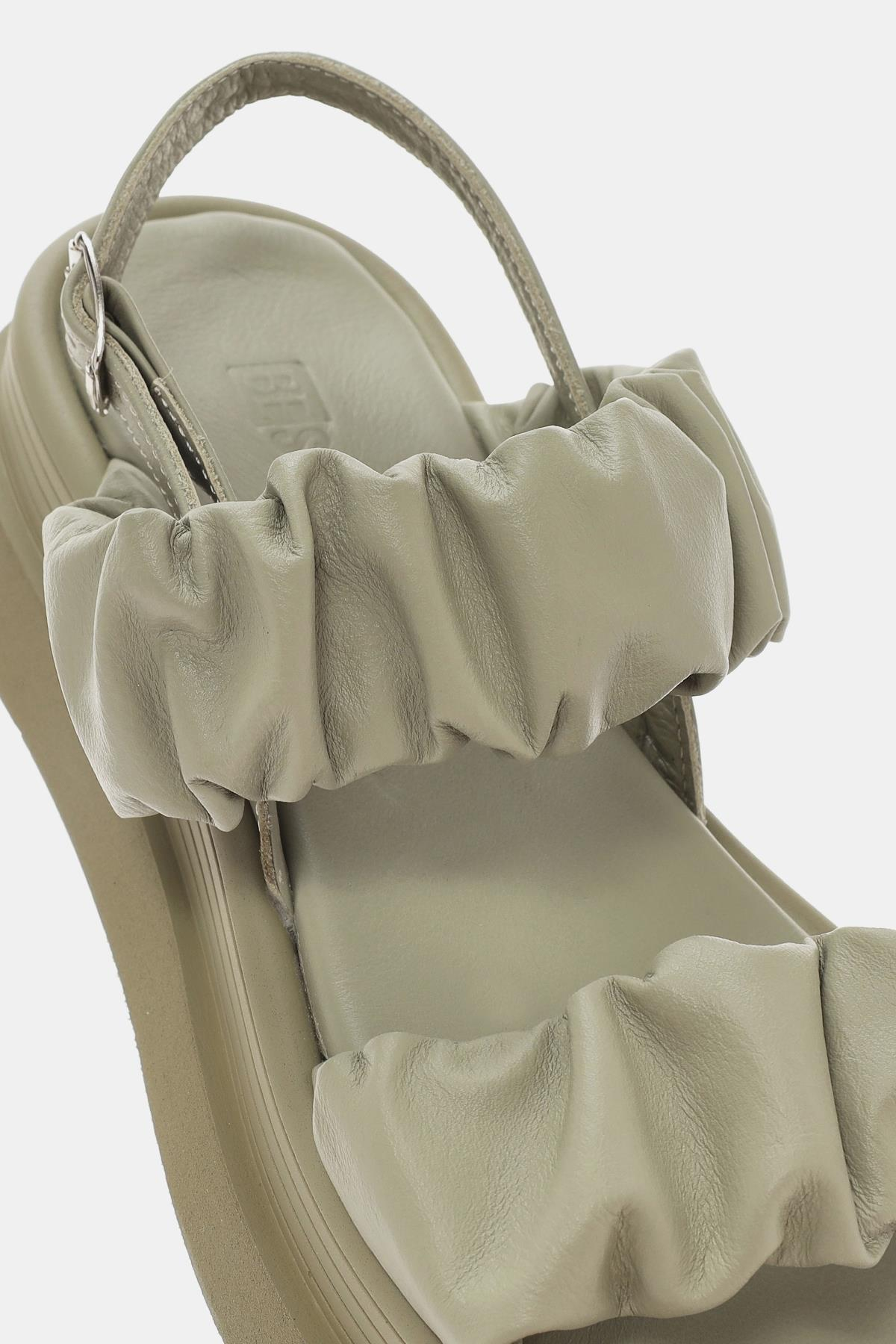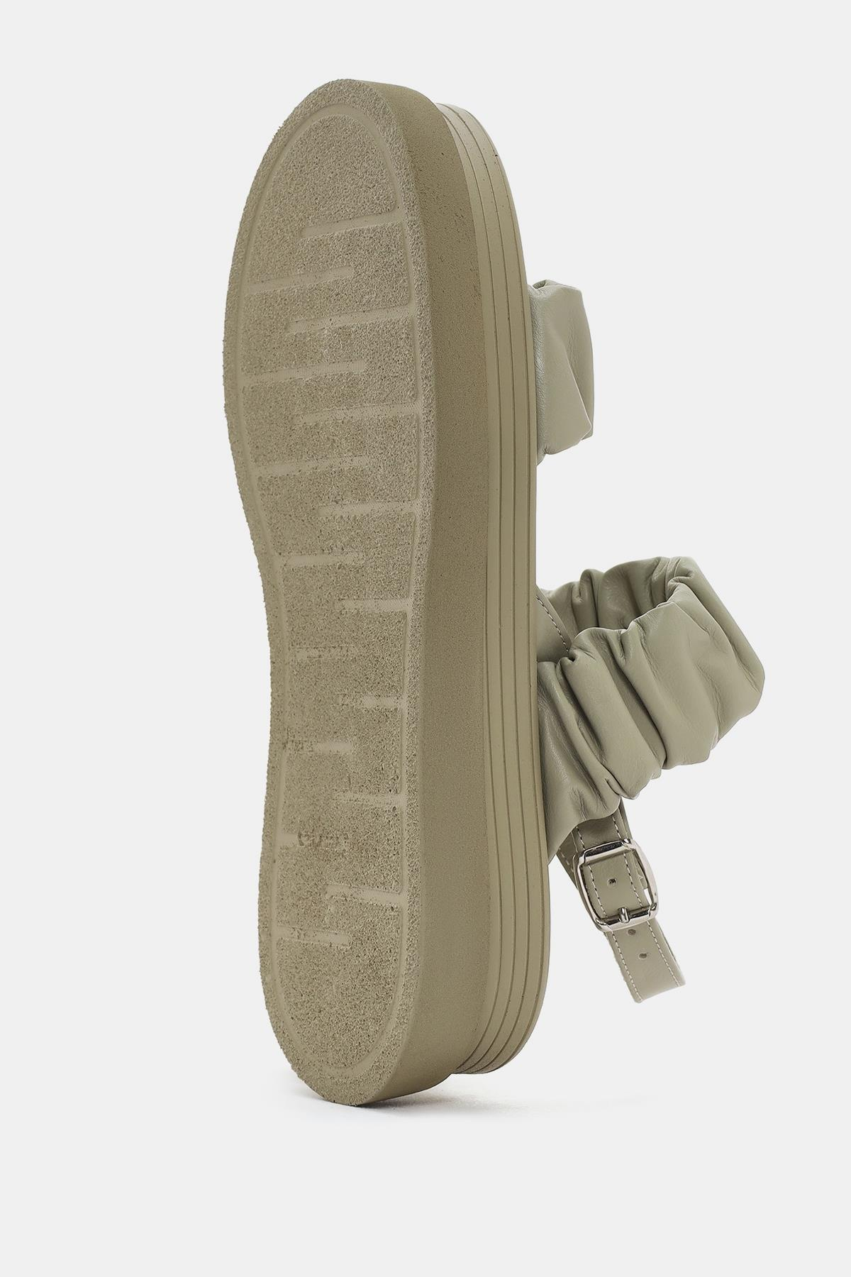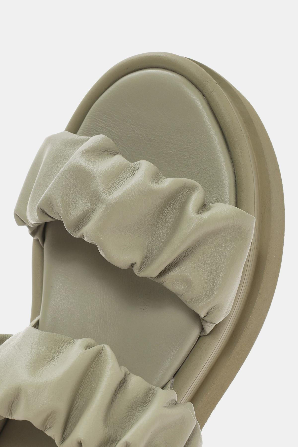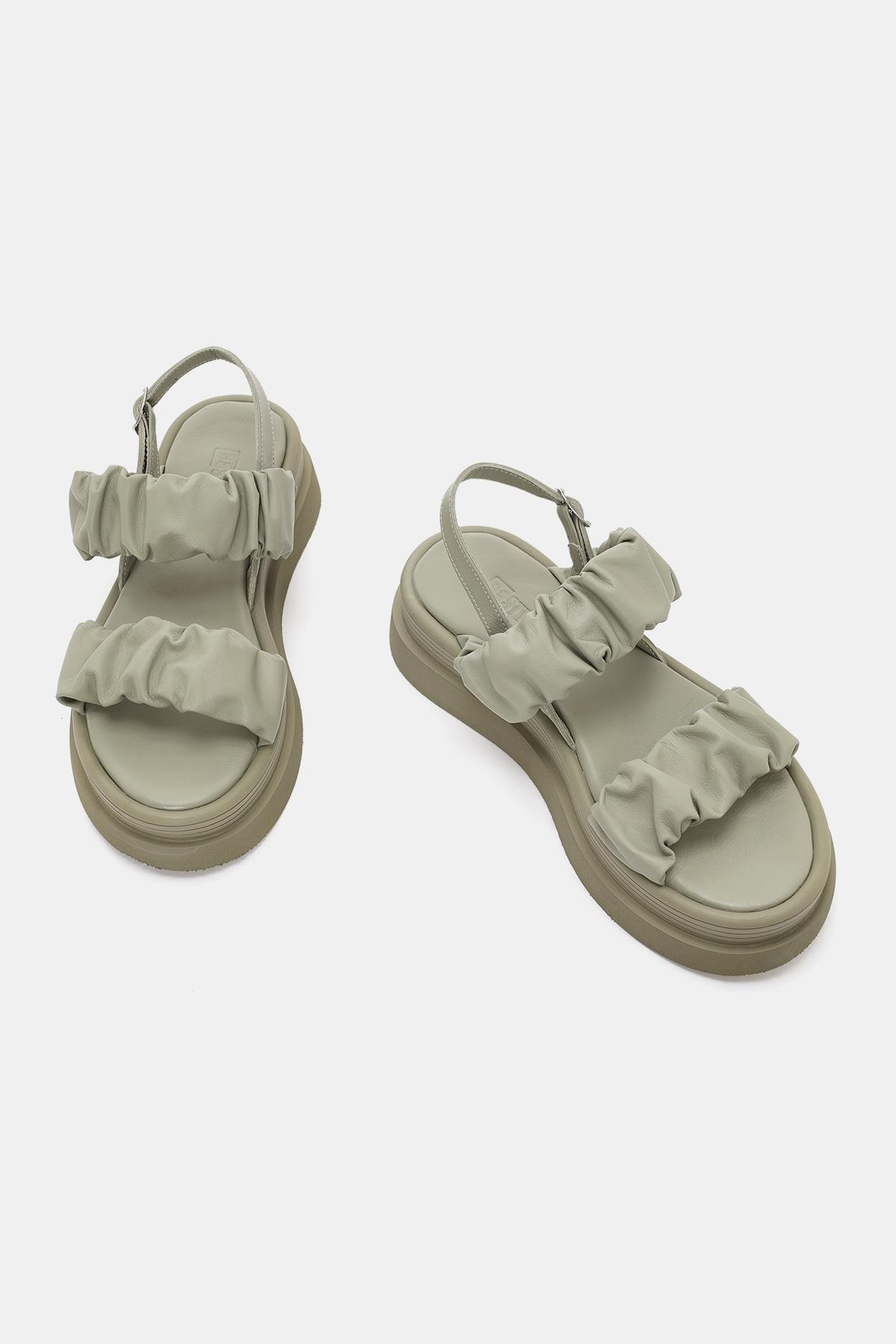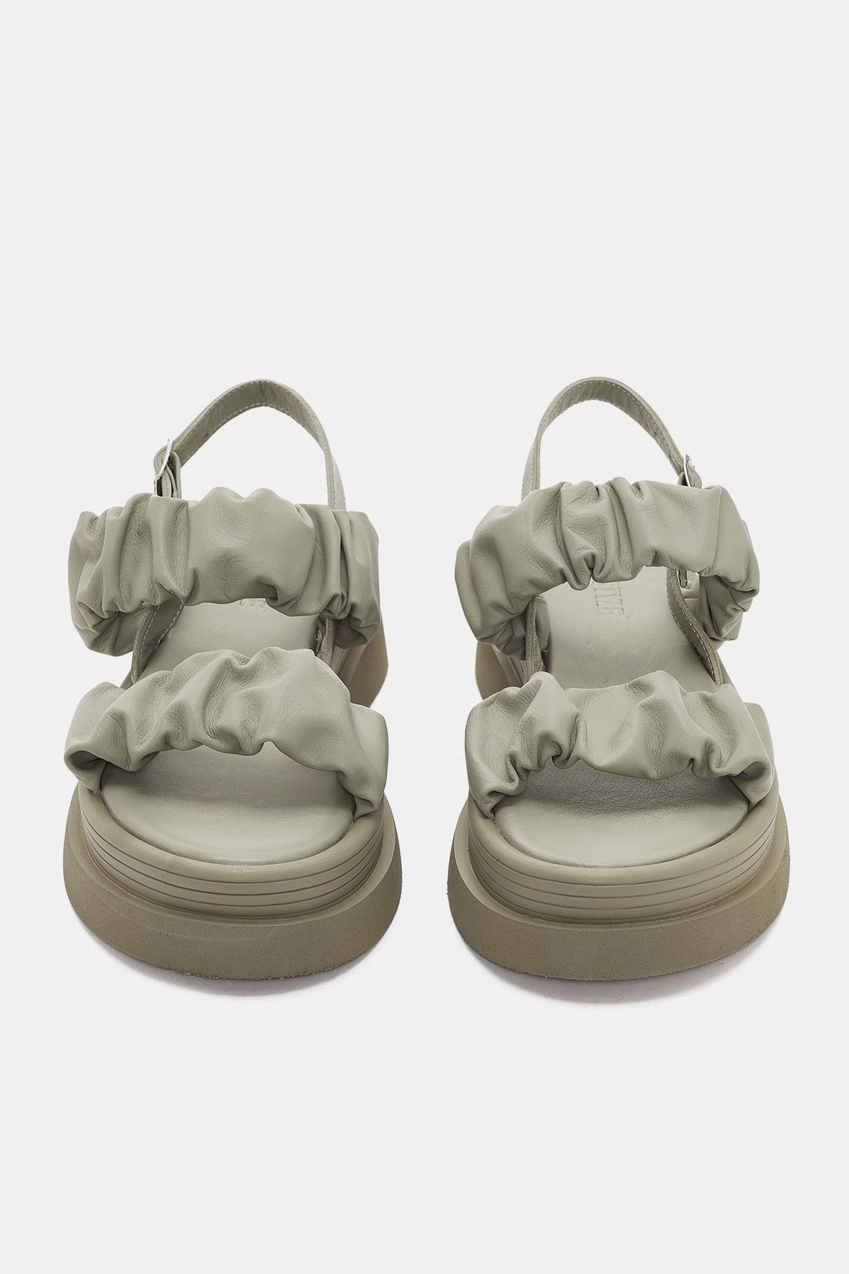 Oliva Kadın Haki Gerçek Deri Sandalet (OTS2129-Haki)