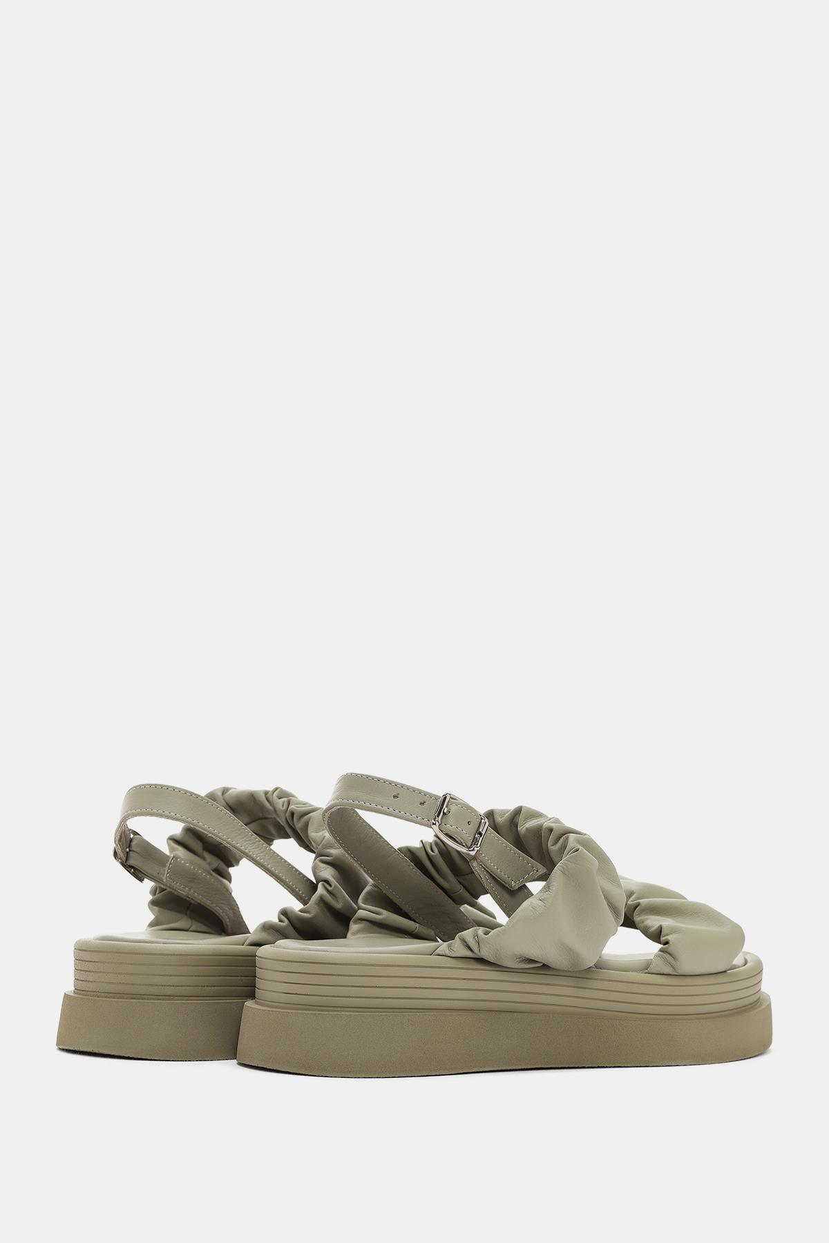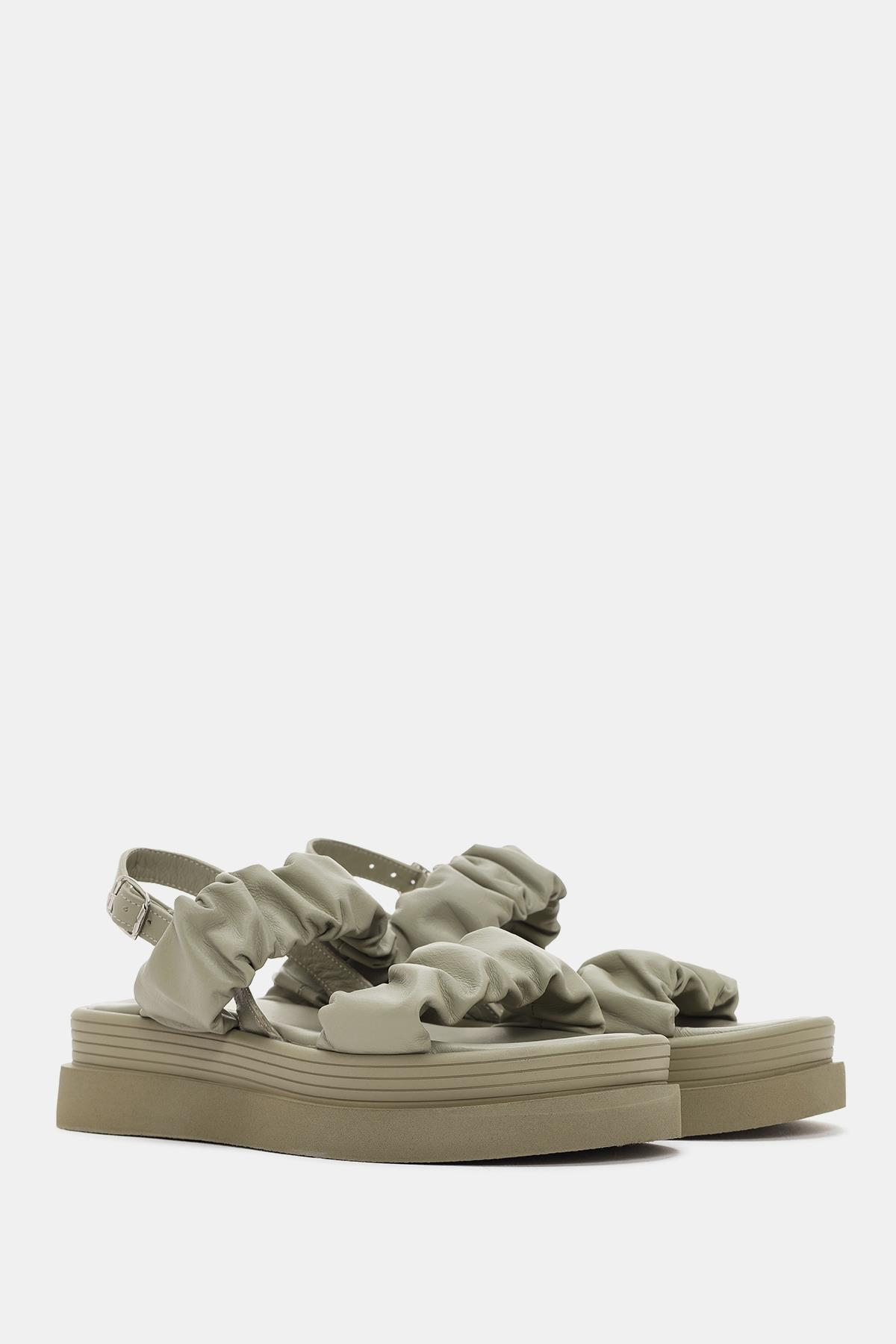 Oliva Kadın Haki Gerçek Deri Sandalet