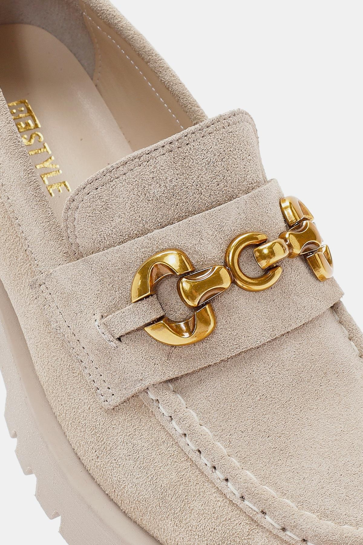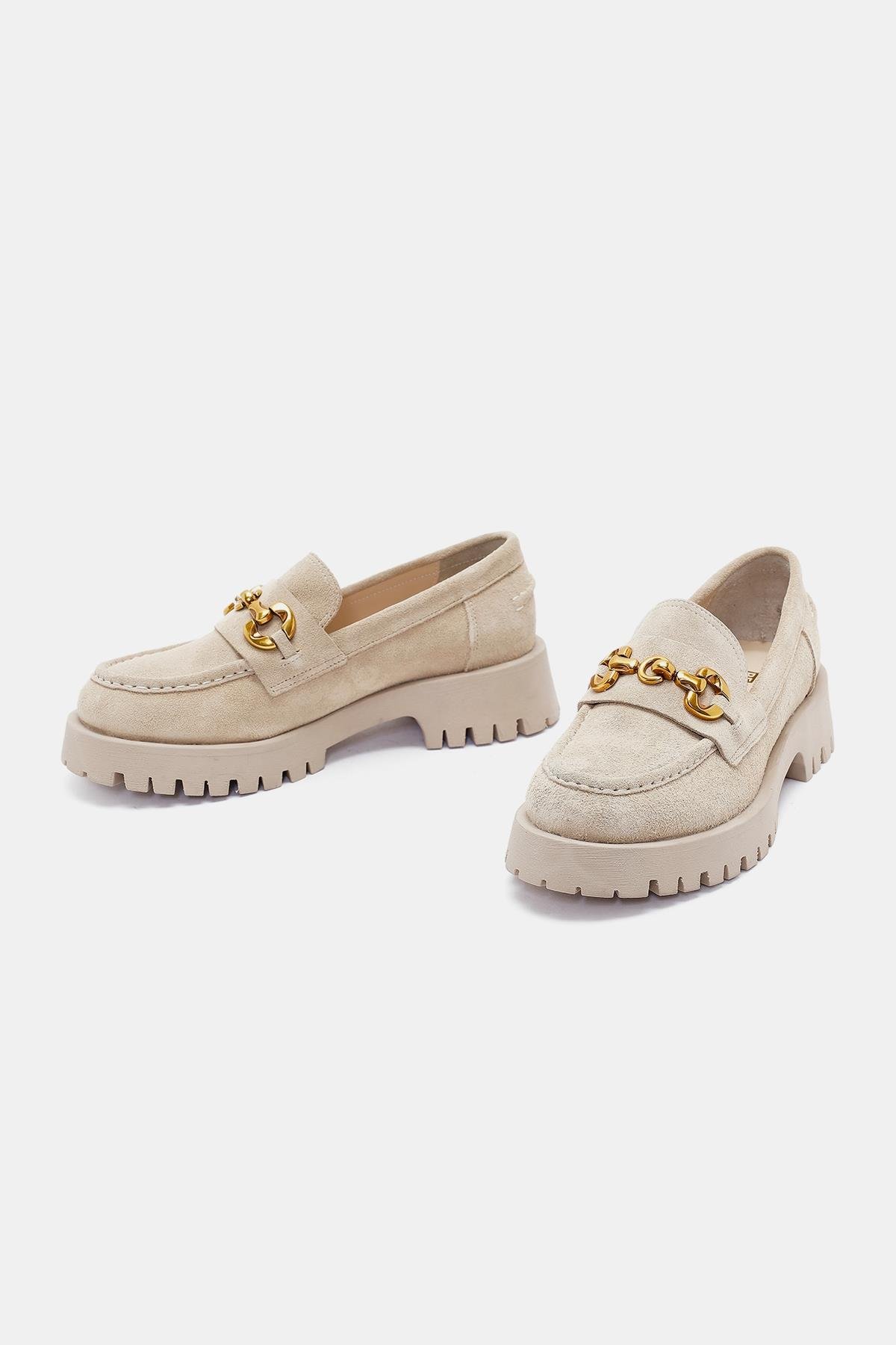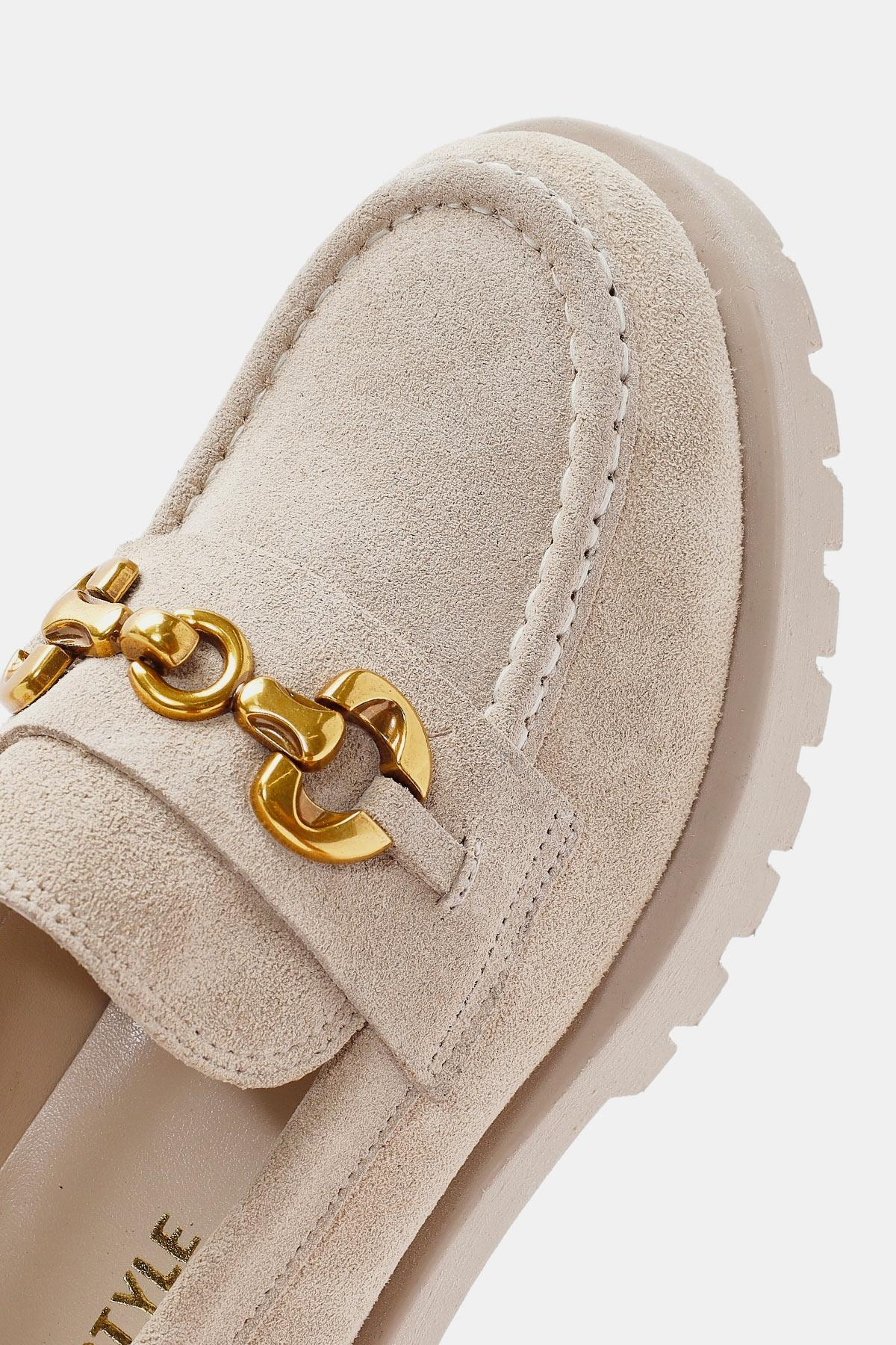 Pamela Kadın Bej Gerçek Süet Deri Toka Detaylı Loafer