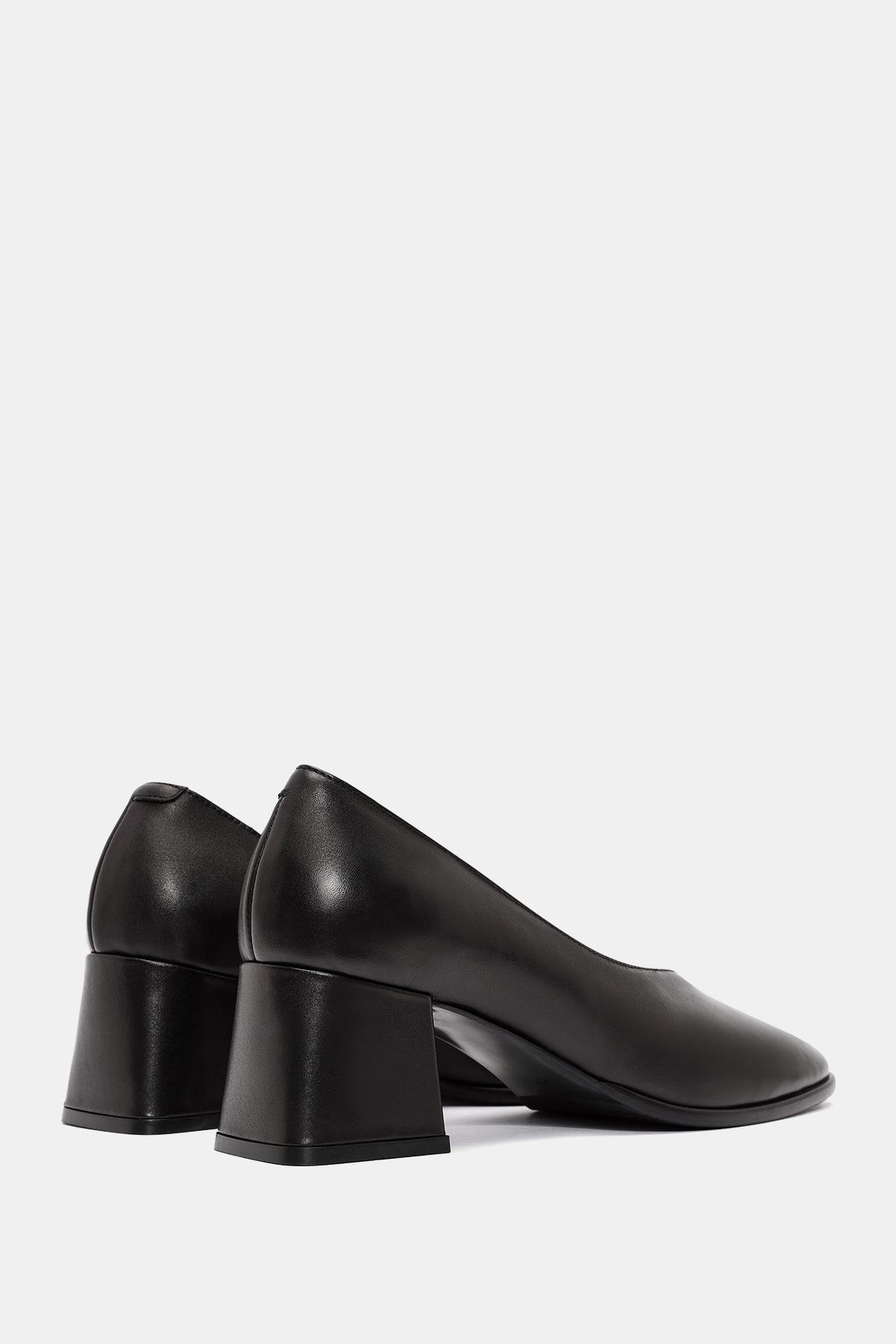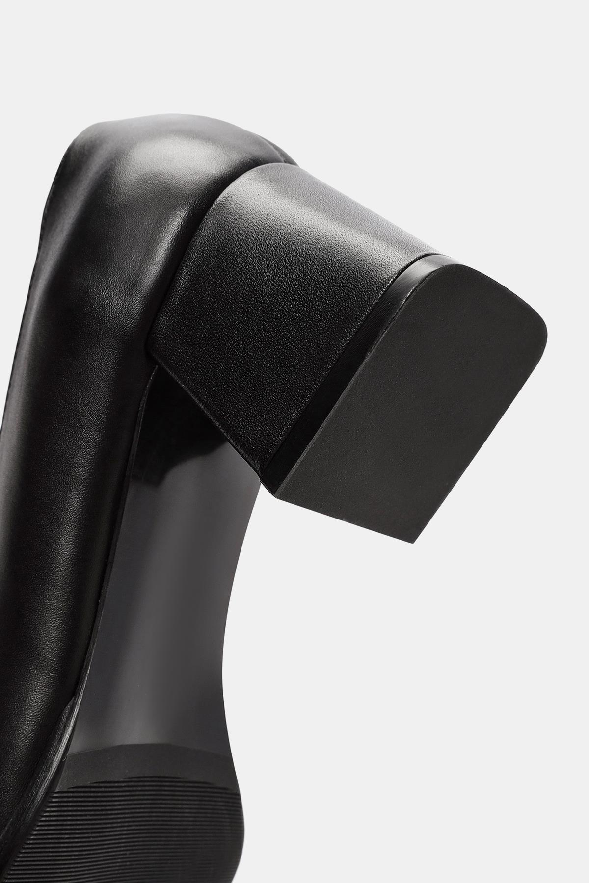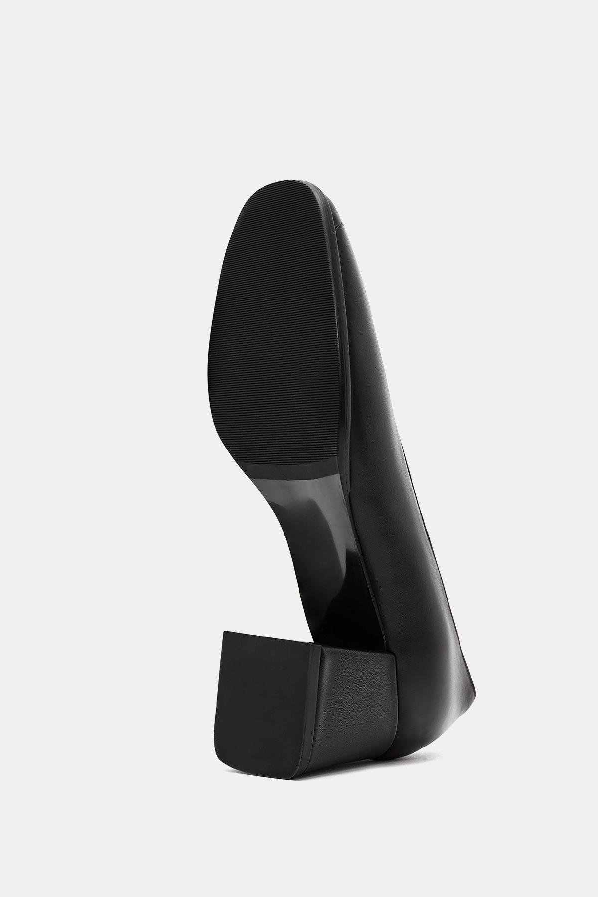 Pitka Kadın Siyah Gerçek Deri Kalın Topuklu Ayakkabı