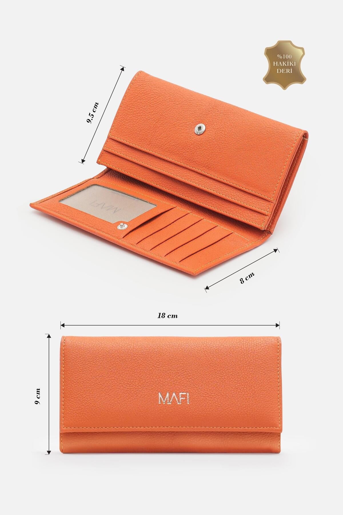 %100 Gerçek Deri %100 Hakiki Deri Kadın Turuncu Cüzdan