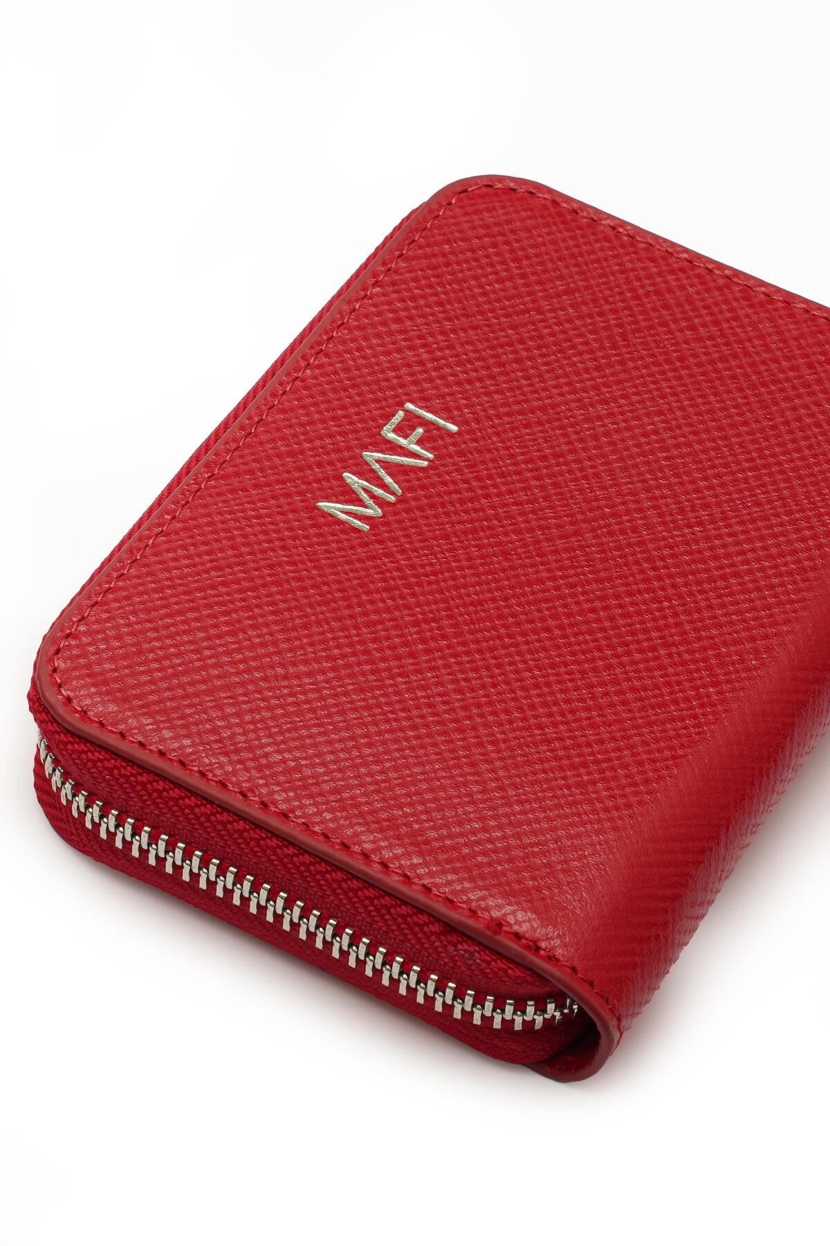 %100 Gerçek Deri Aria Hakiki Deri Fermuarlı Kırmızı Cüzdan