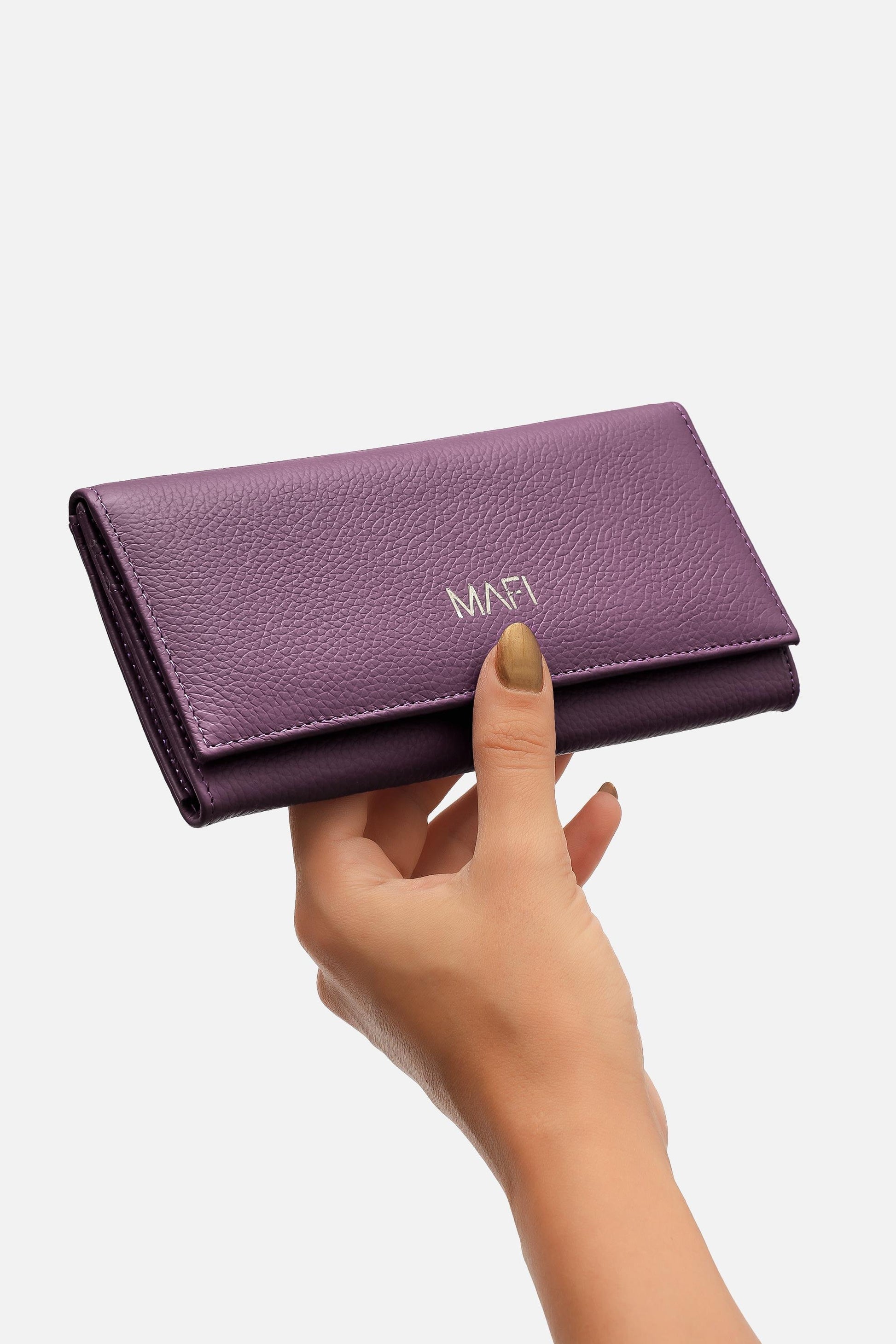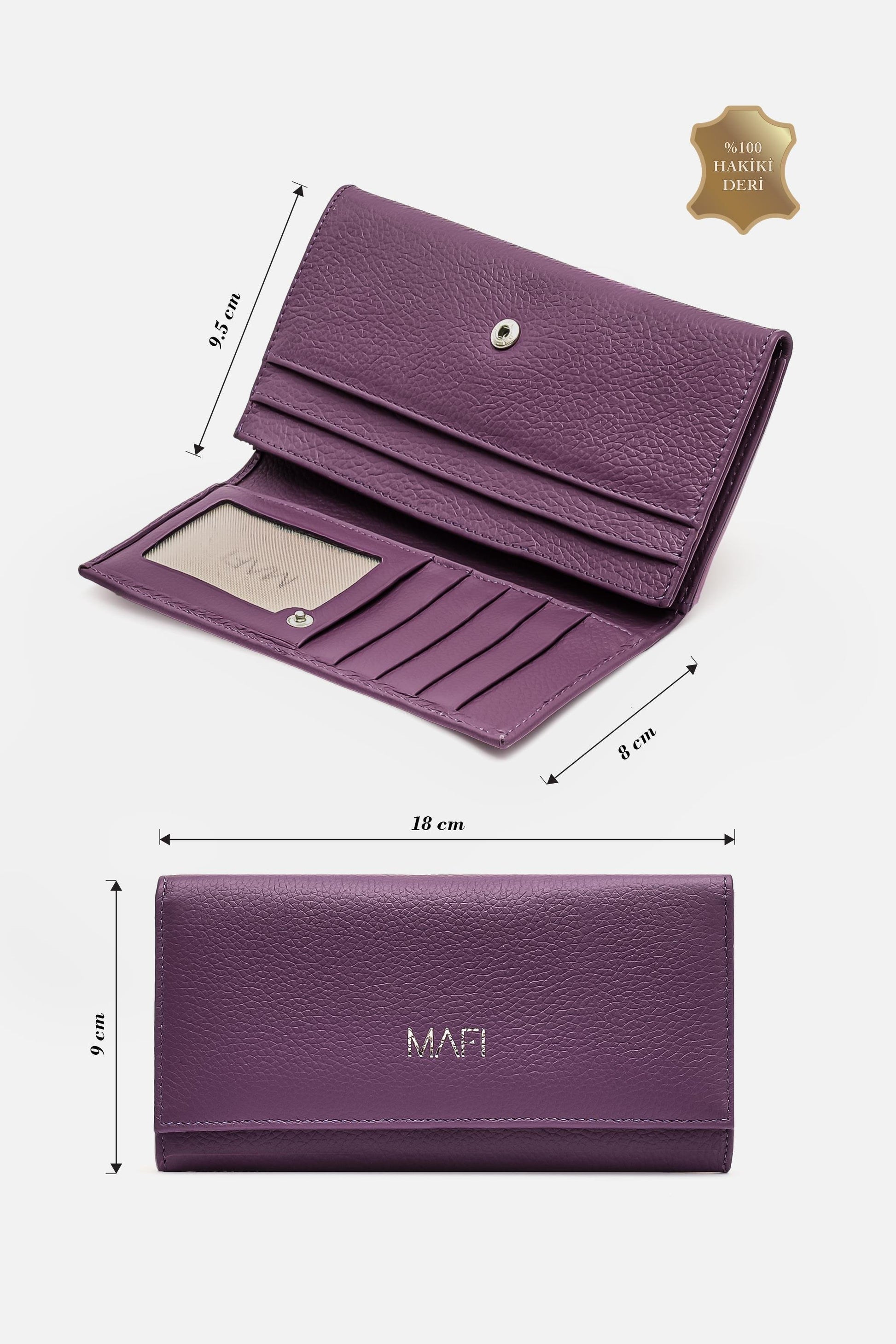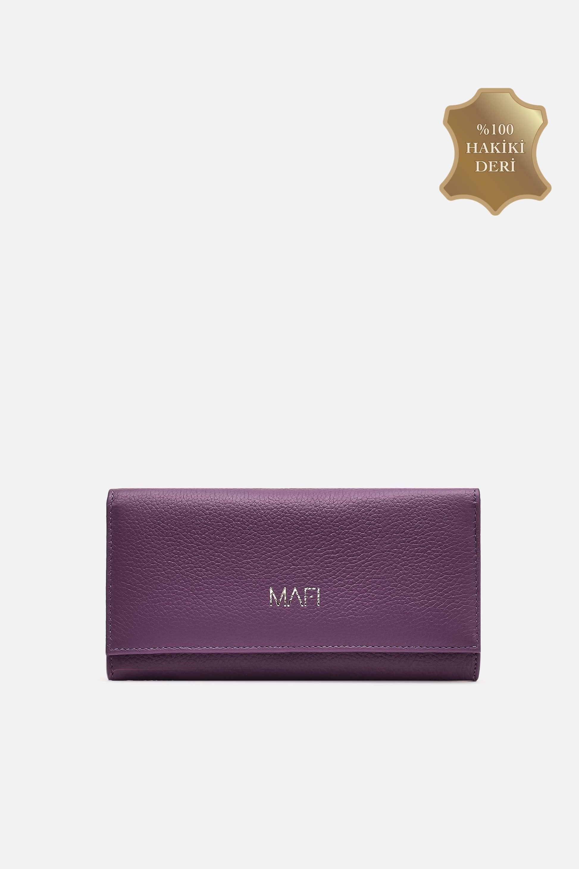 %100 Gerçek Deri Mafi Ram %100 Hakiki Deri Kadın Mor Cüzdan