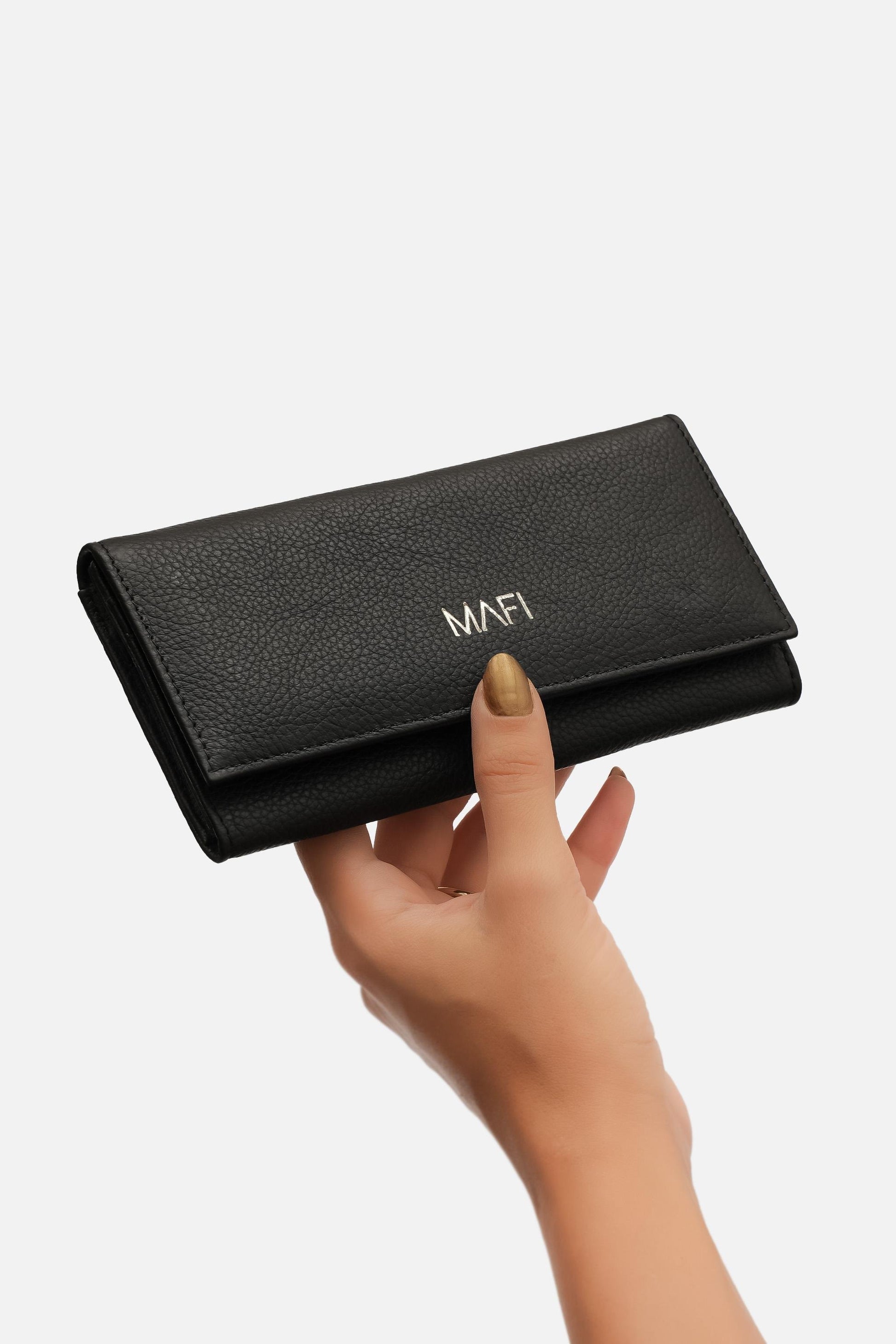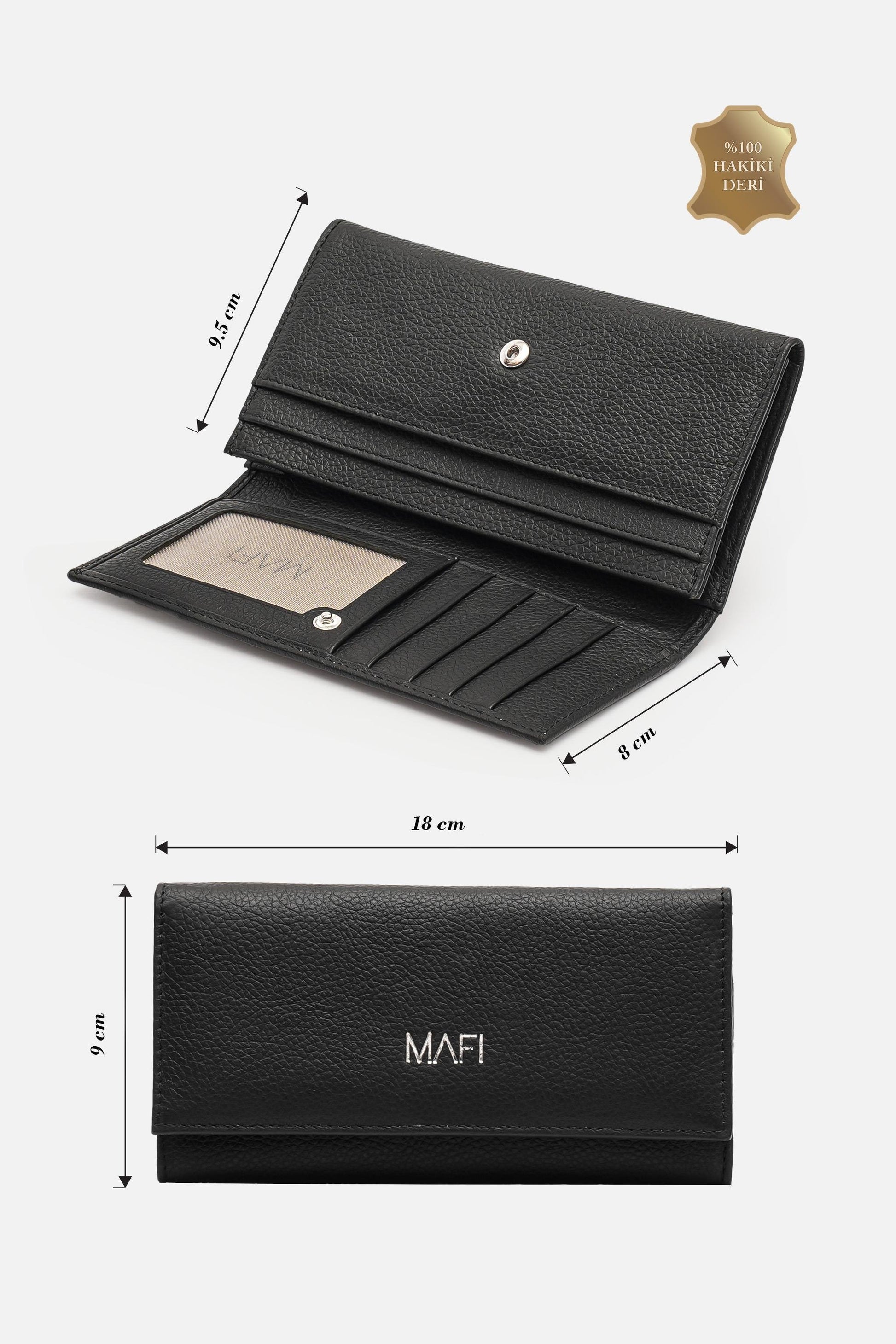 %100 Gerçek Deri Mafi Ram %100 Hakiki Deri Kadın Siyah Cüzdan
