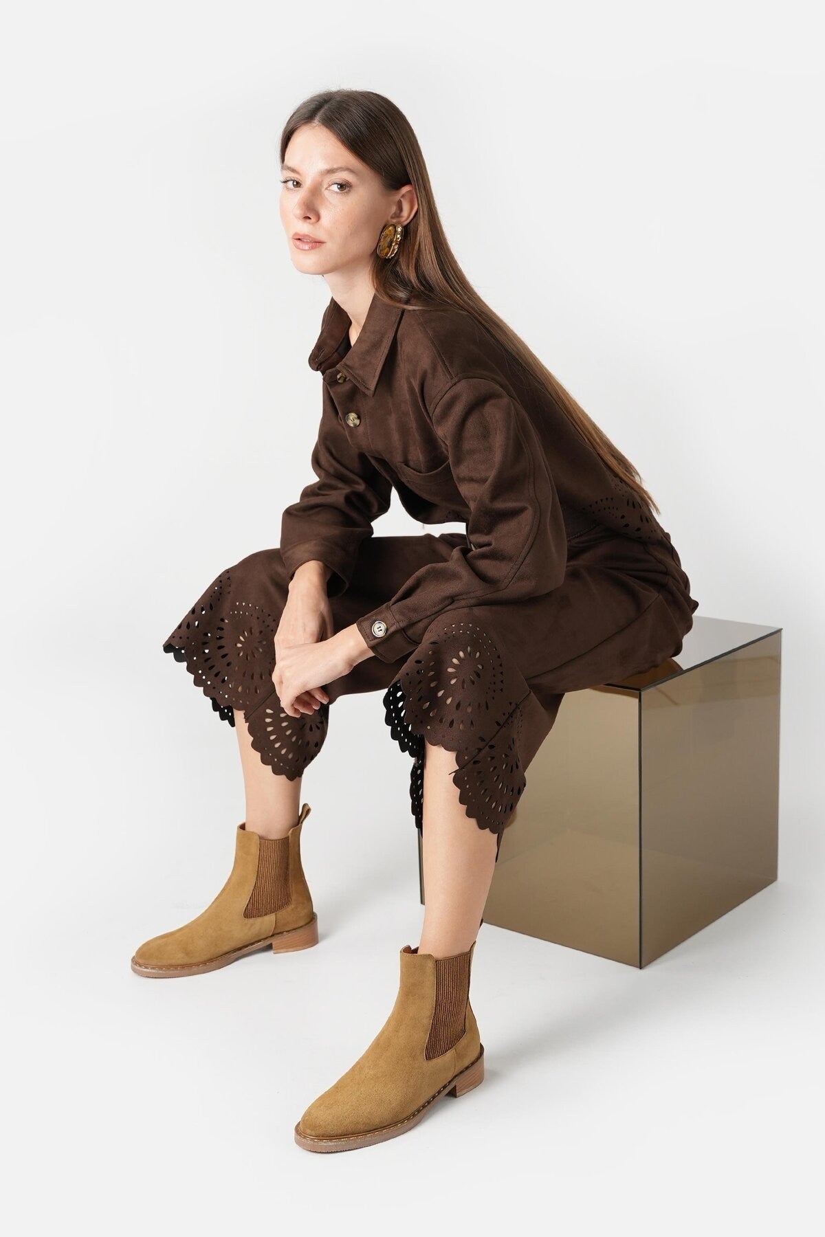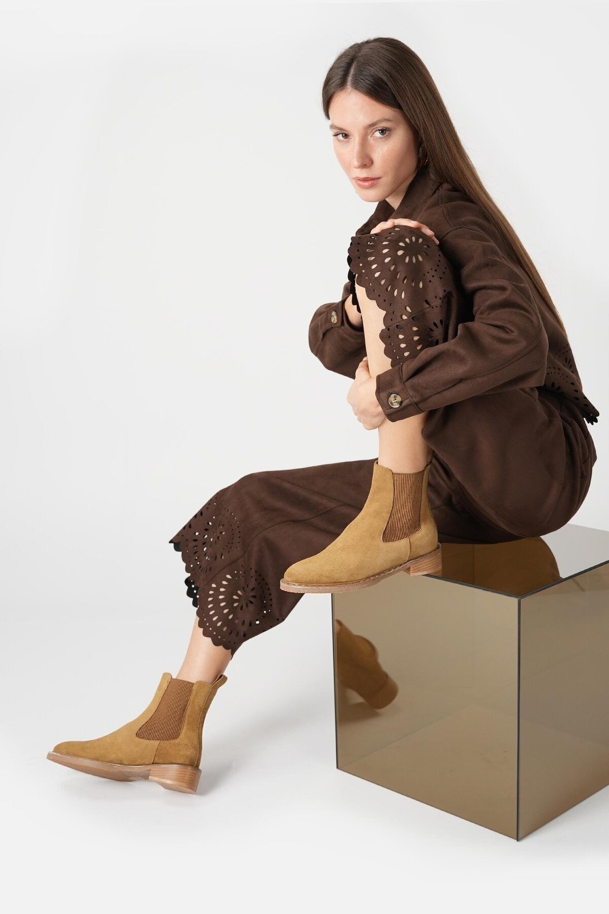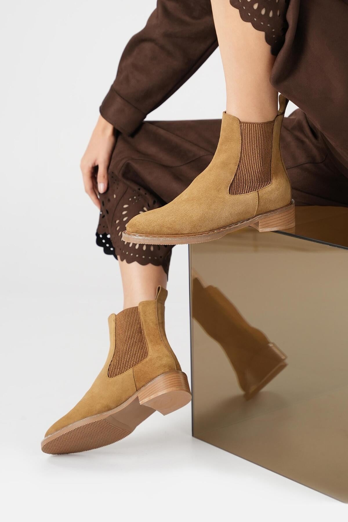 Ados Kadın Taba Süet %100 Gerçek Süet Deri Lastikli Bot