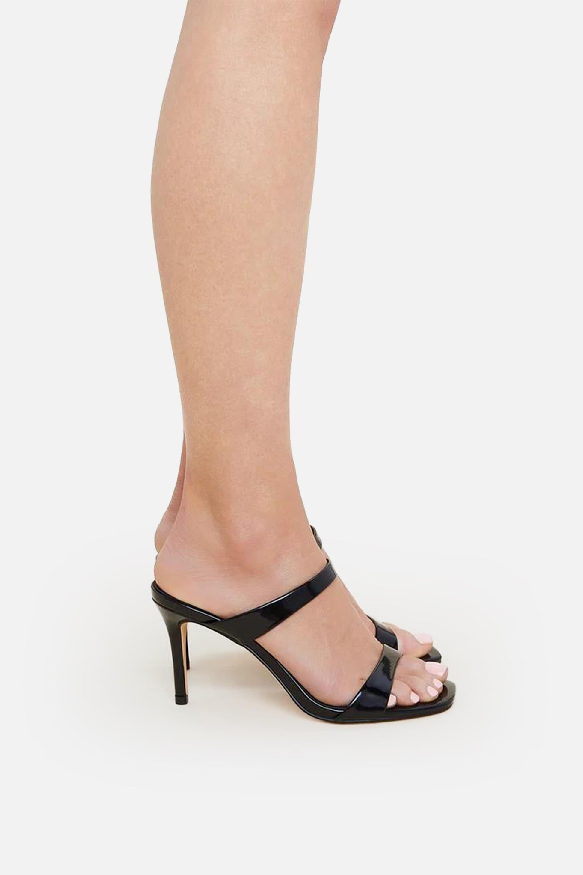 Analia Siyah Çift Bantlı Kadın İnce Topuklu Terlik