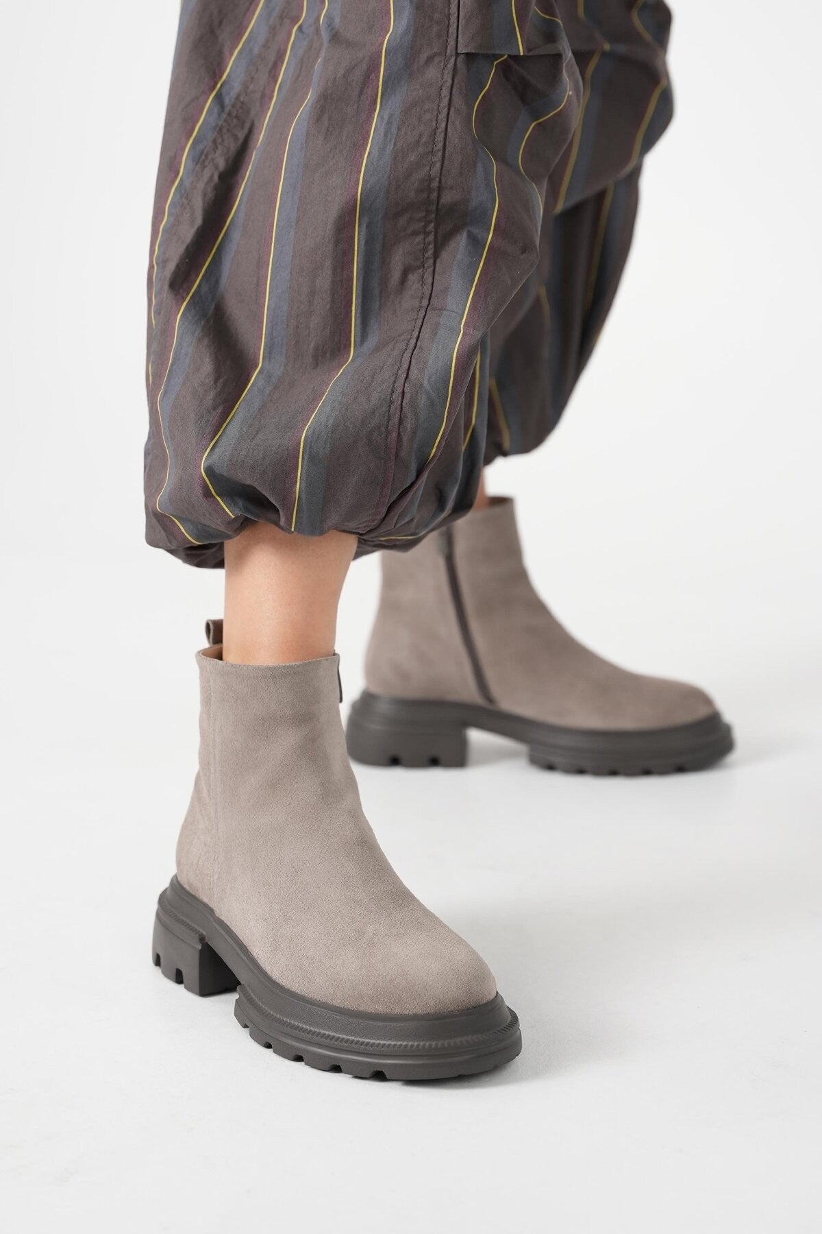 Brand Kadın Vizon %100 Gerçek Süet Deri Eva Tabanlı Fermuarlı Bot