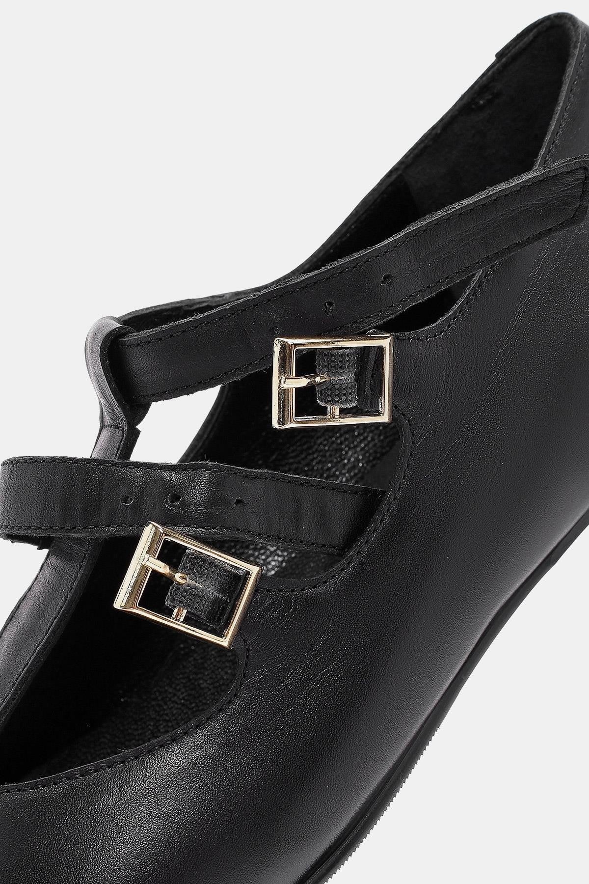 Emma Kadın Siyah Gerçek Deri Tokalı Babet