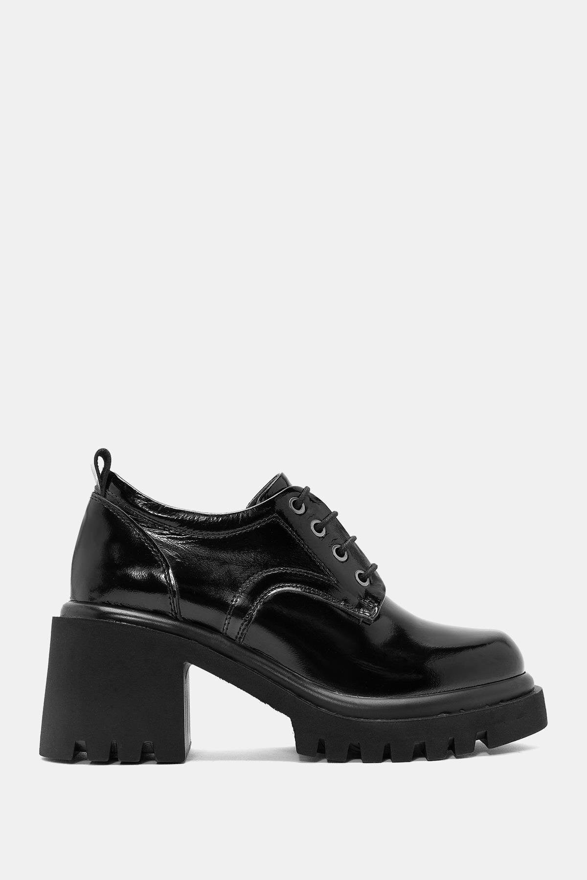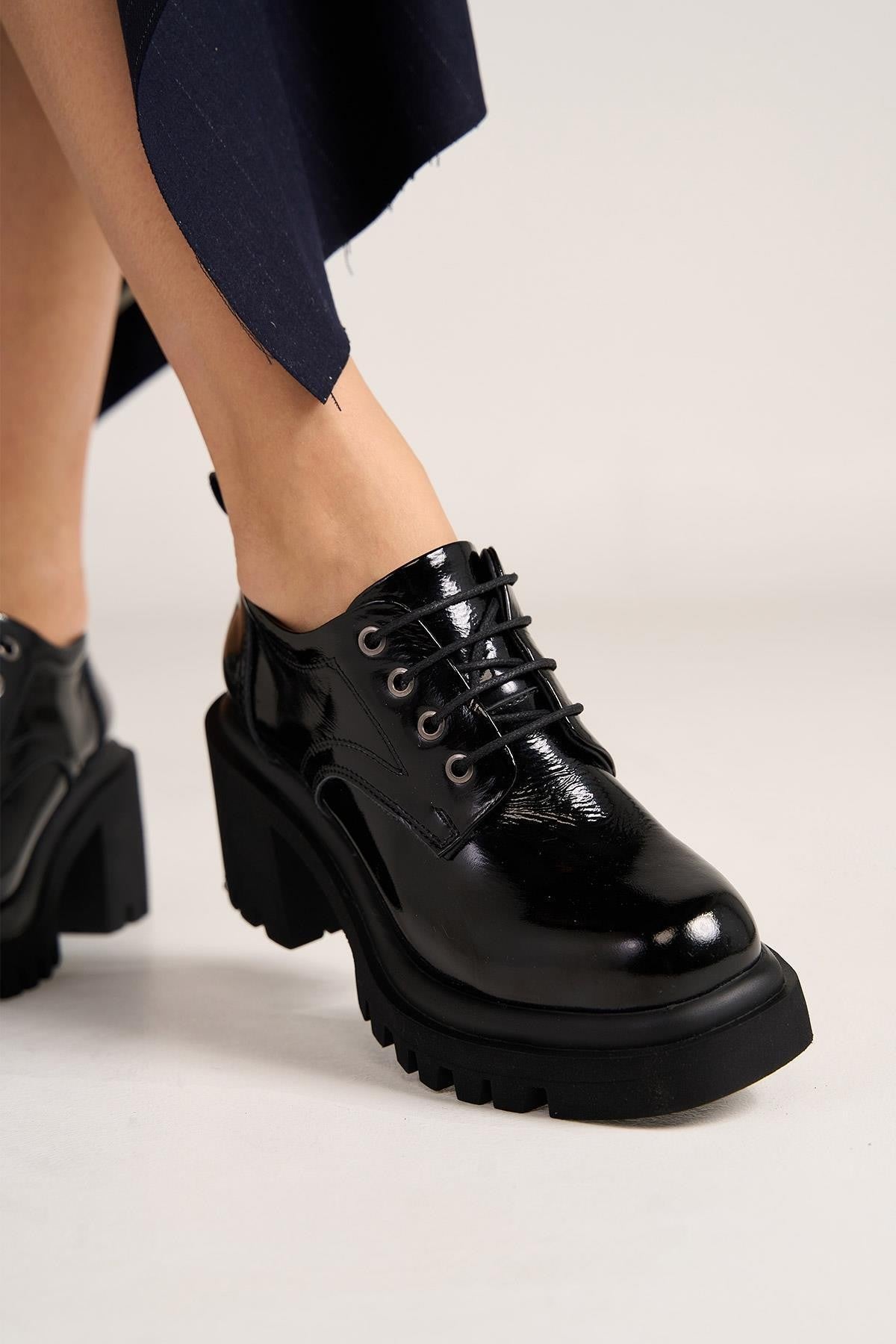 Leona Kadın Siyah Gerçek Deri Kalın Topuklu Ayakkabı