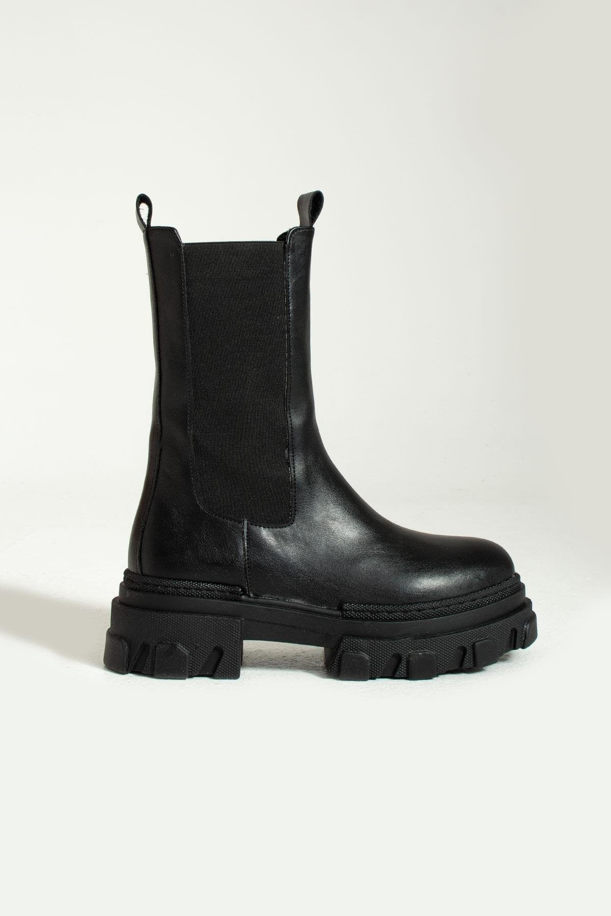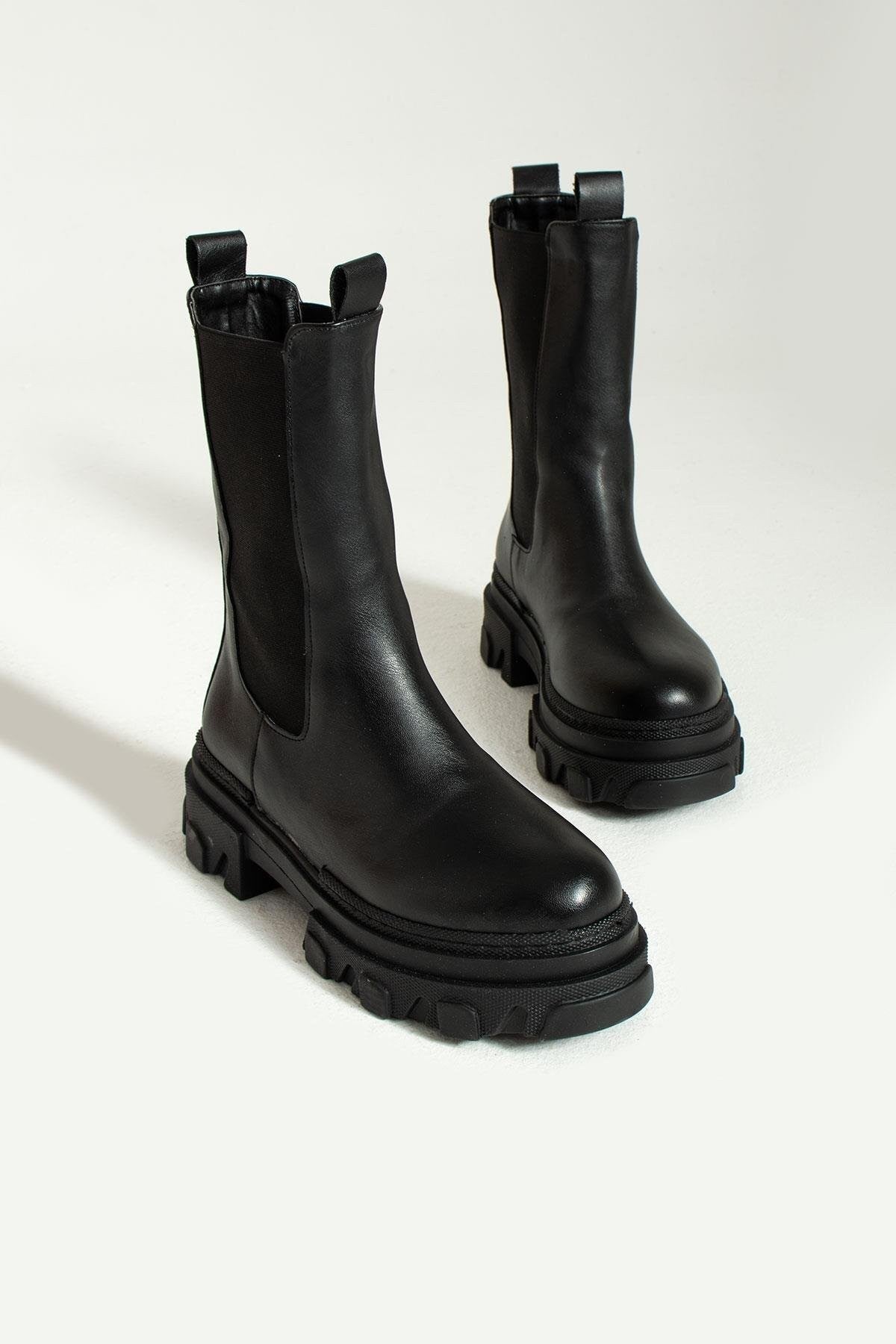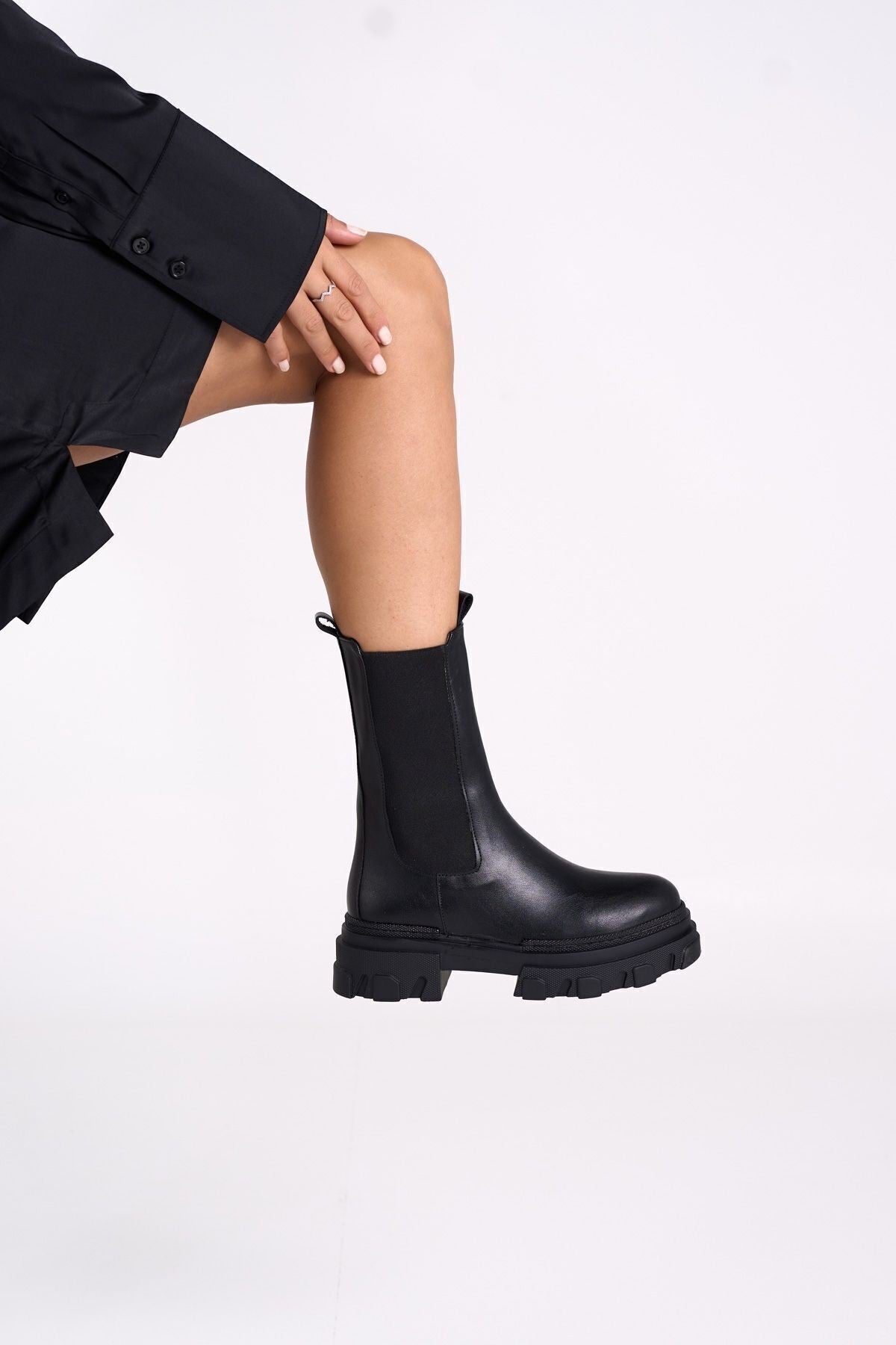 Loey Kadın PU Siyah Uzun Chelsea Bot