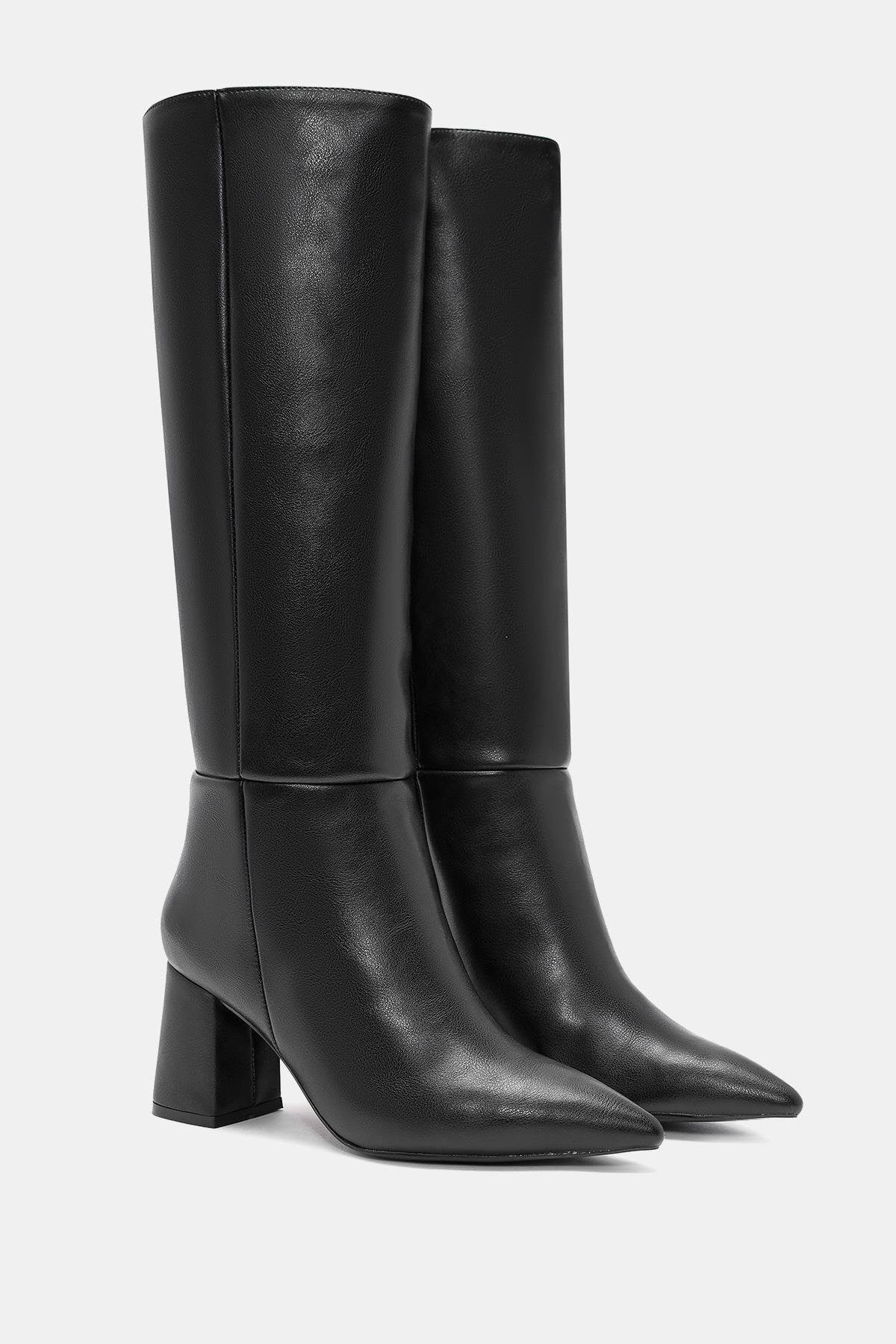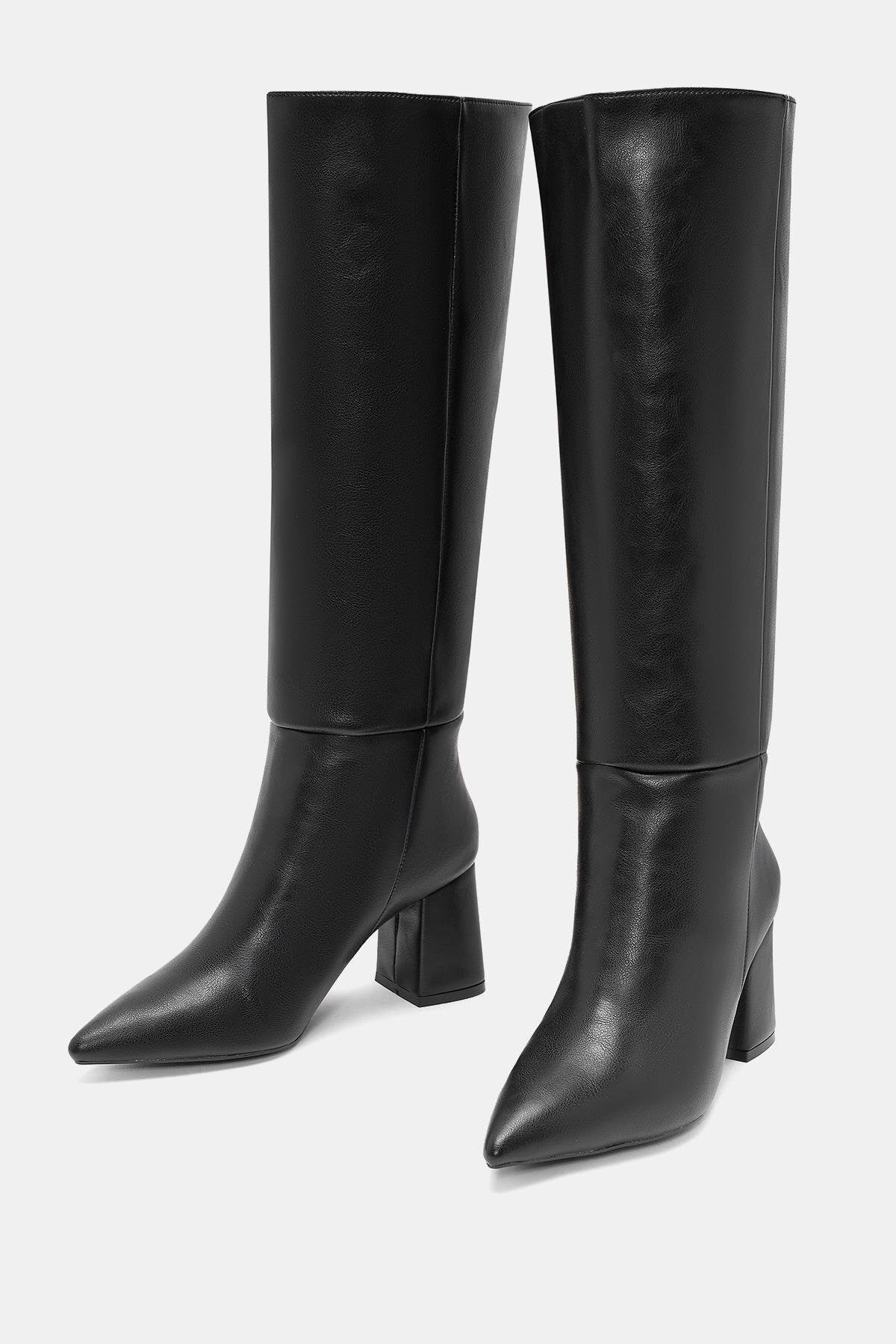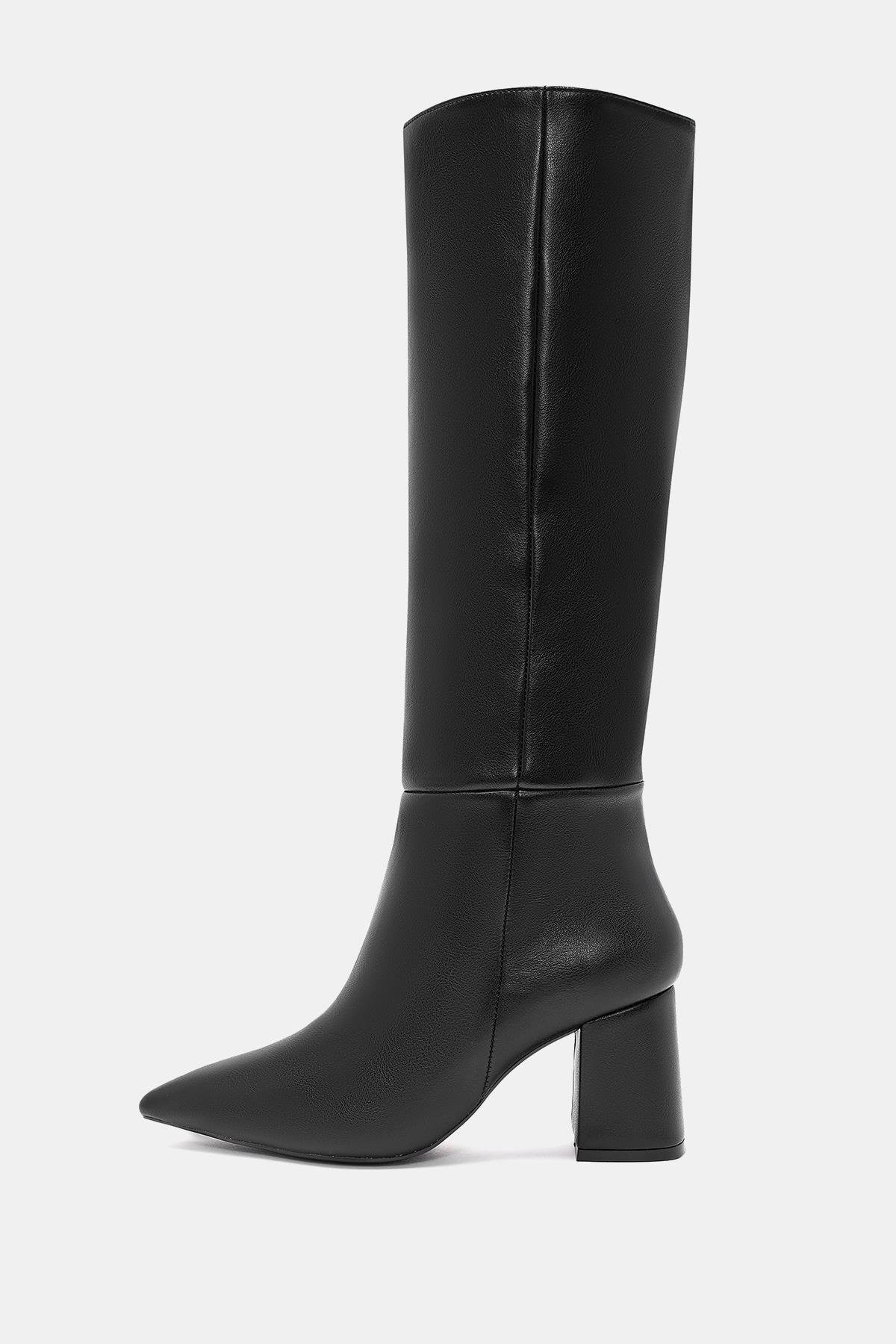 Lopez Kadın Siyah Sivri Burun Kalın Topuklu Çizme