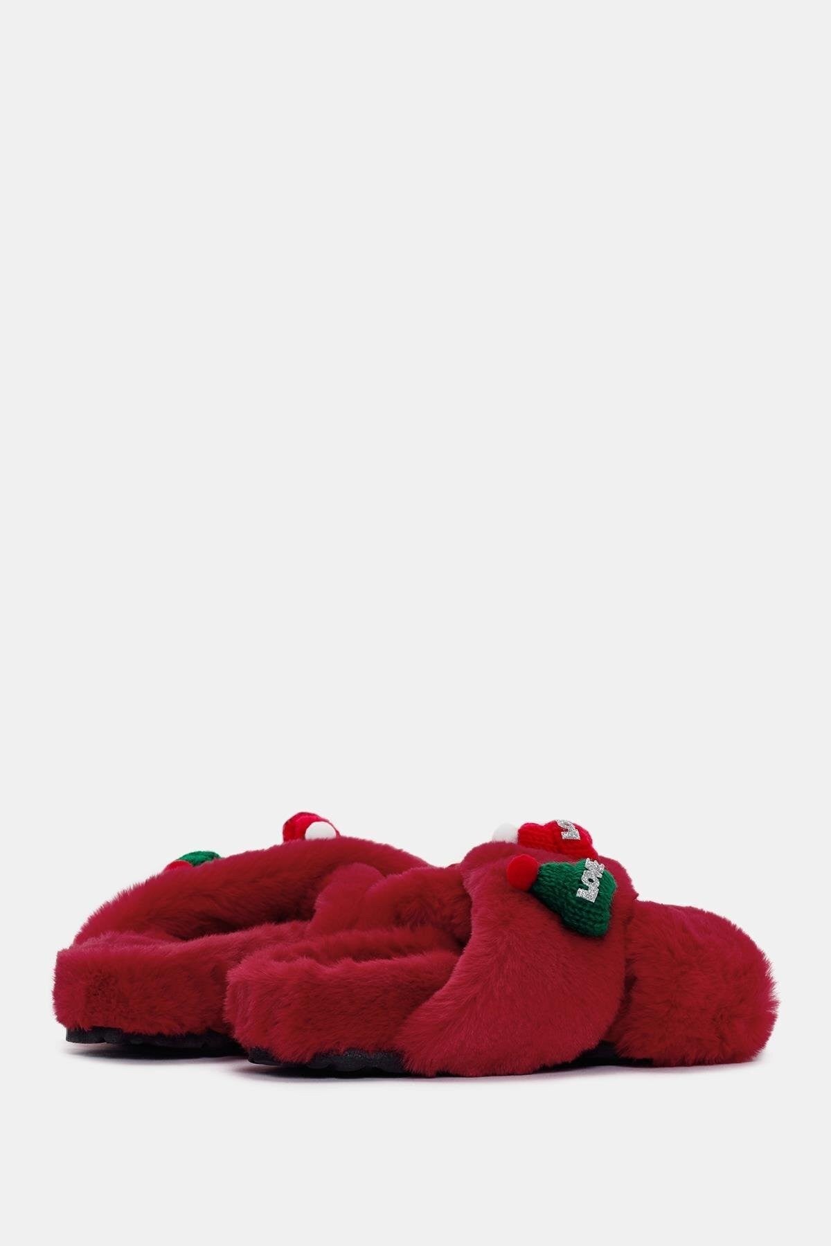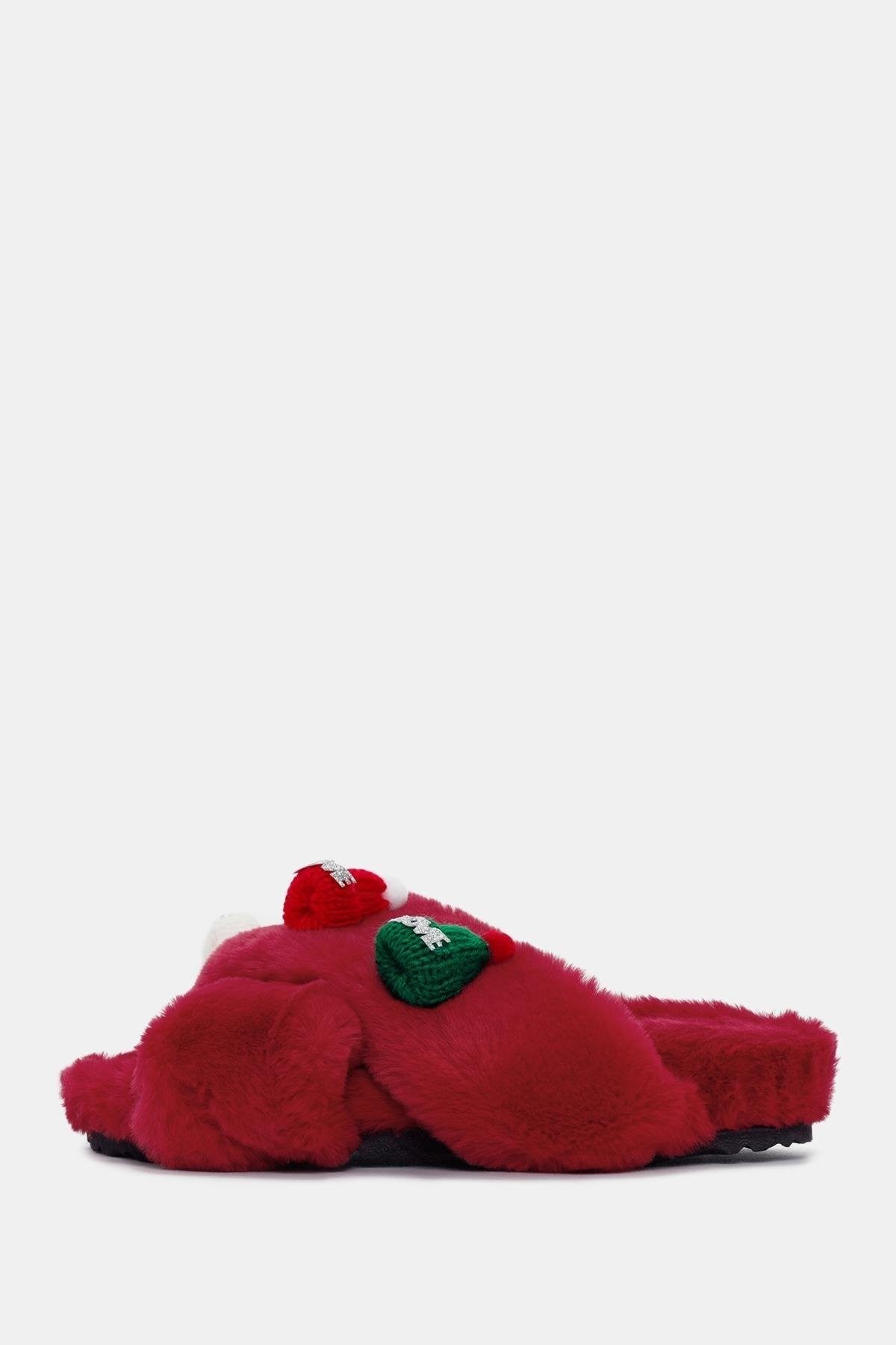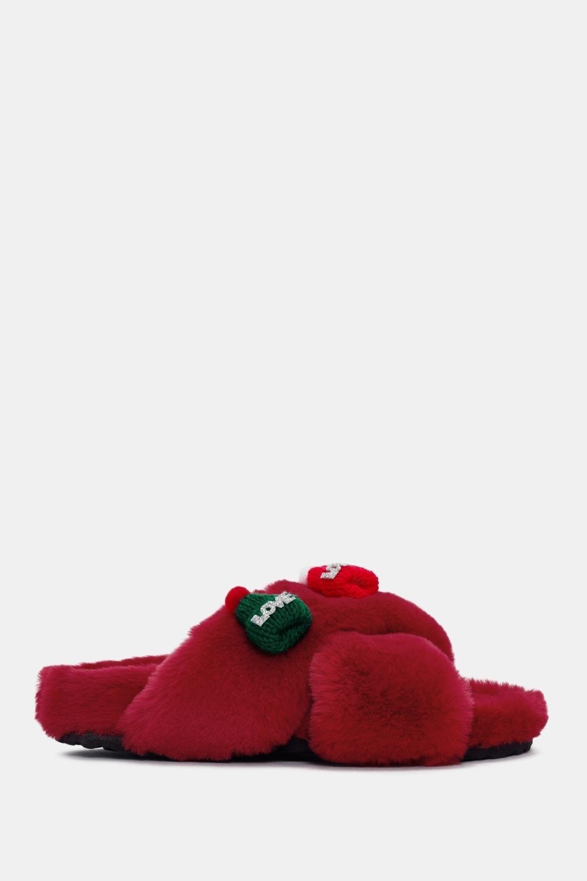 Love Kadın Kırmızı Tüylü Ev Terliği
