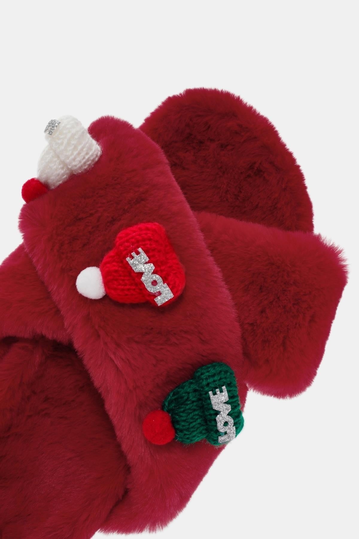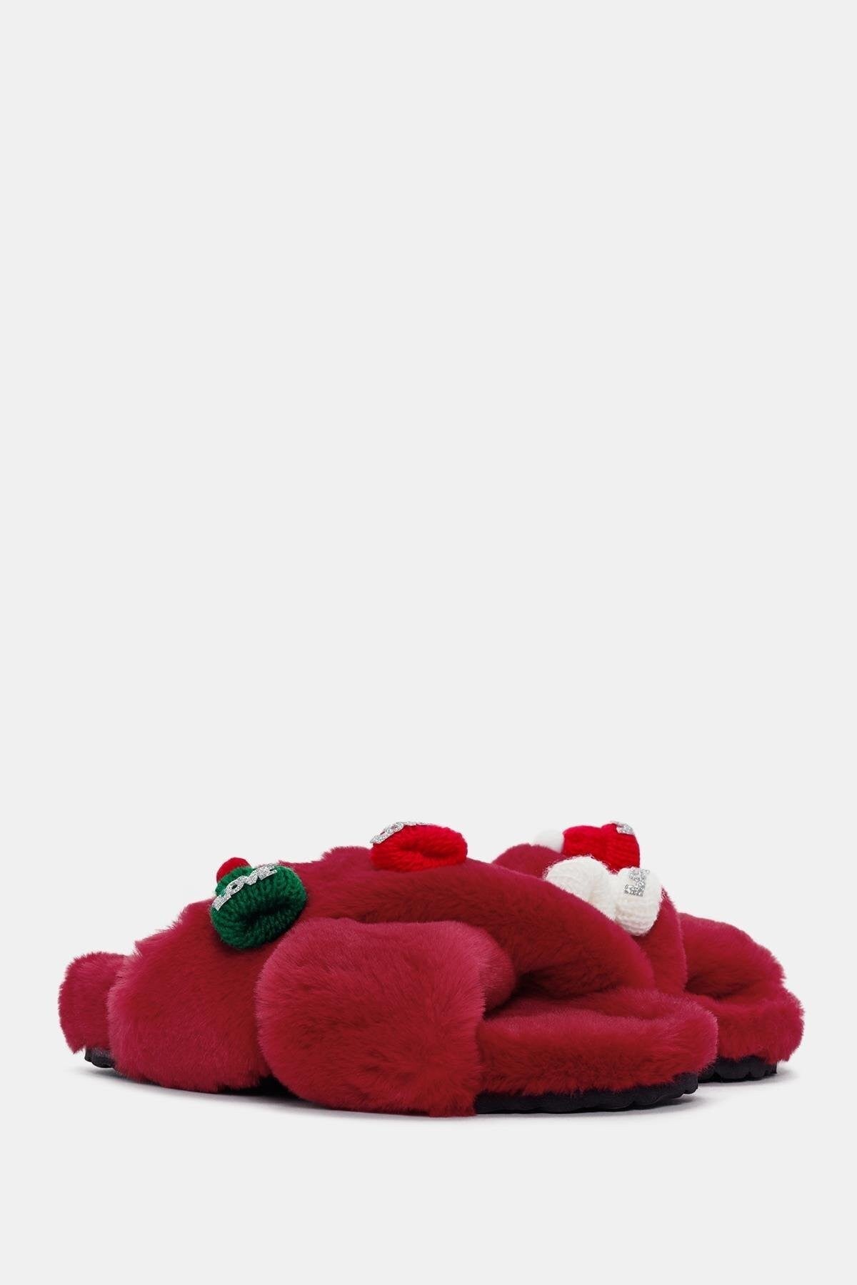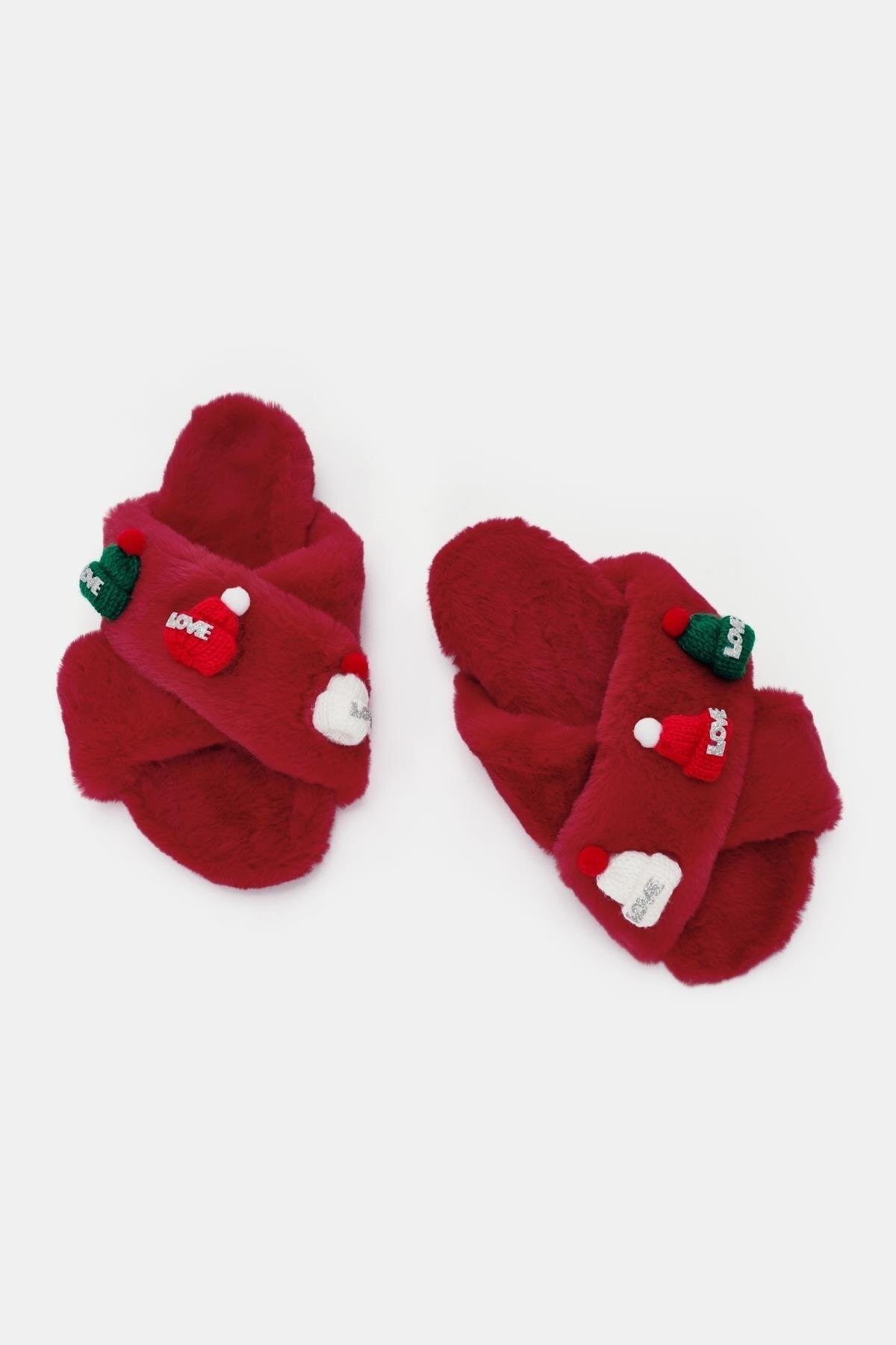 Love Kadın Kırmızı Tüylü Ev Terliği