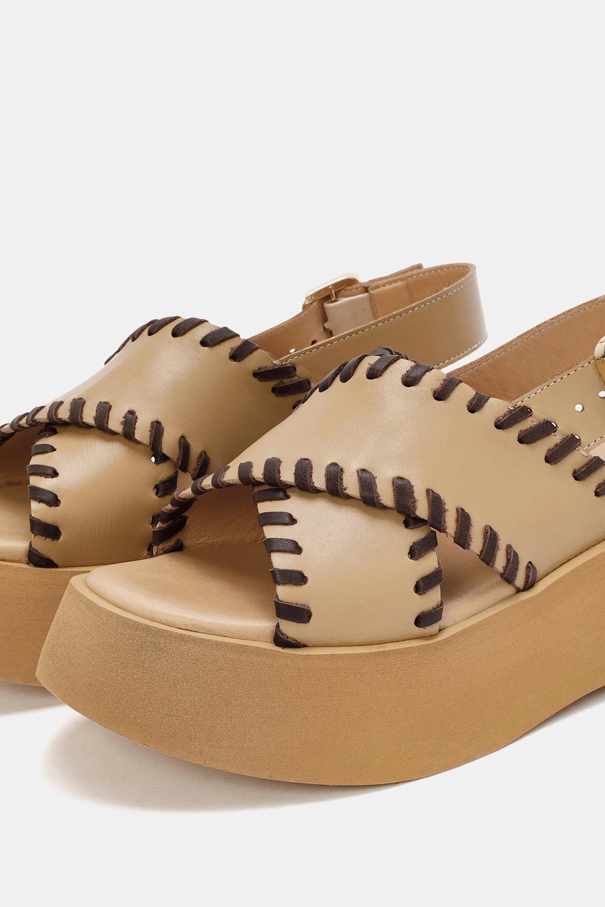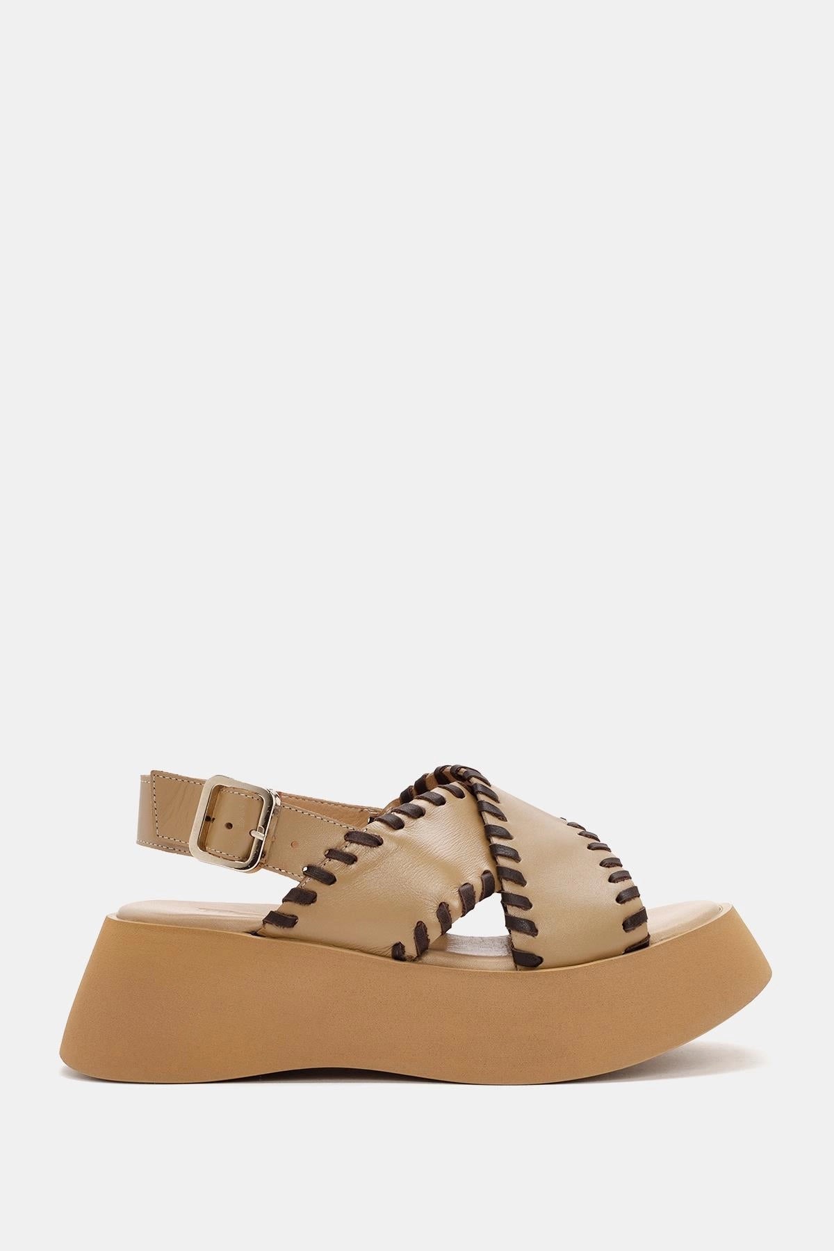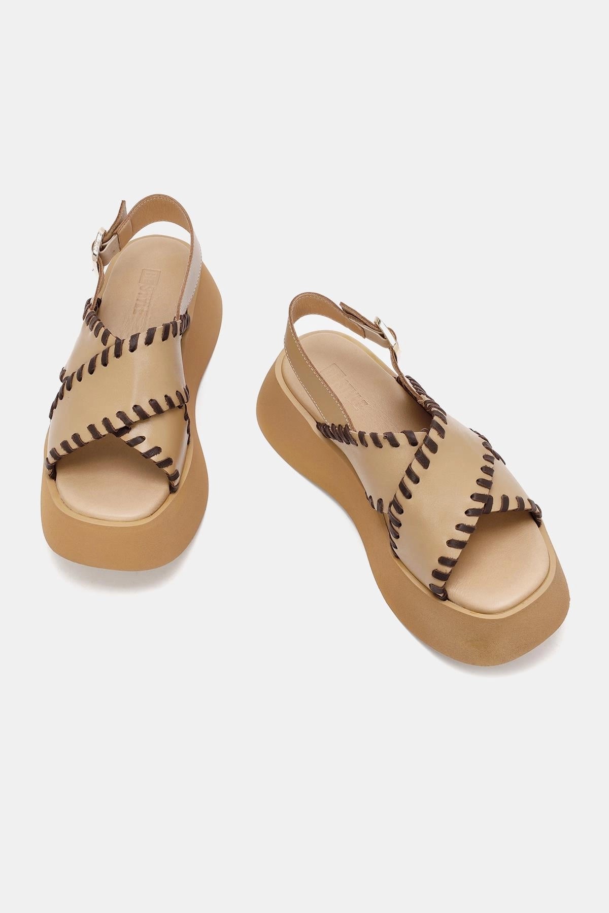 Maria Kadın Krem Kemerli Gerçek Deri Sandalet
