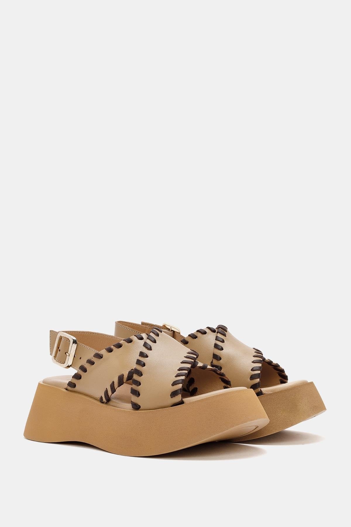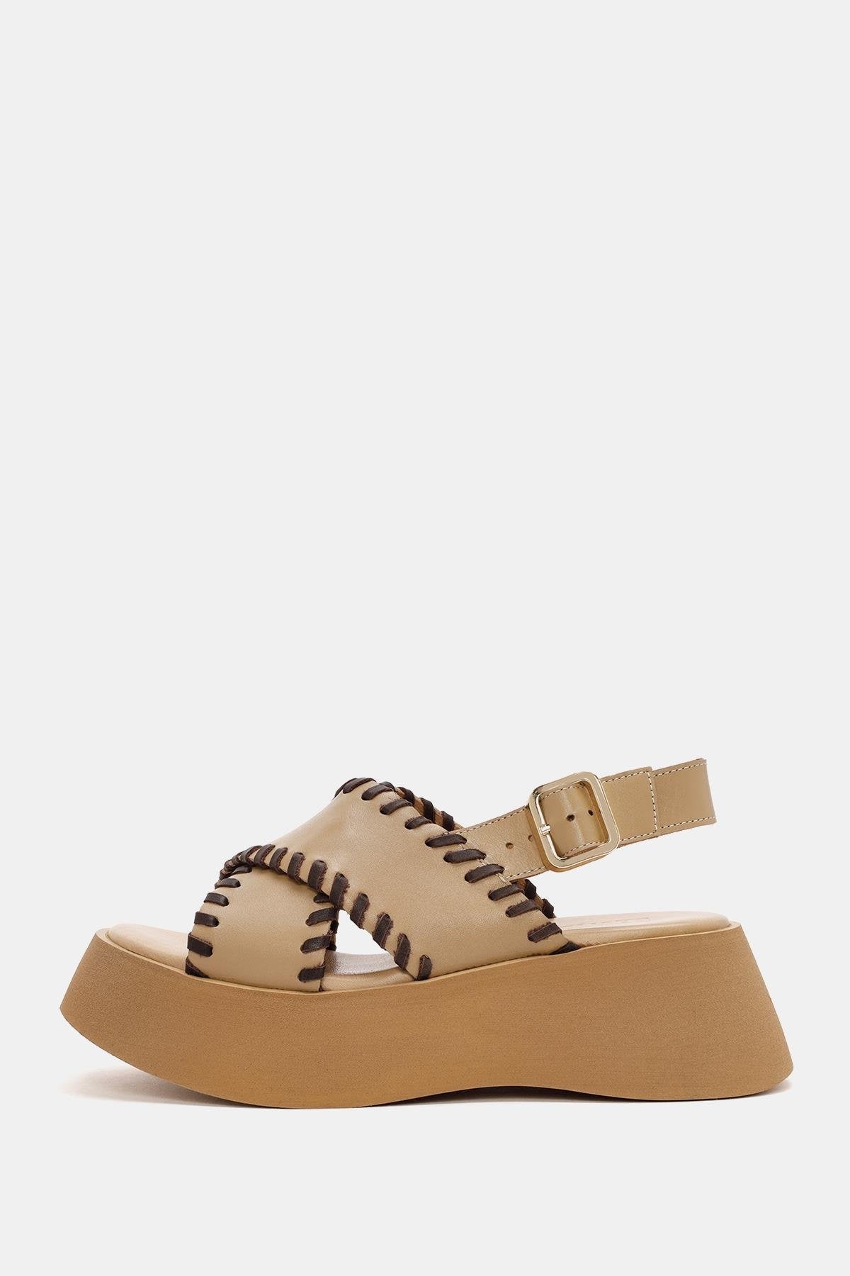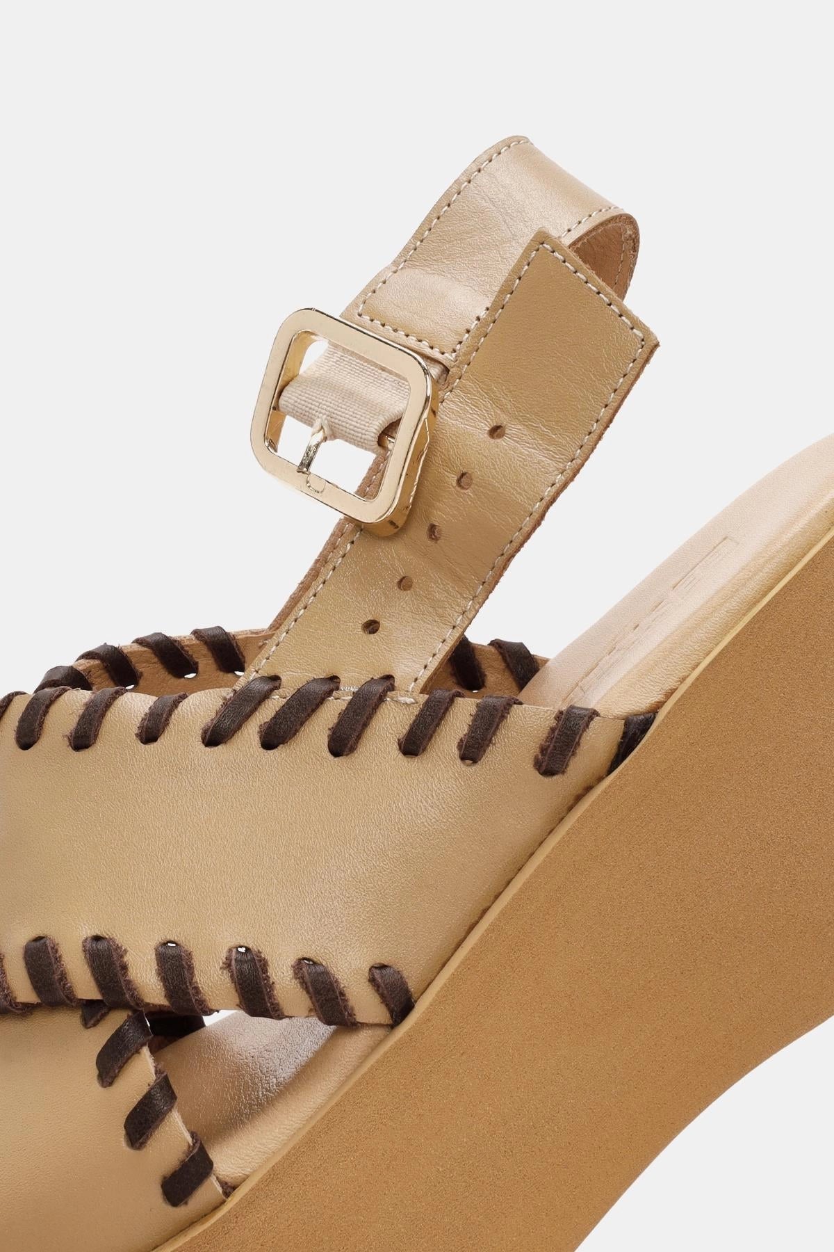 Maria Kadın Krem Kemerli Gerçek Deri Sandalet