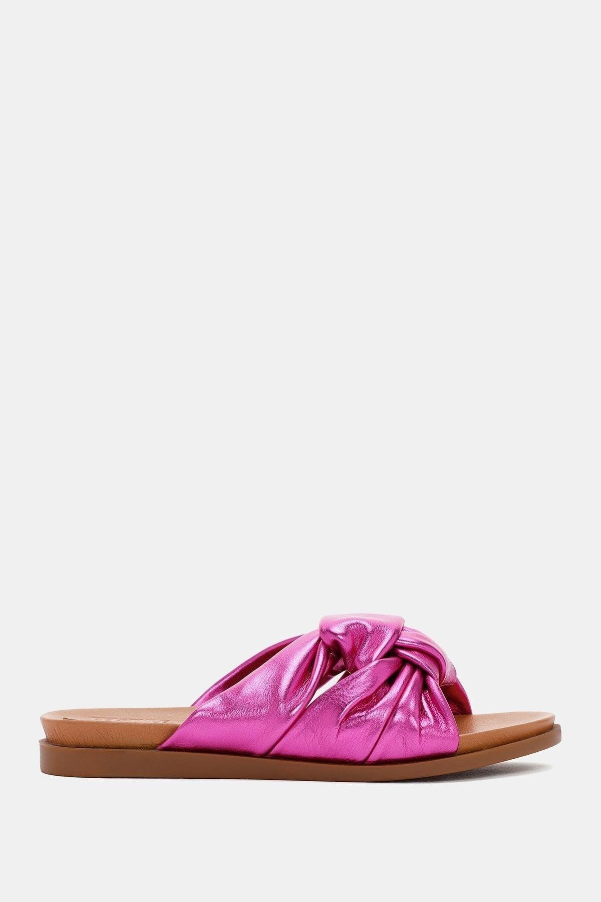 Mocha Kadın Fuşya Gerçek Hakiki Deri Terlik