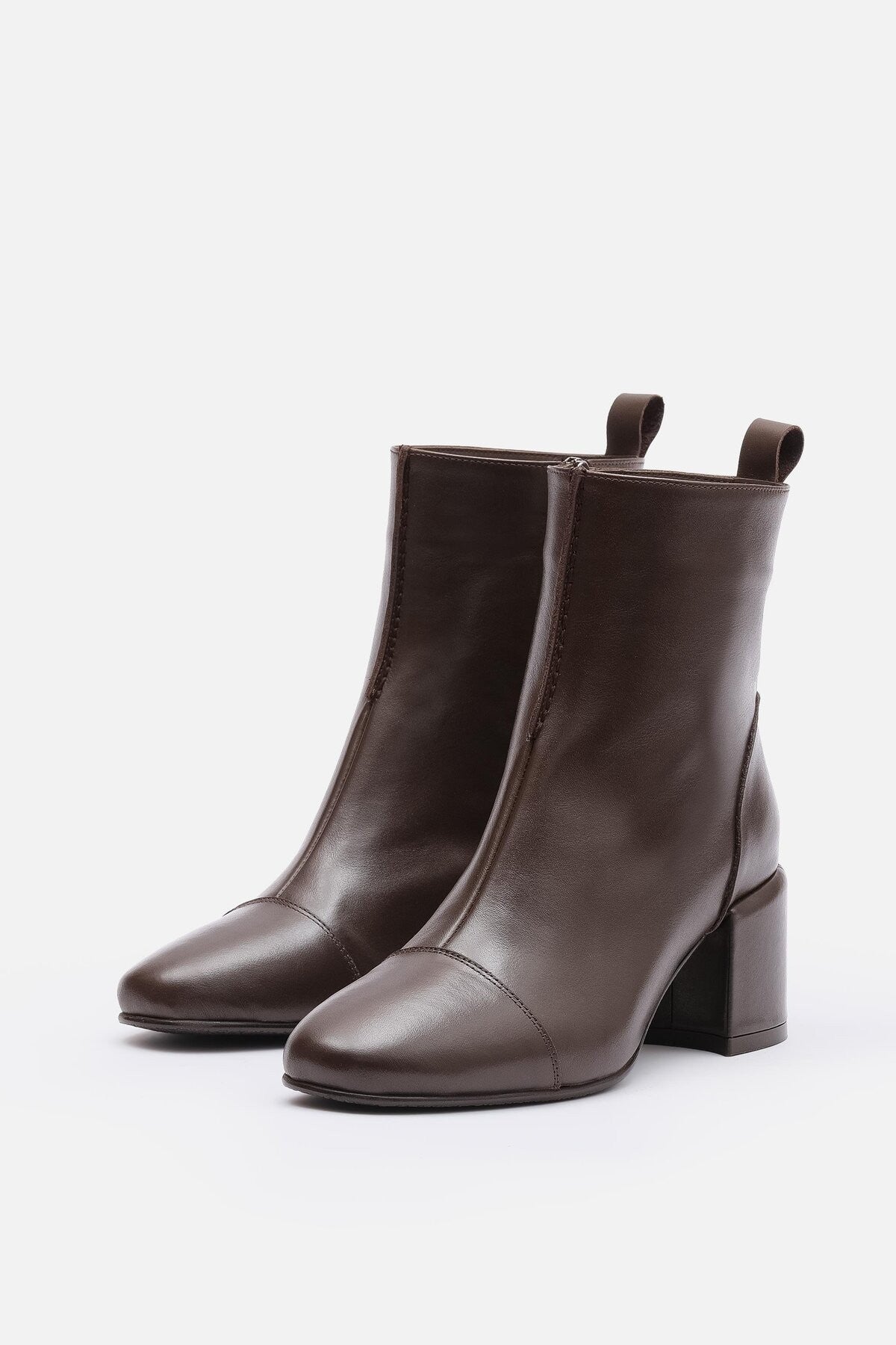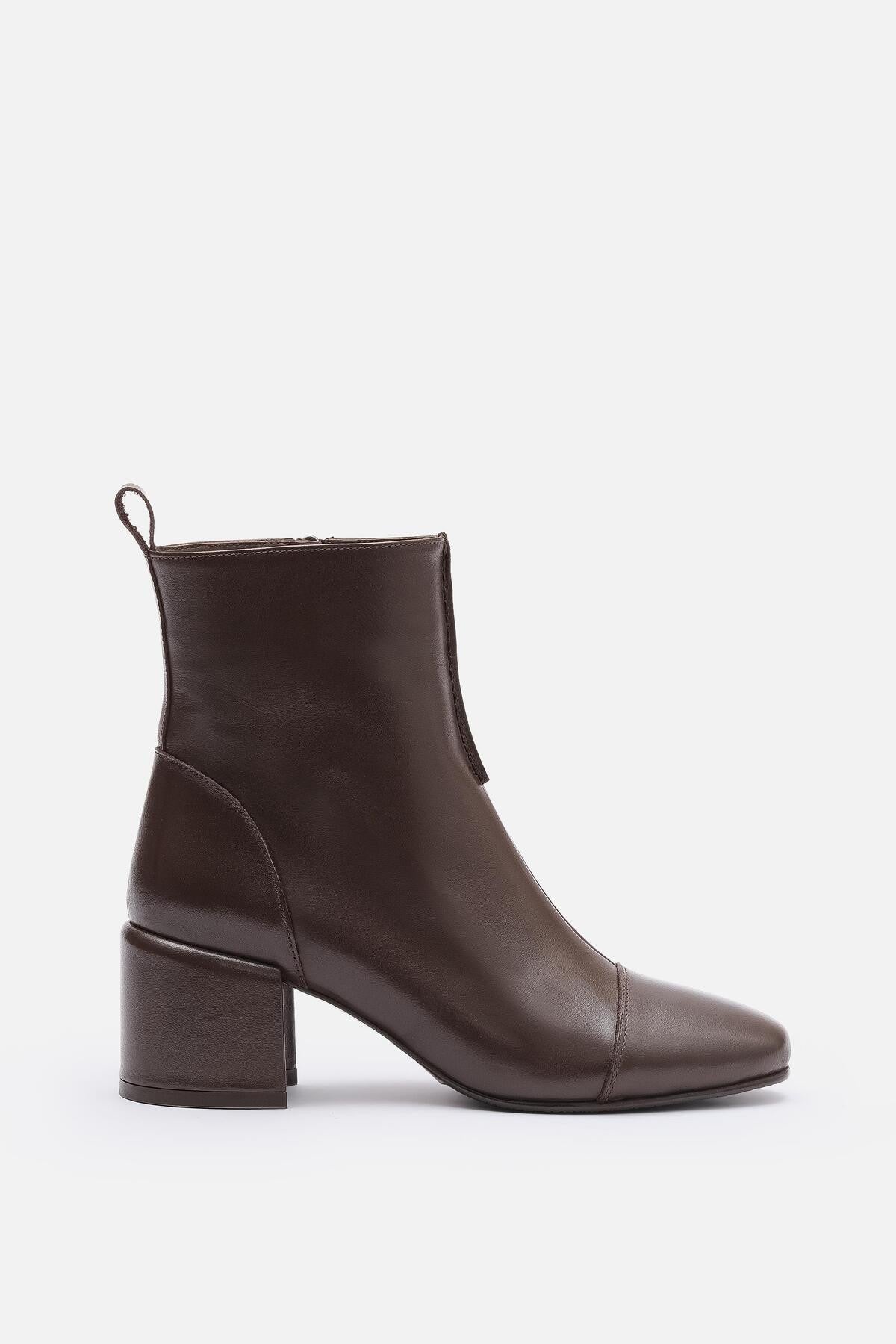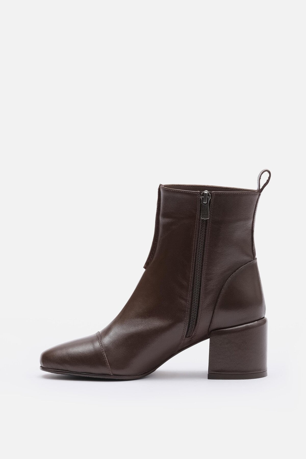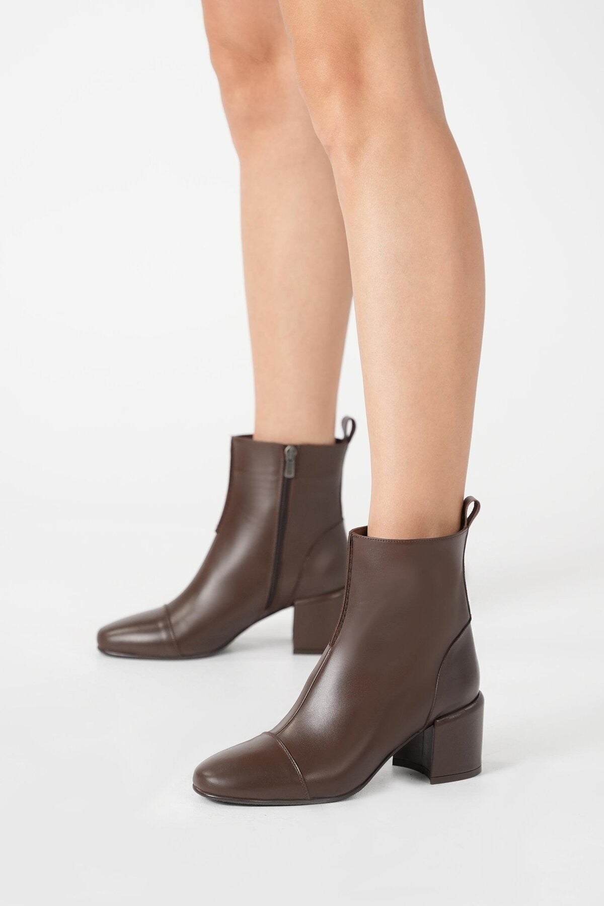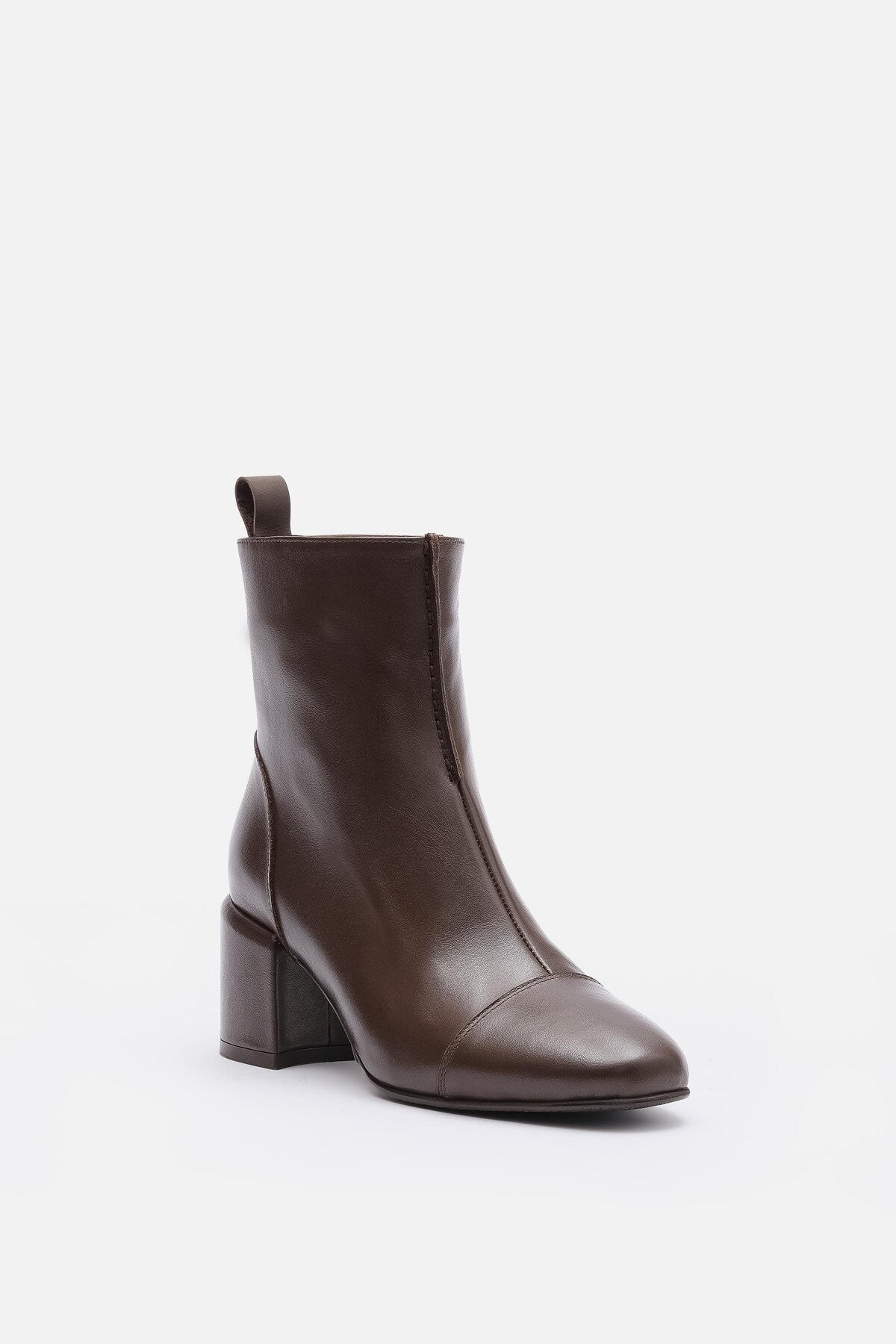NYX Kadın Kahve Gerçek Deri Fermuarlı Topuklu Bot