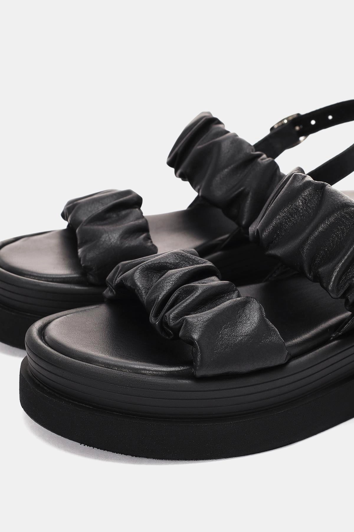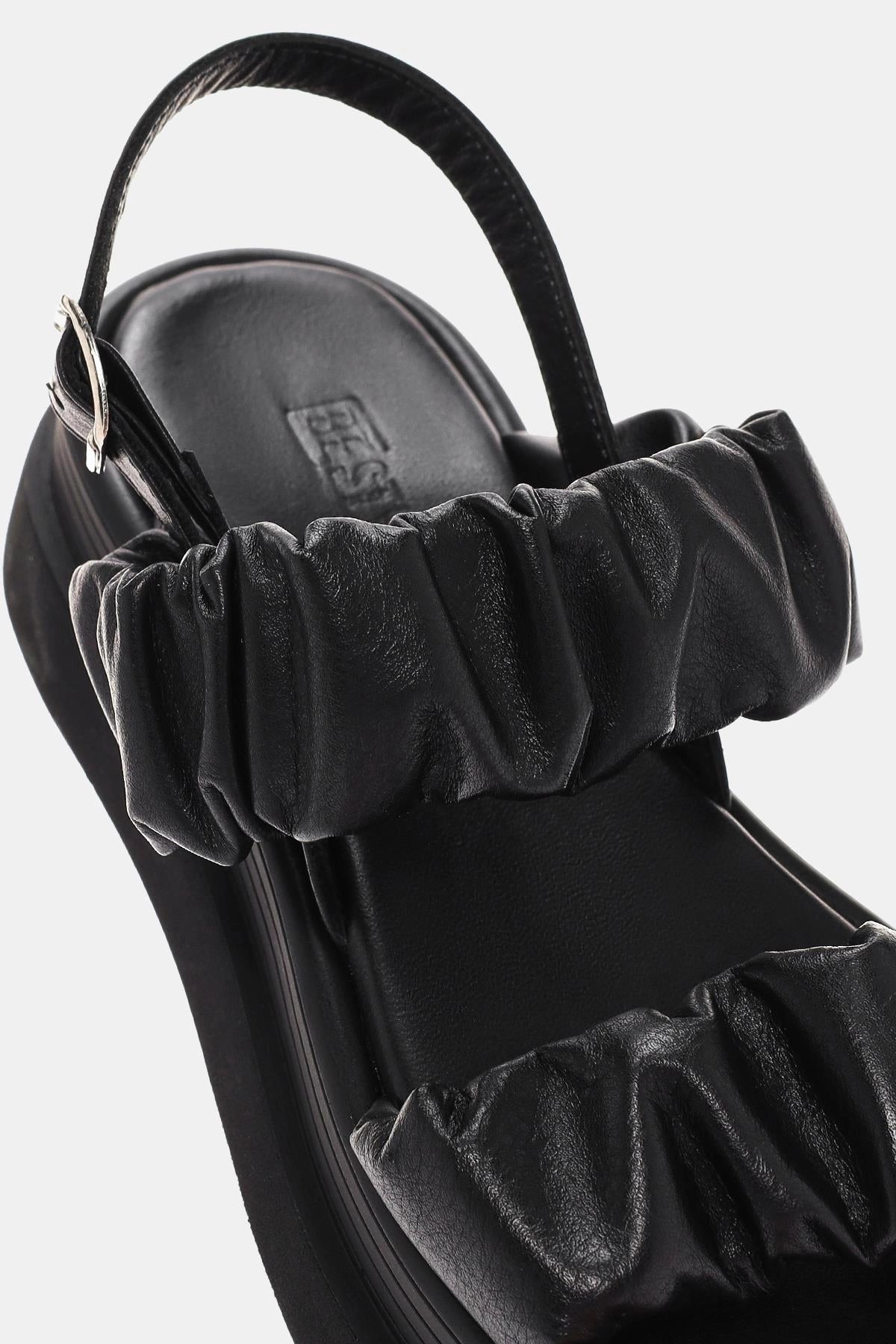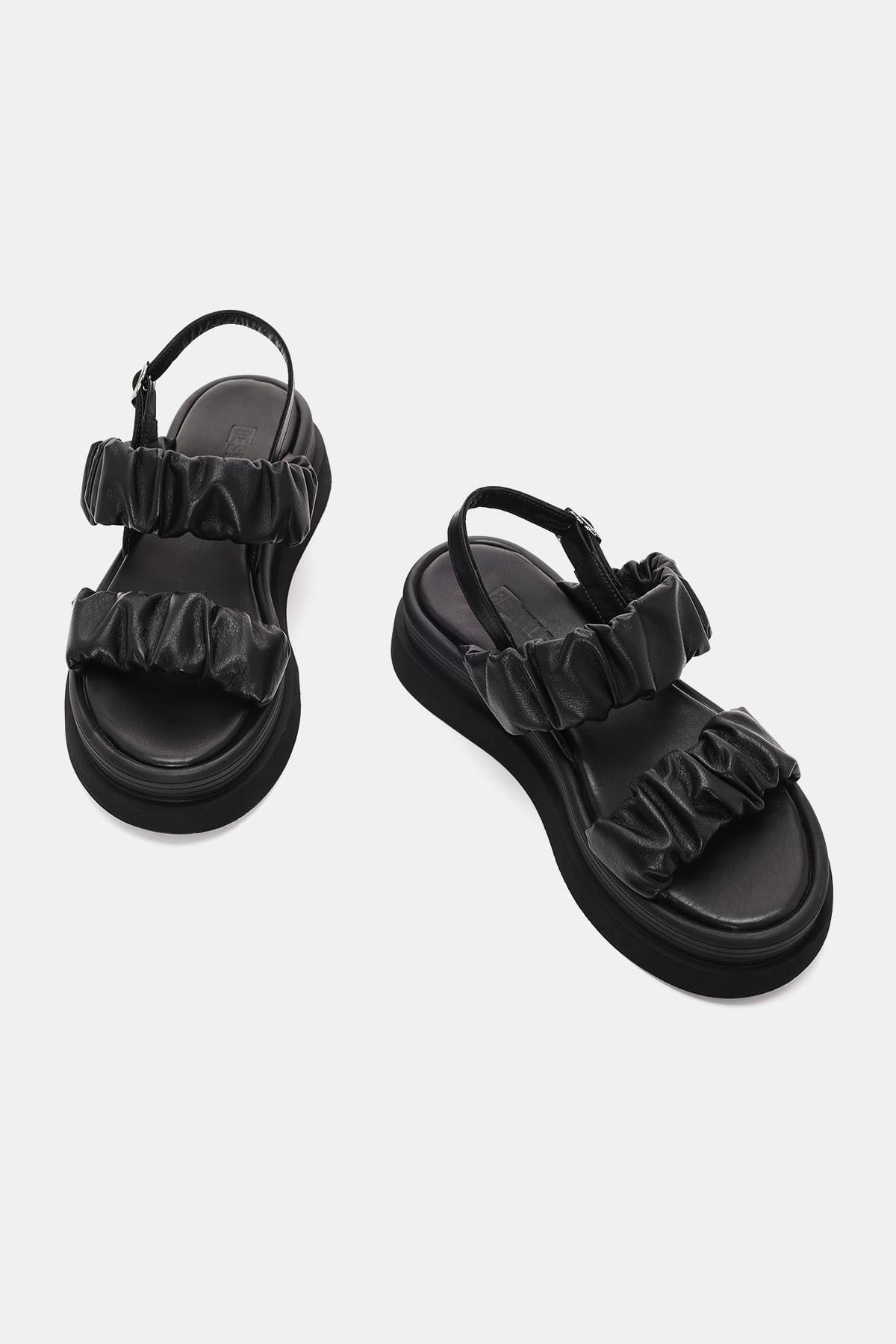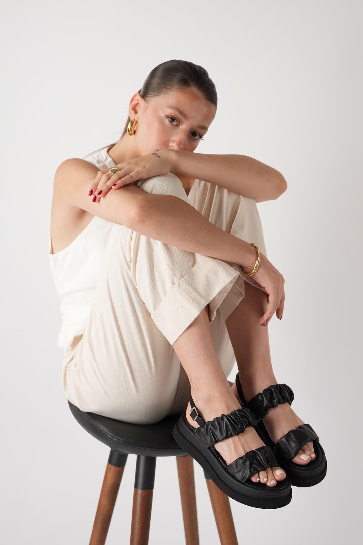 Oliva Kadın Siyah Gerçek Deri Sandalet