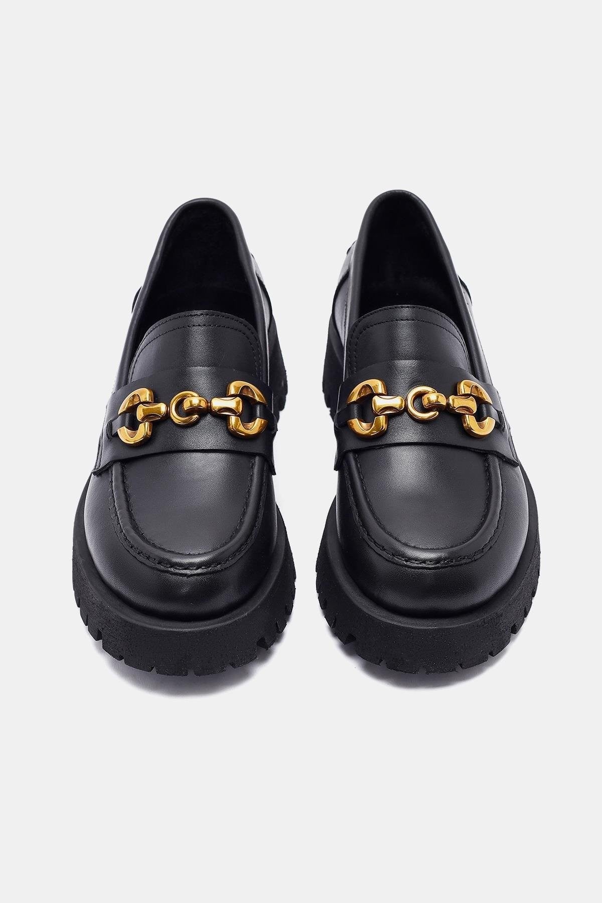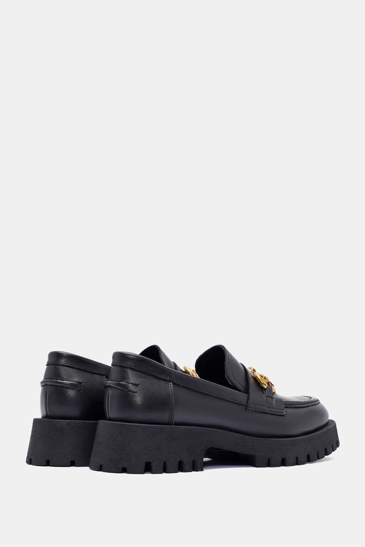 Pamela Kadın Siyah Gerçek Deri Toka Detaylı Loafer