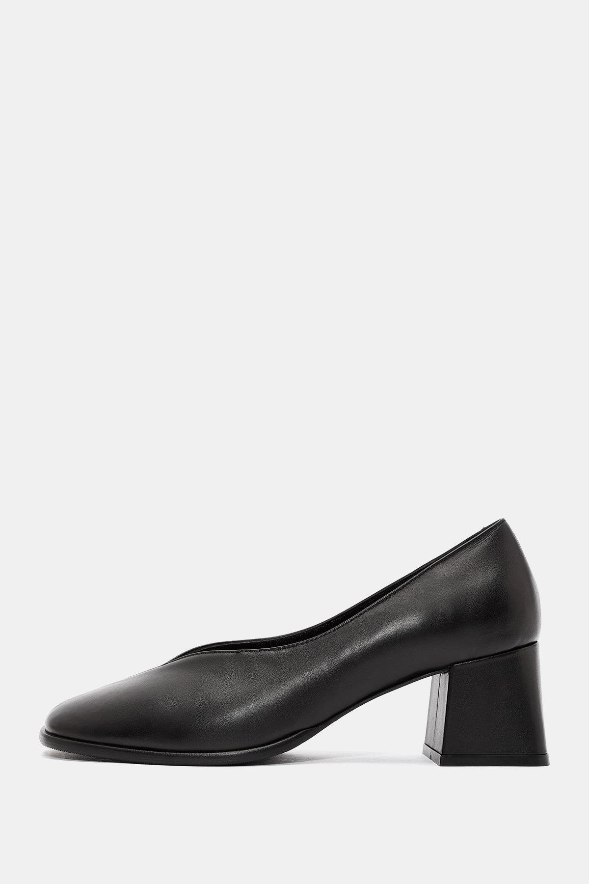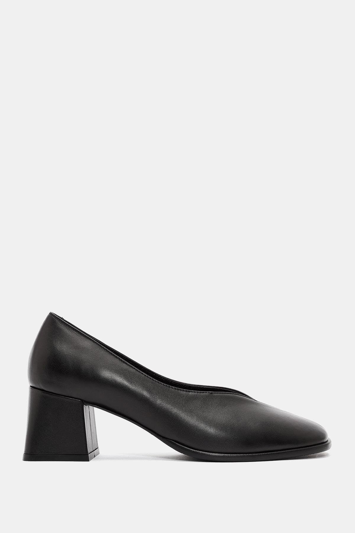 Pitka Kadın Siyah Gerçek Deri Kalın Topuklu Ayakkabı
