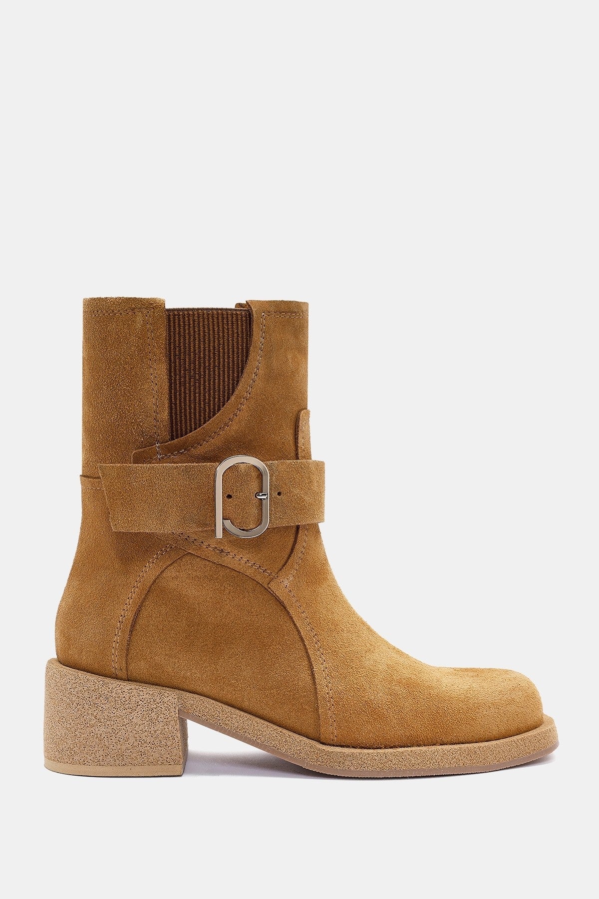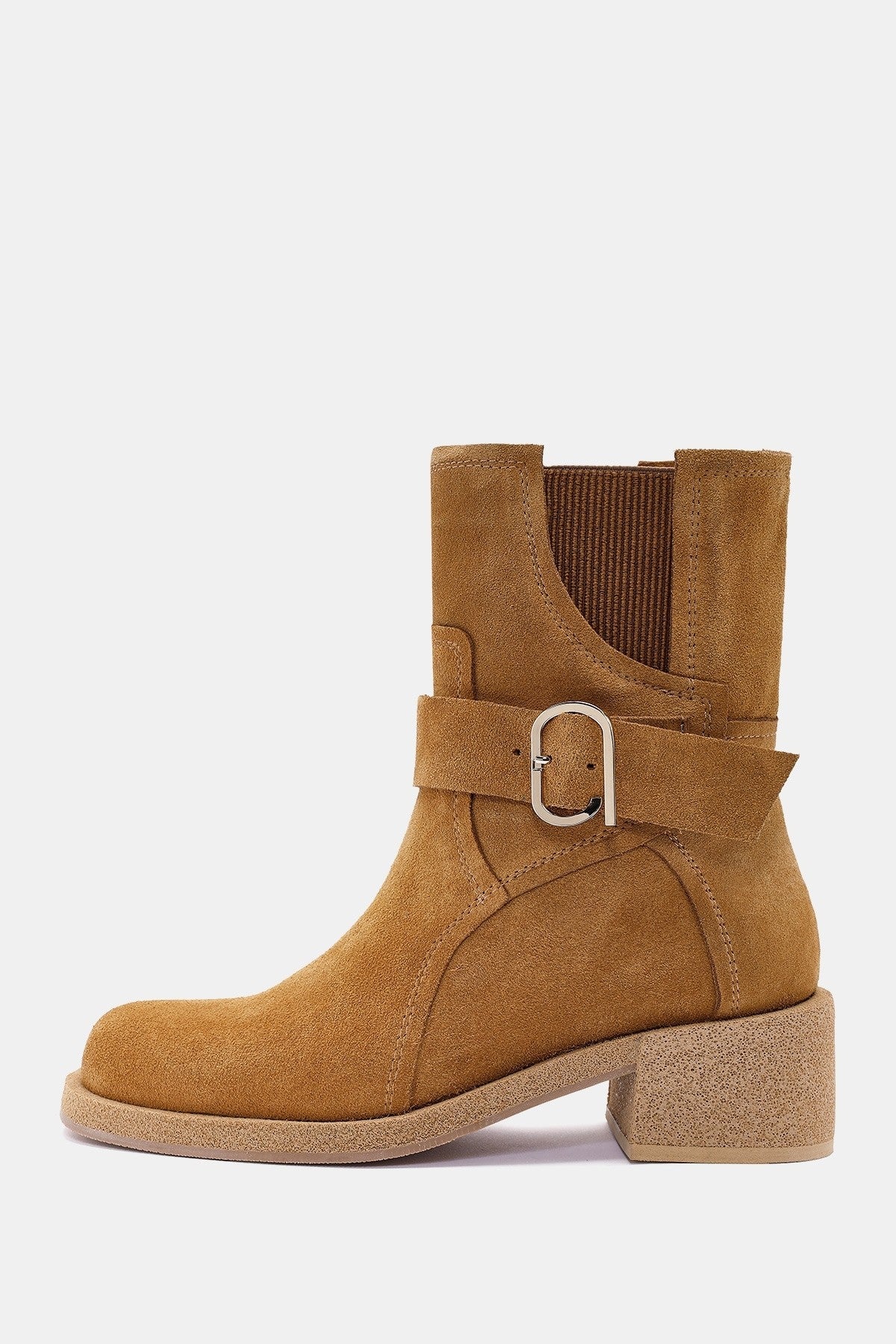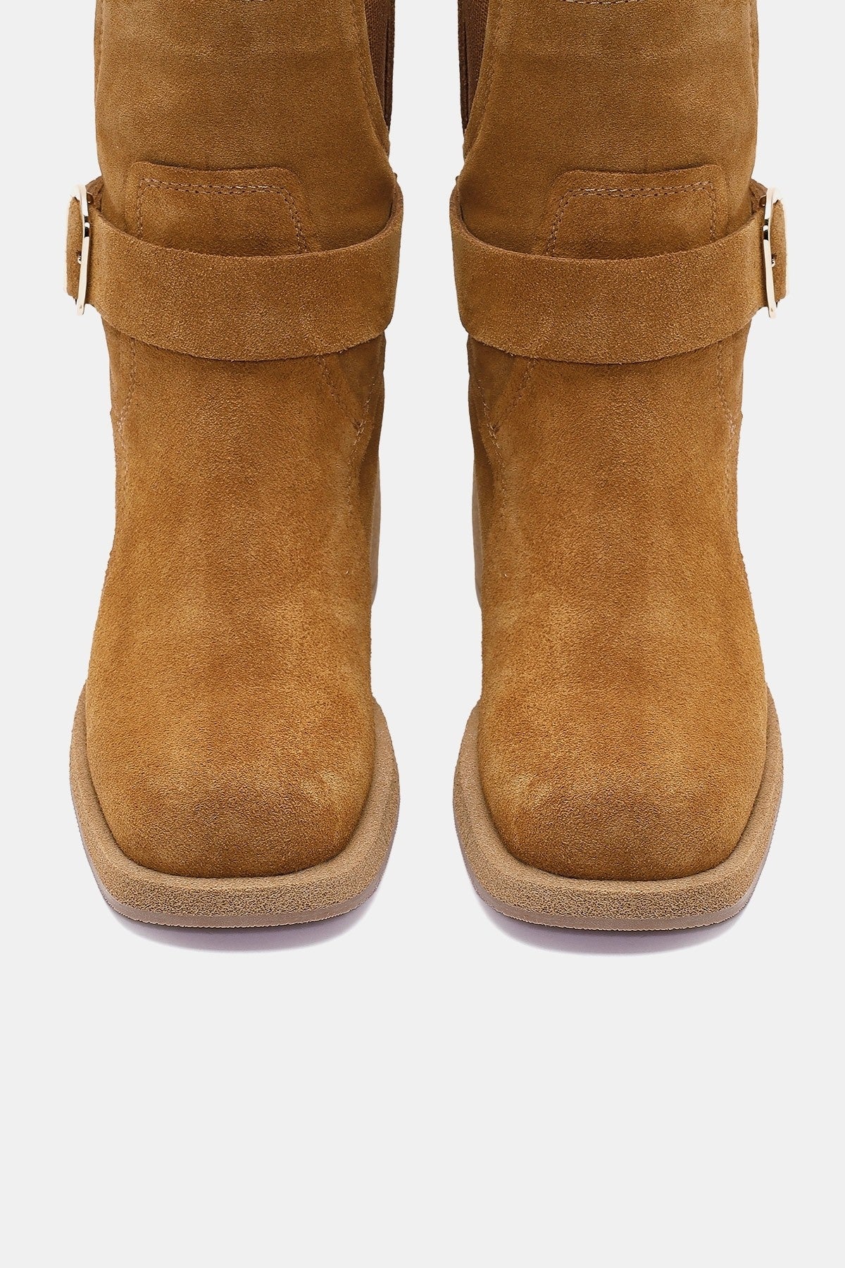 Rafles Kadın Camel Gerçek Süet Deri Toka Detaylı Kalın Topuklu Bot