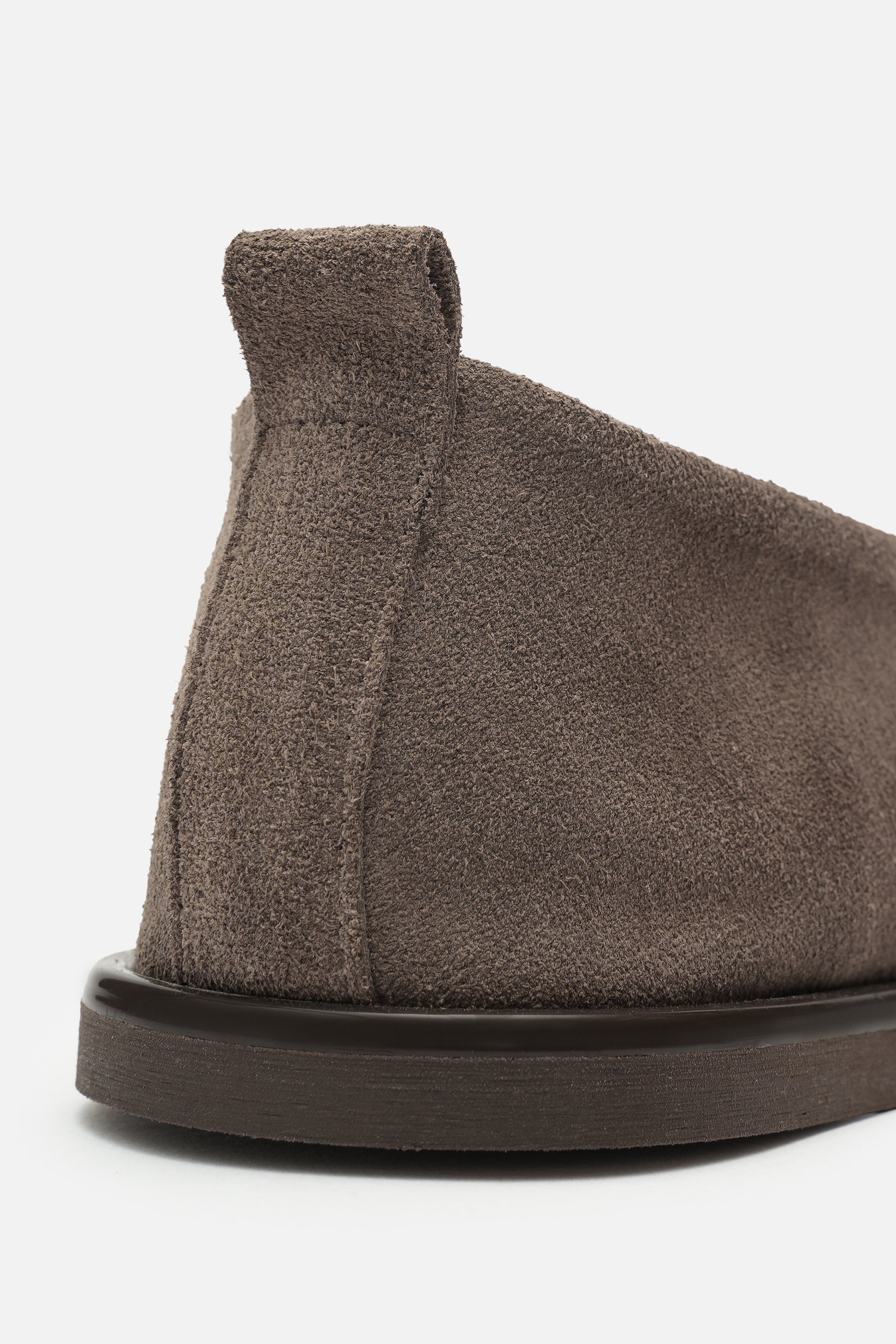 Dış yüzeyde kullanılan hakiki süet deri, doğal dokusu sayesinde hem estetik hem dayanıklıdır. İç astardaki hakiki deri yapı, ayağın nefes almasını destekler ve uzun süreli kullanımlarda terlemeyi minimize eder.