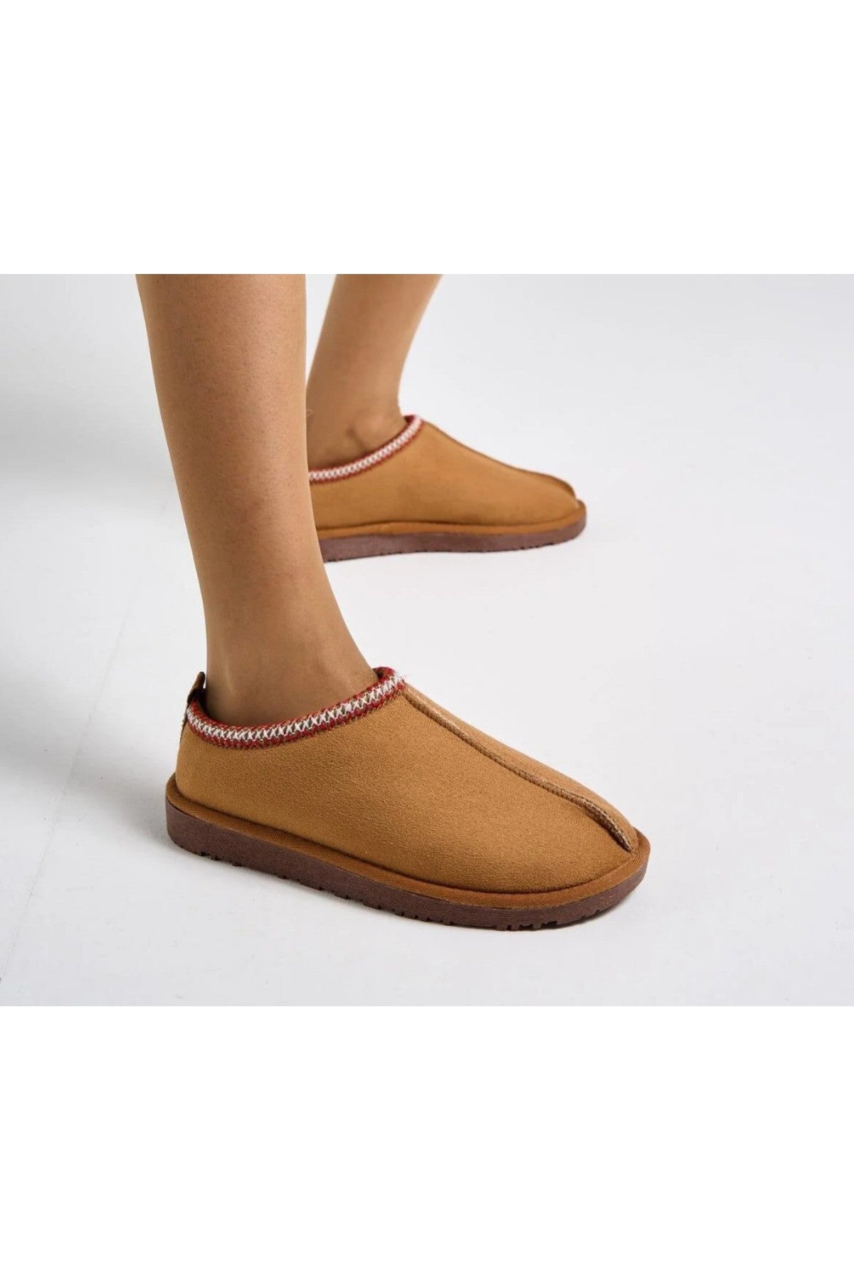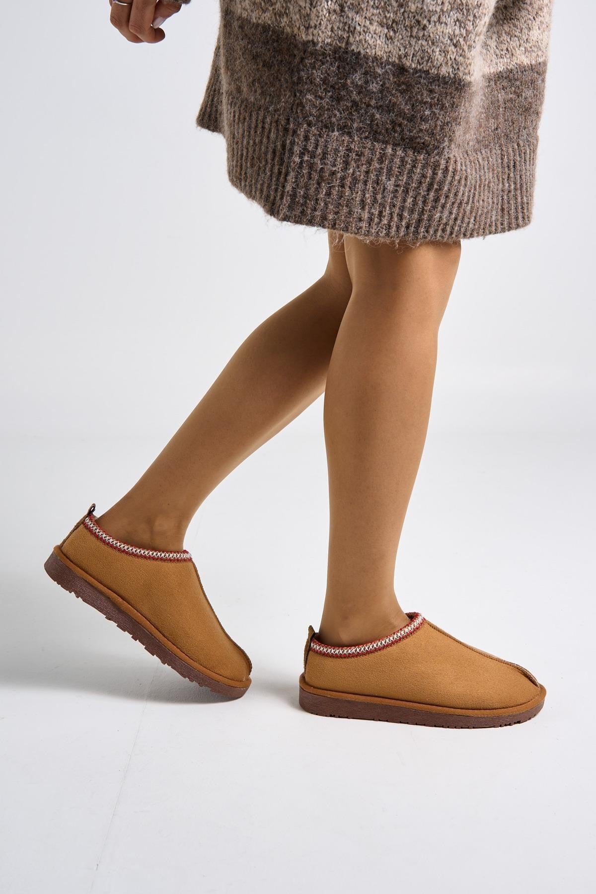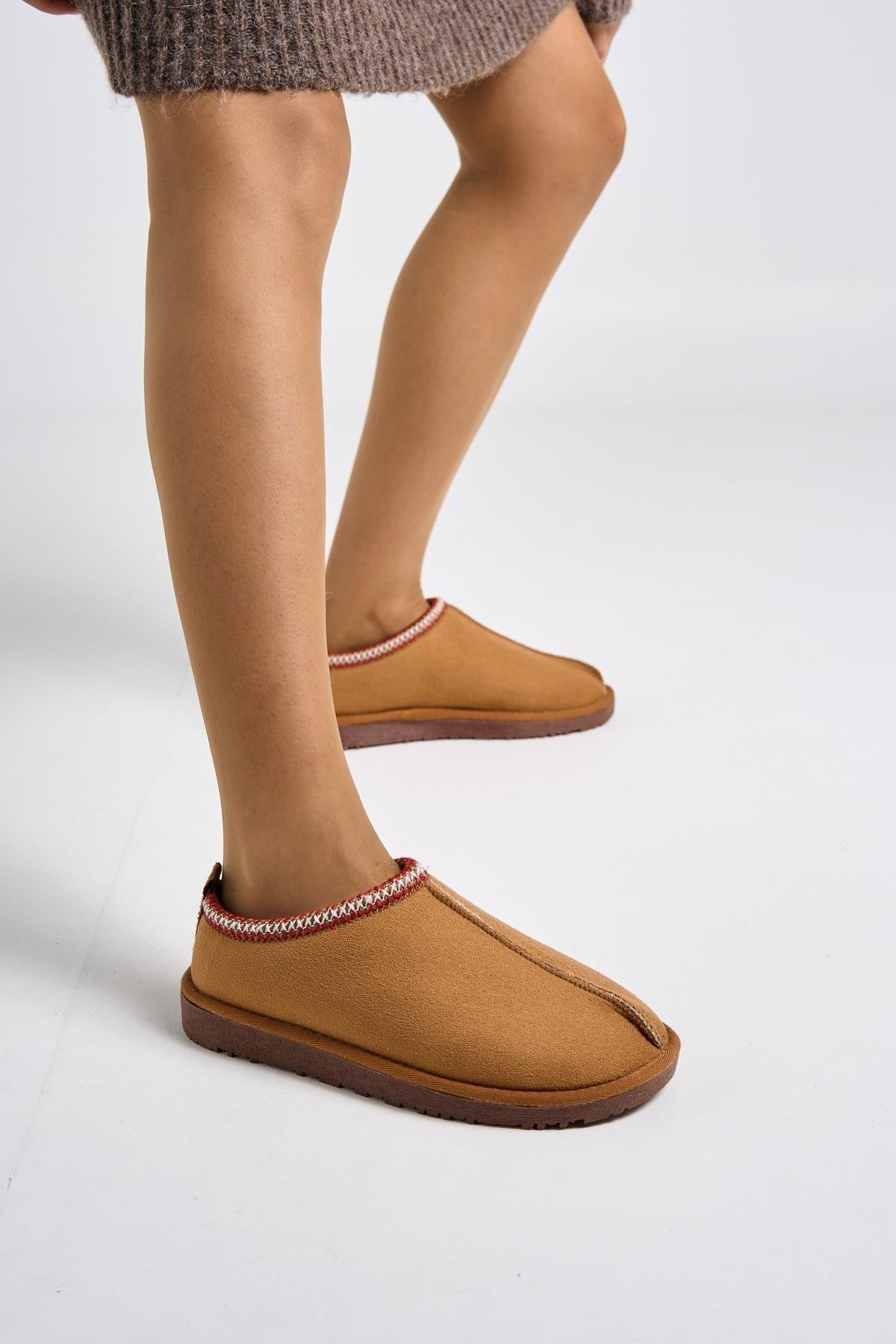 Stella Kadın Taba Süet Dikiş Detaylı Ev Terliği