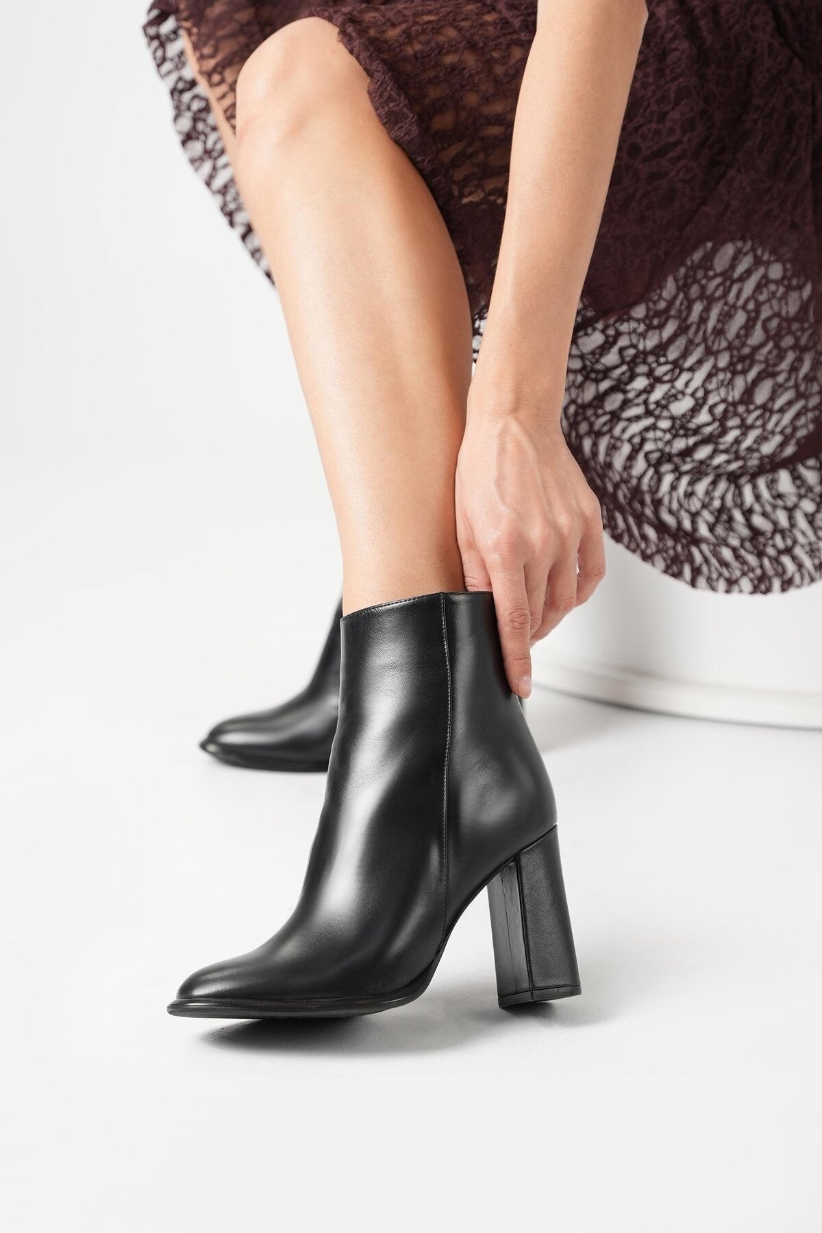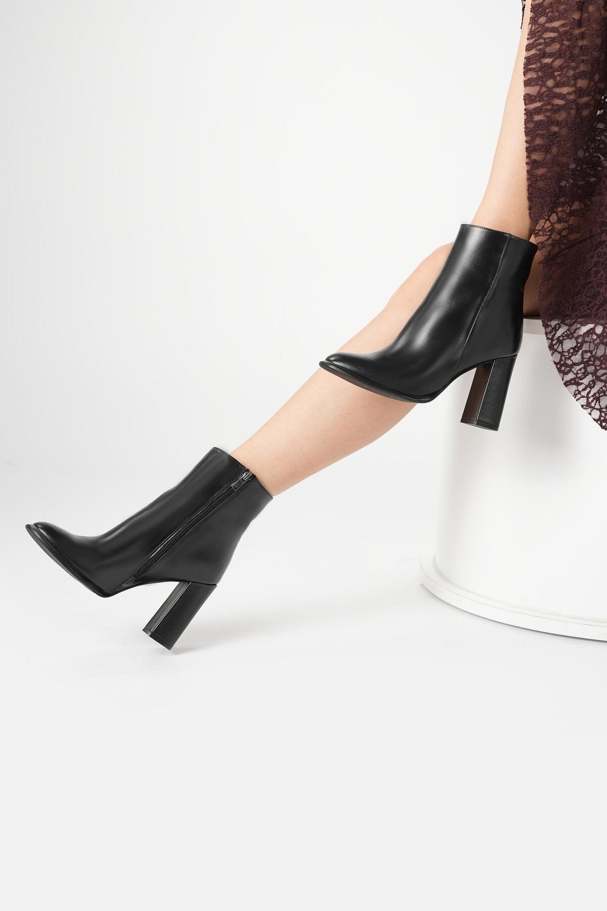 Teknik: Parlak deri görünümlü, yandan fermuarlı bot. Günlük ve şık kombinlere uygundur.