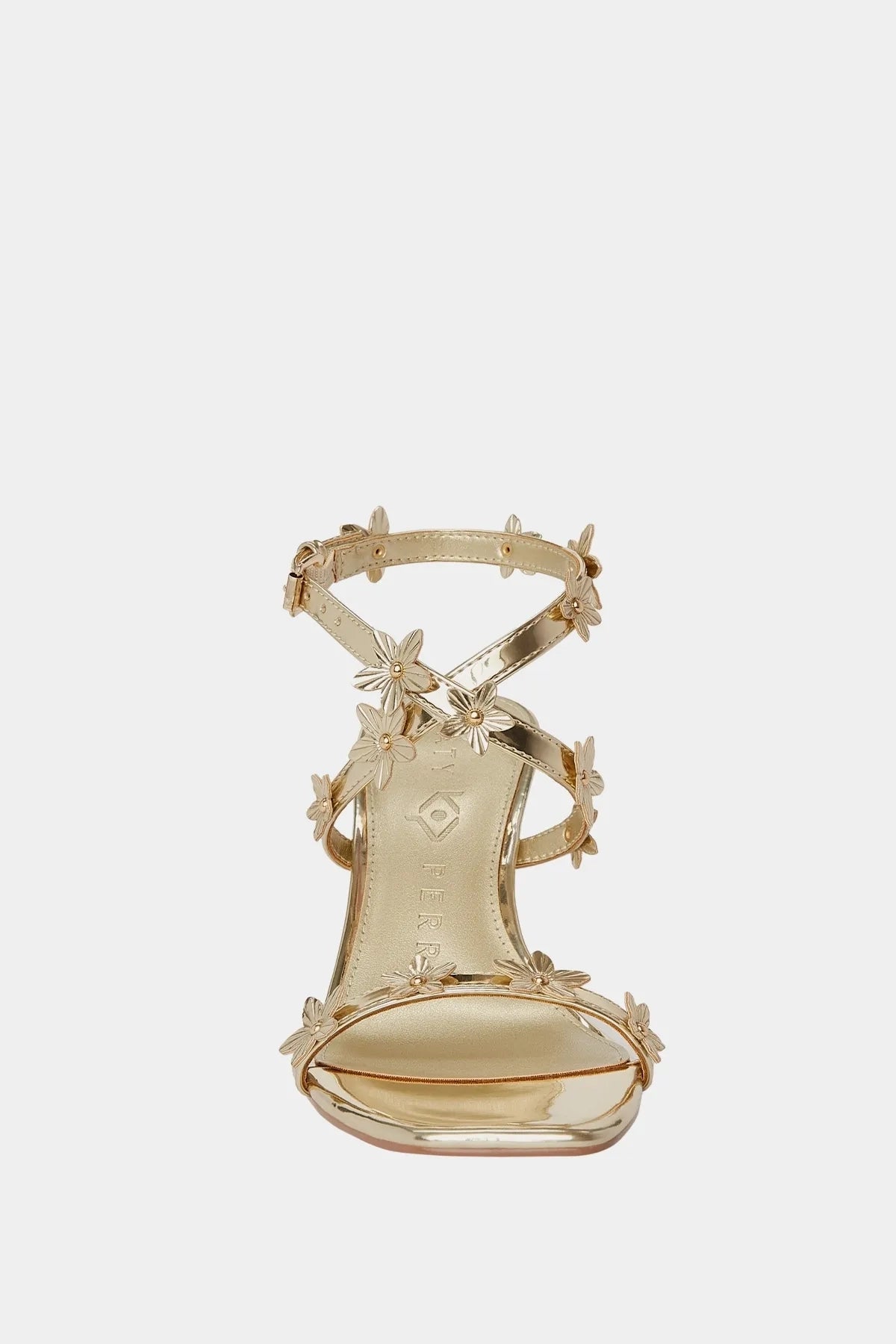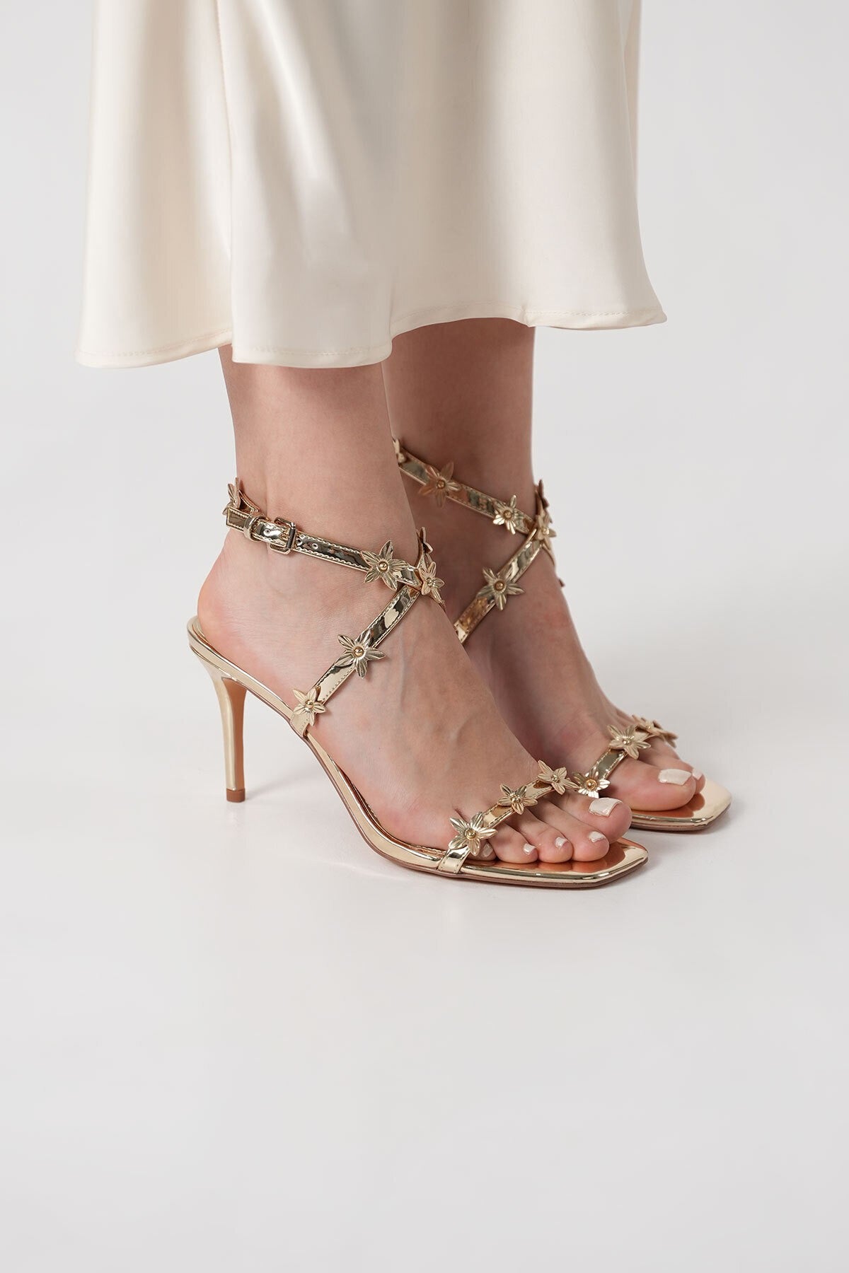 The Analia Kadın Metalik Şampanya Çiçekli Sandalet