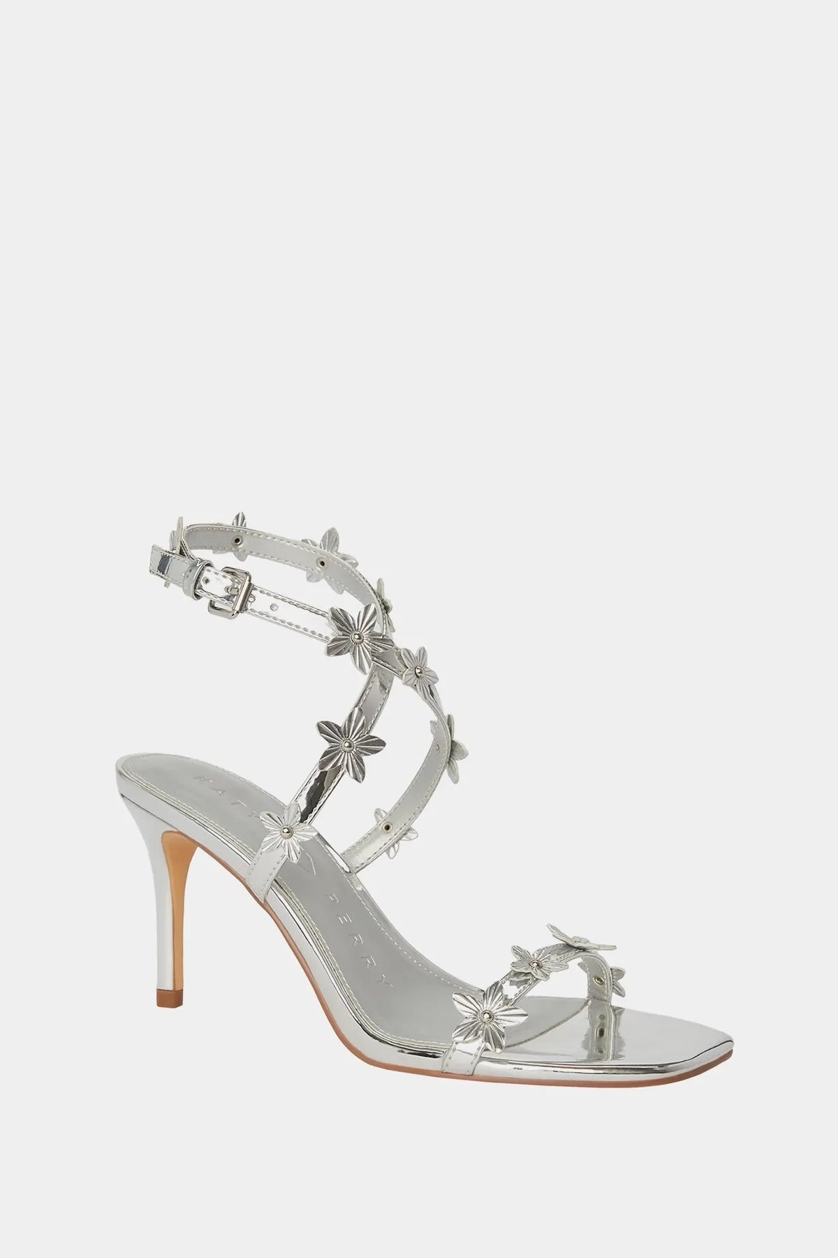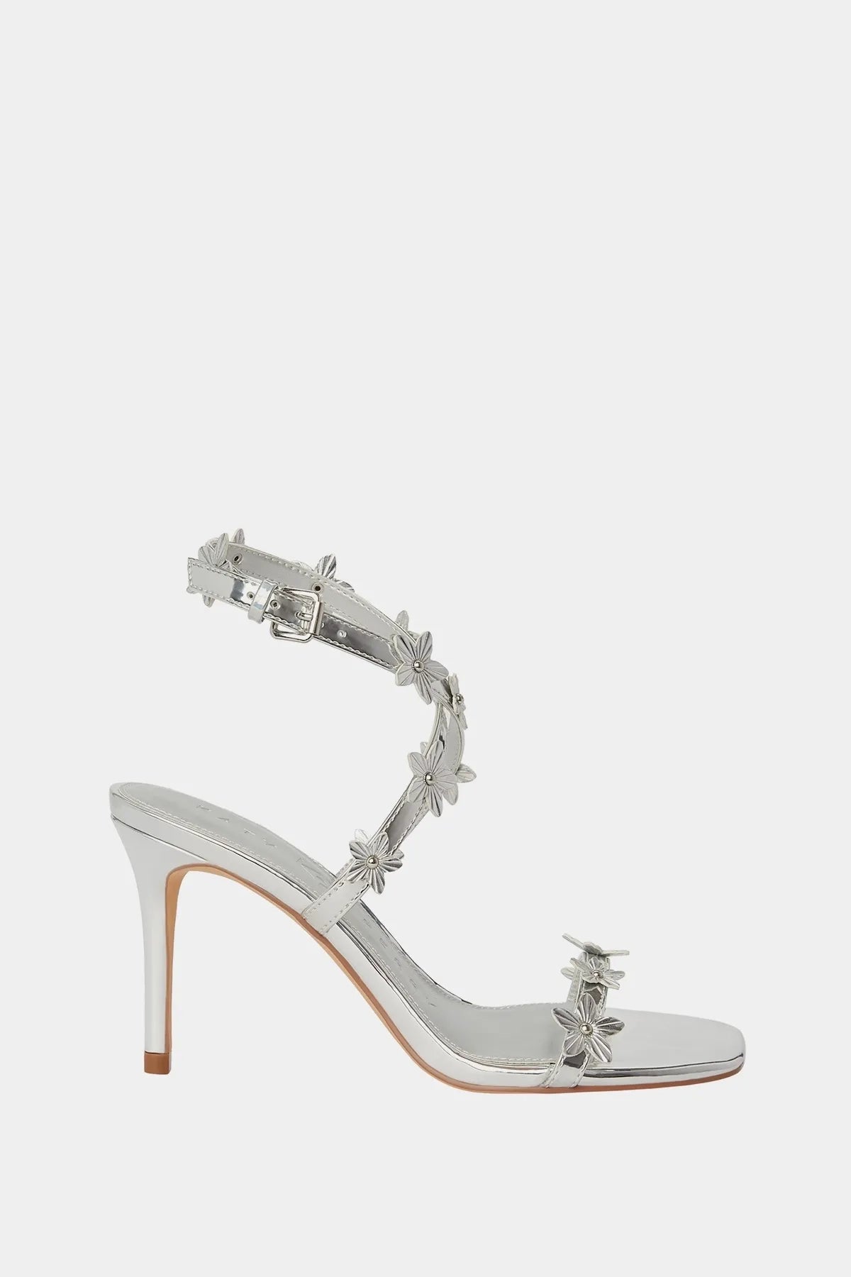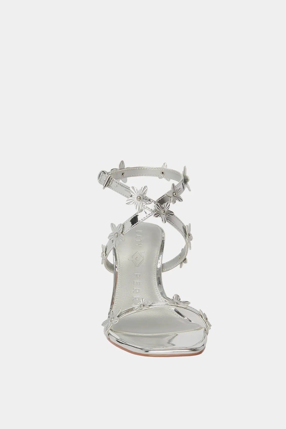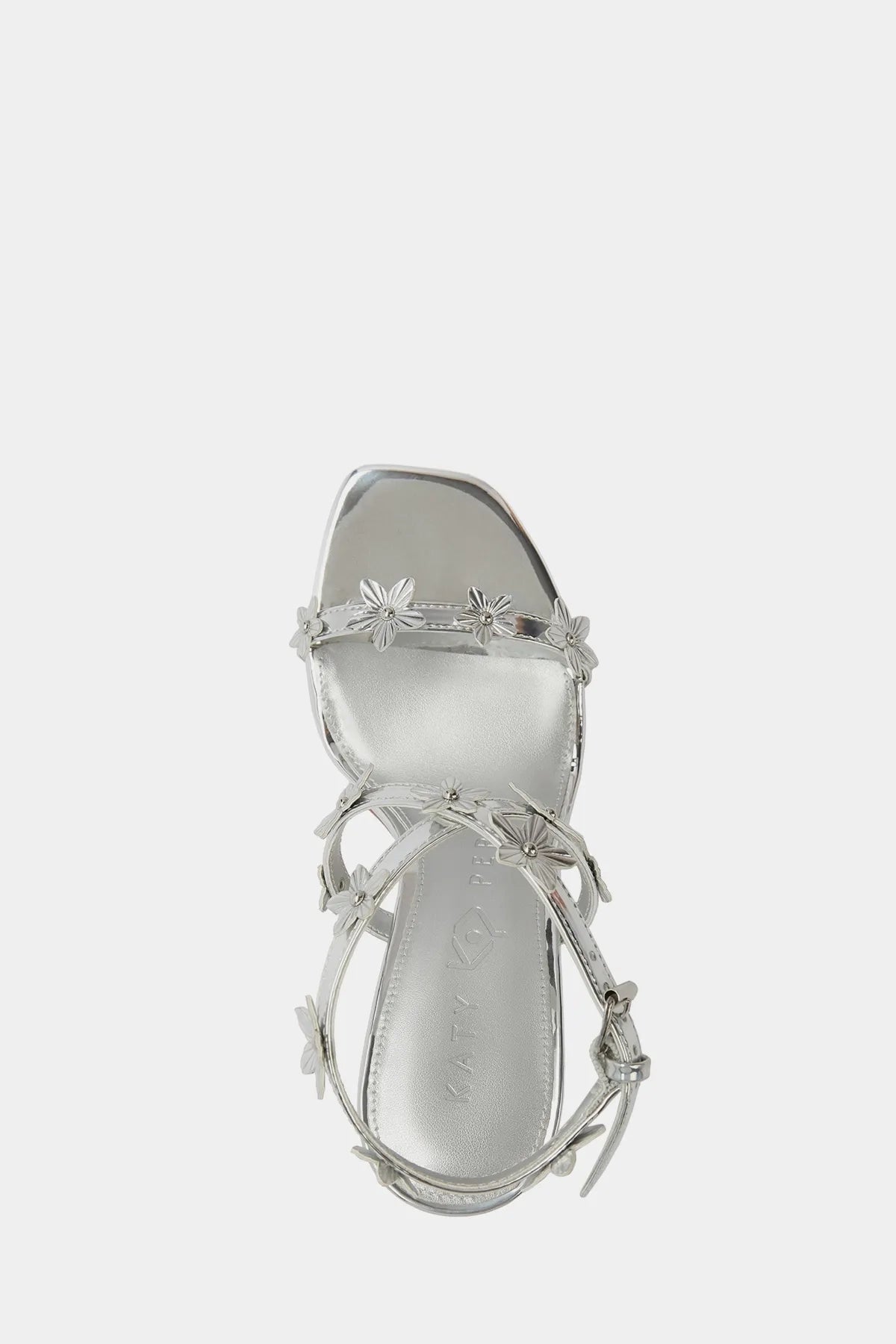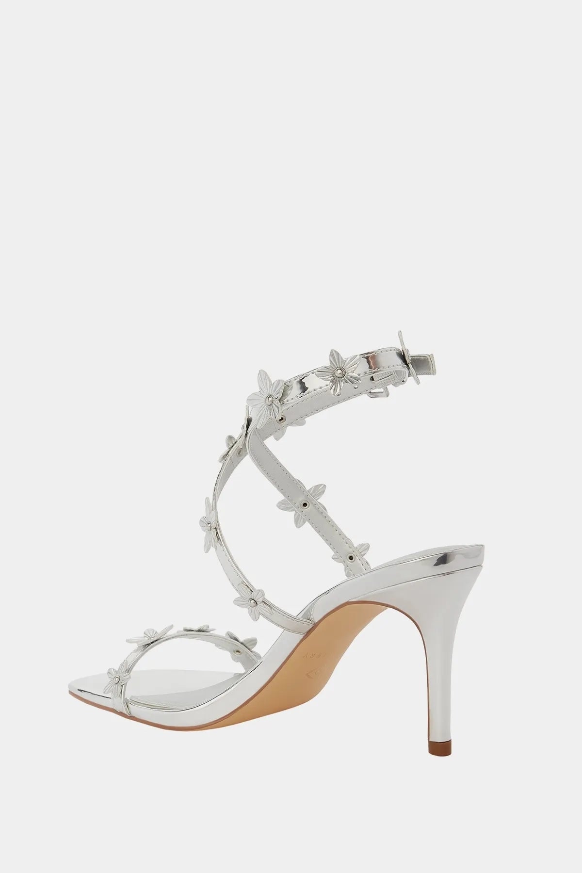 The Analia Kadın Metalik Gümüş Çiçekli Sandalet