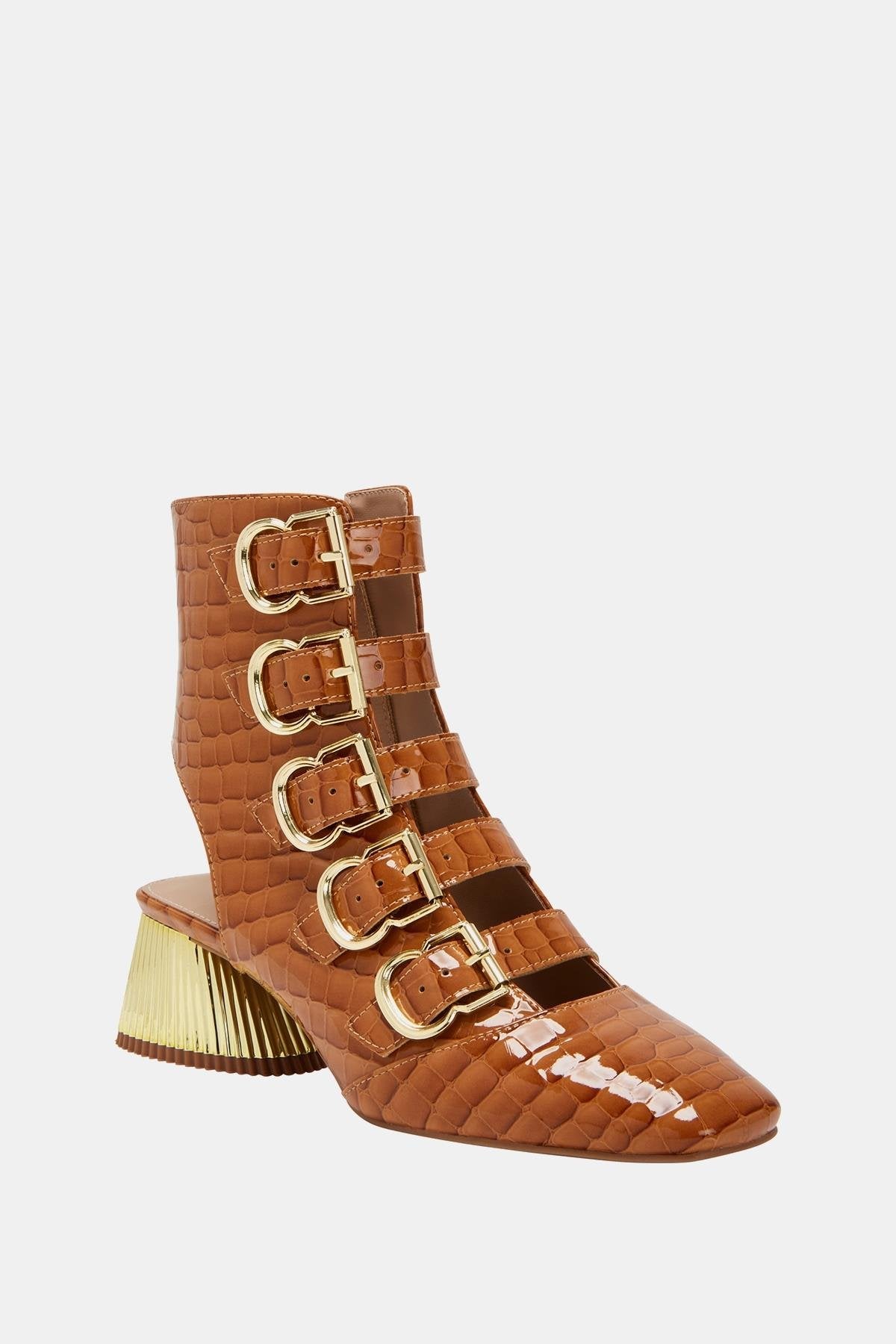 The Clarra Buckle Kadın Taba Croco Topuklu Tasarım Ayakkabı