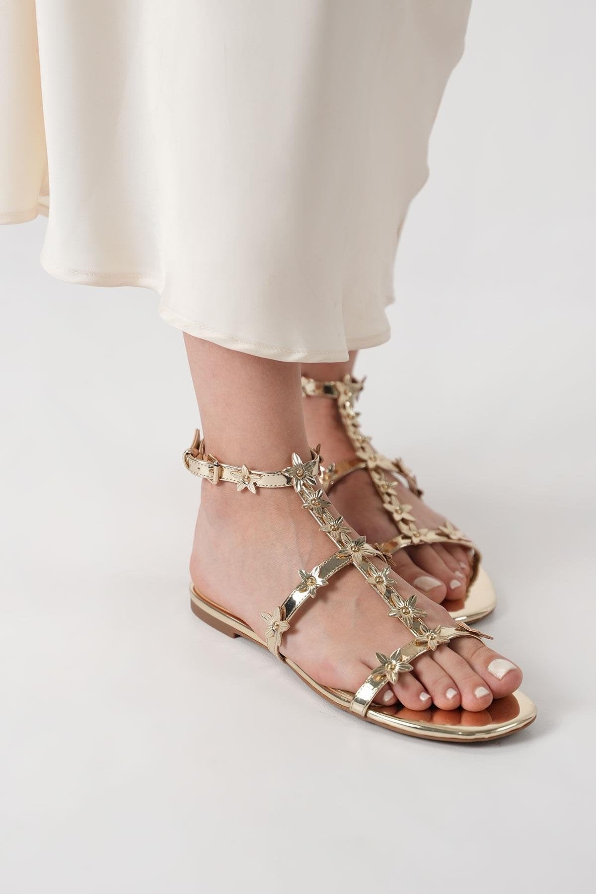 The Halie Gladiator Kadın Şampanya Çiçekli Sandalet
