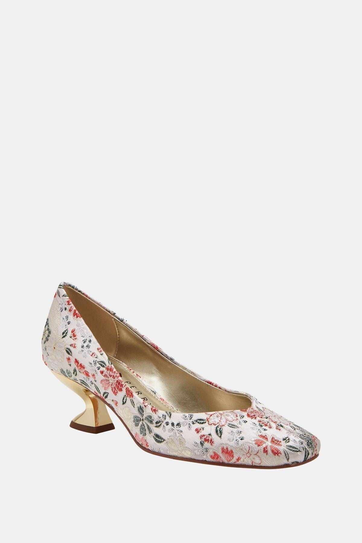 The Laterr Pump Kadın Krem Çiçek Desenli Topuklu Ayakkabı