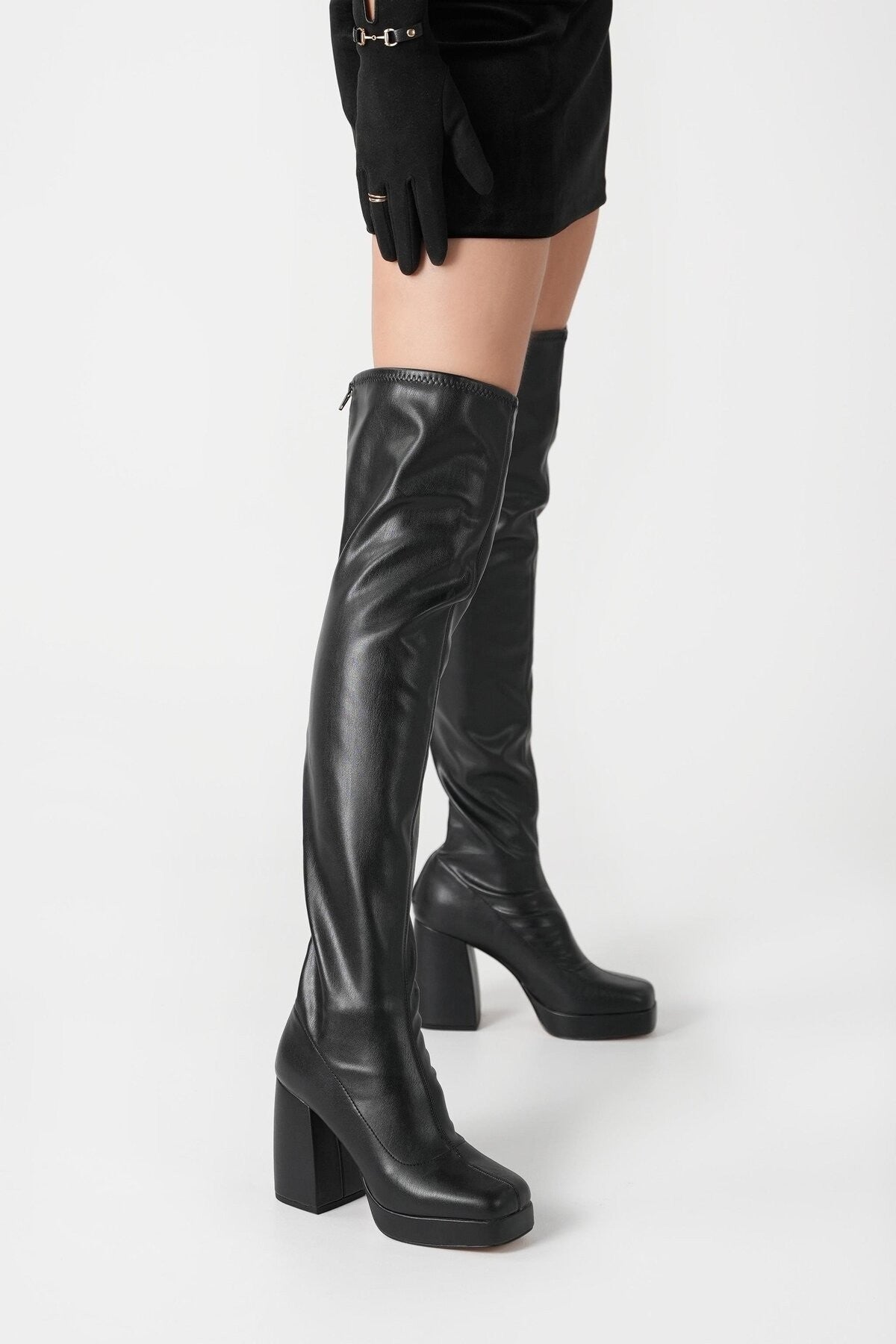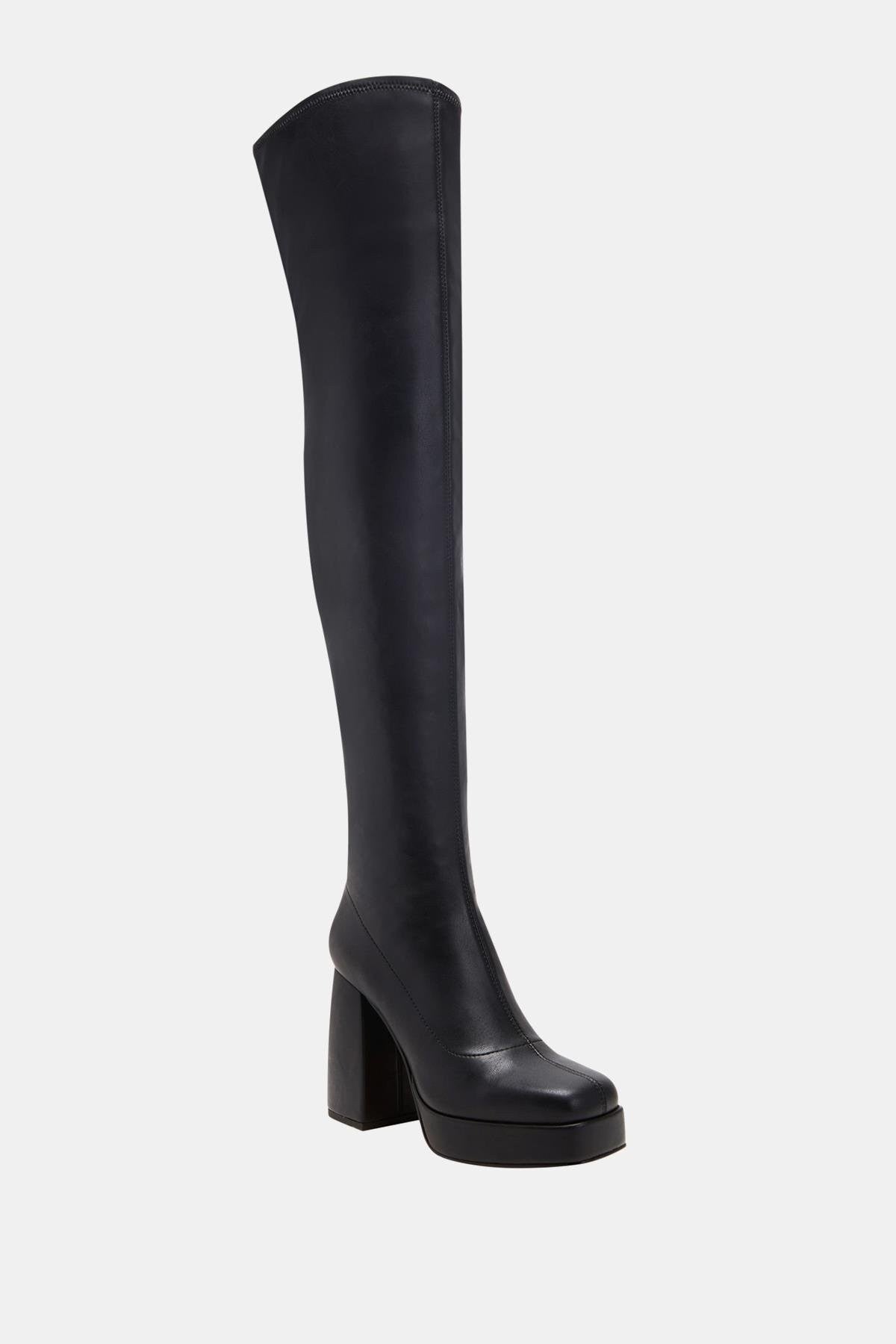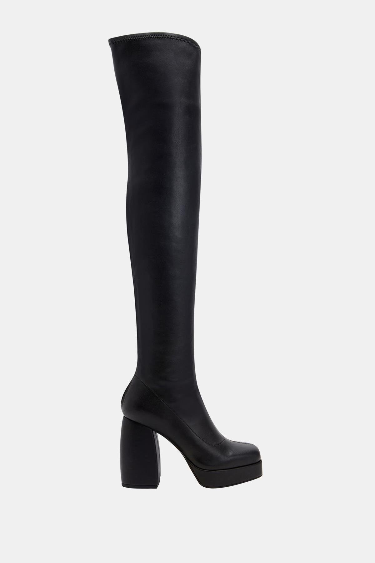 The Uplift Kadın Siyah Platform Topuklu Diz Üstü Streç Çizme