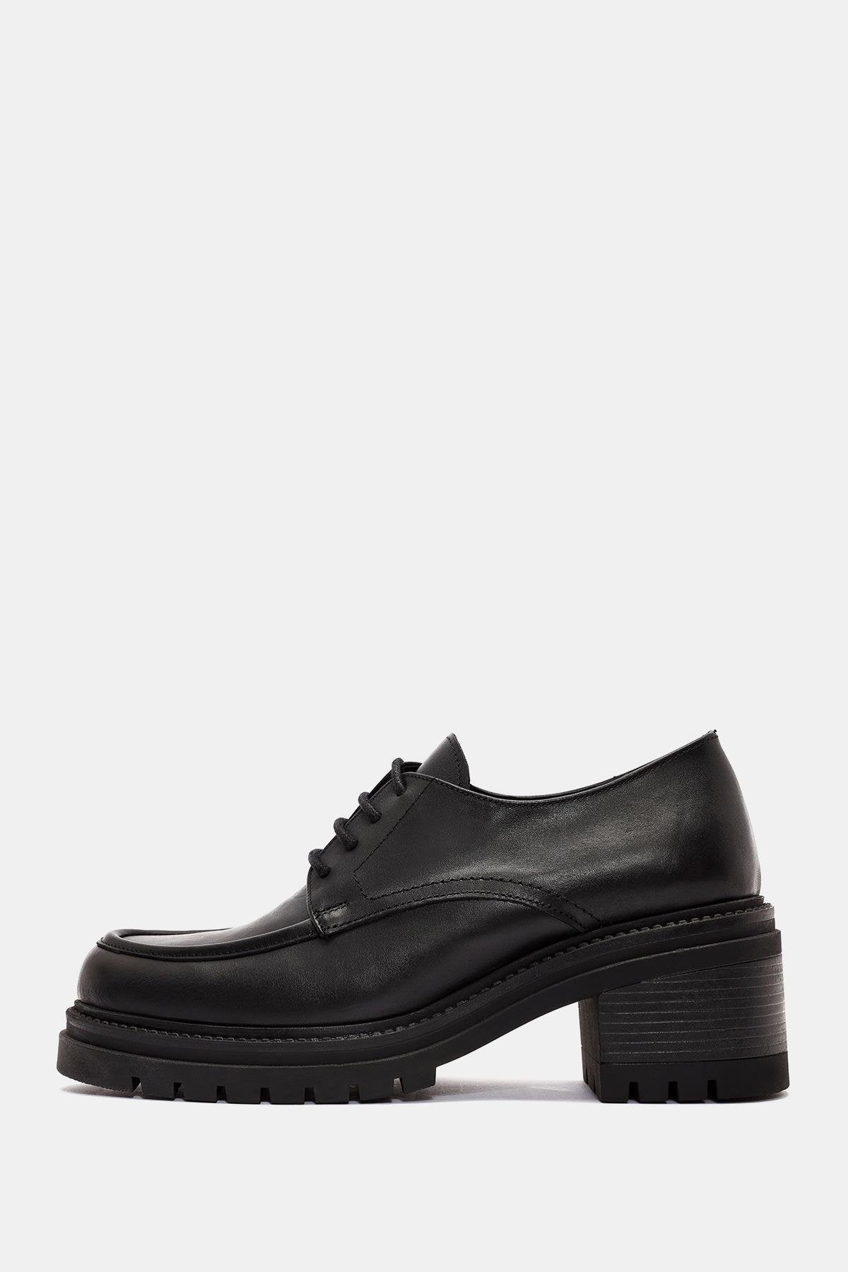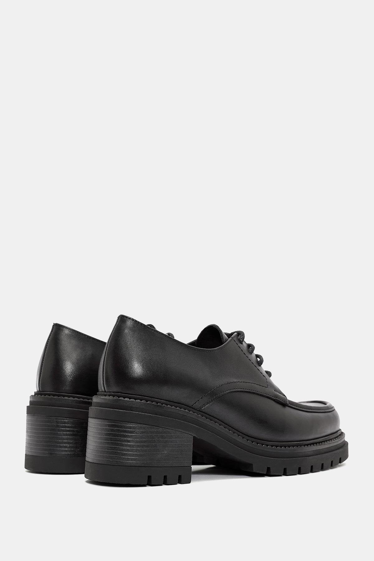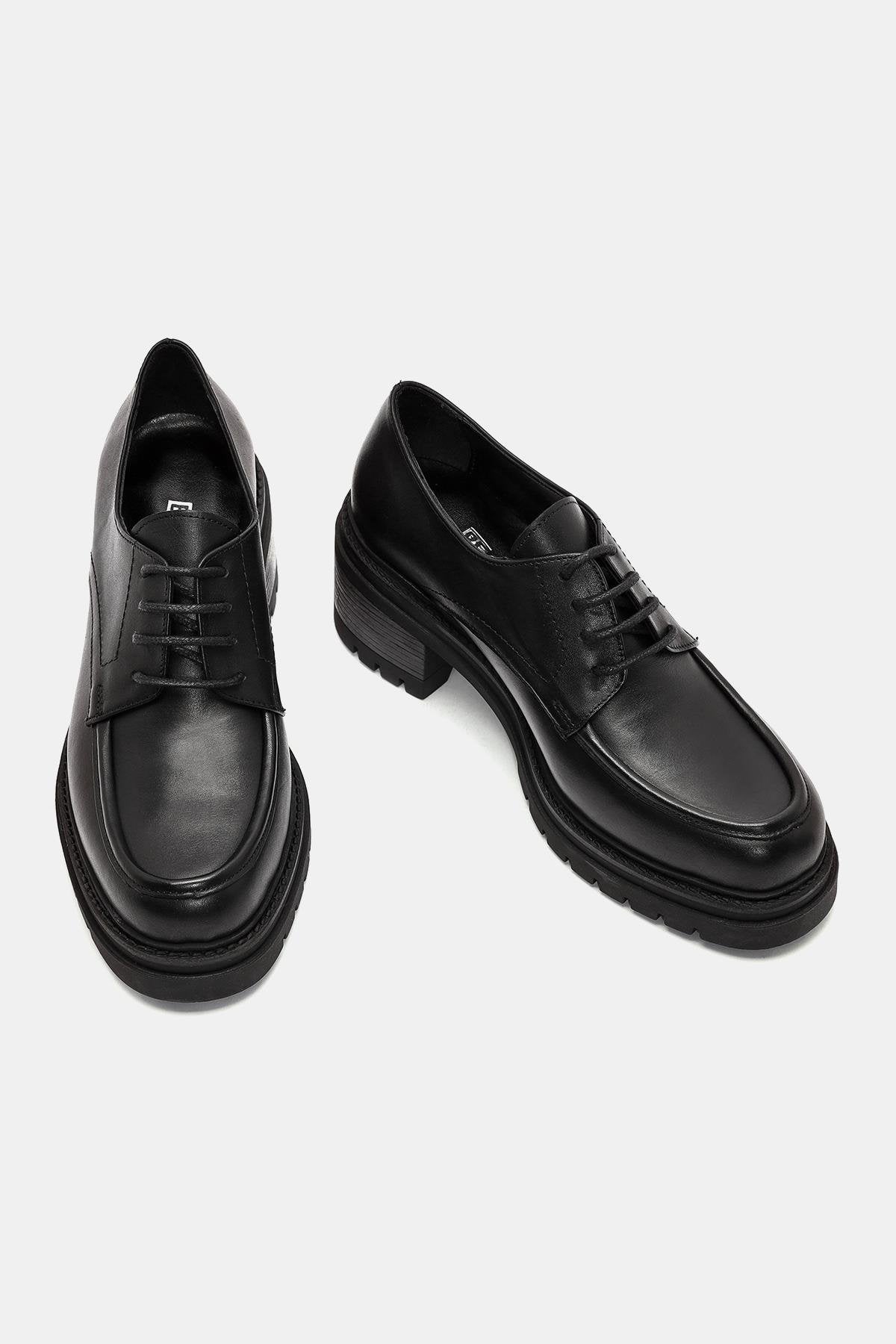 Vintage Kadın Siyah Gerçek Deri Kalın Topuklu Klasik Ayakkabı
