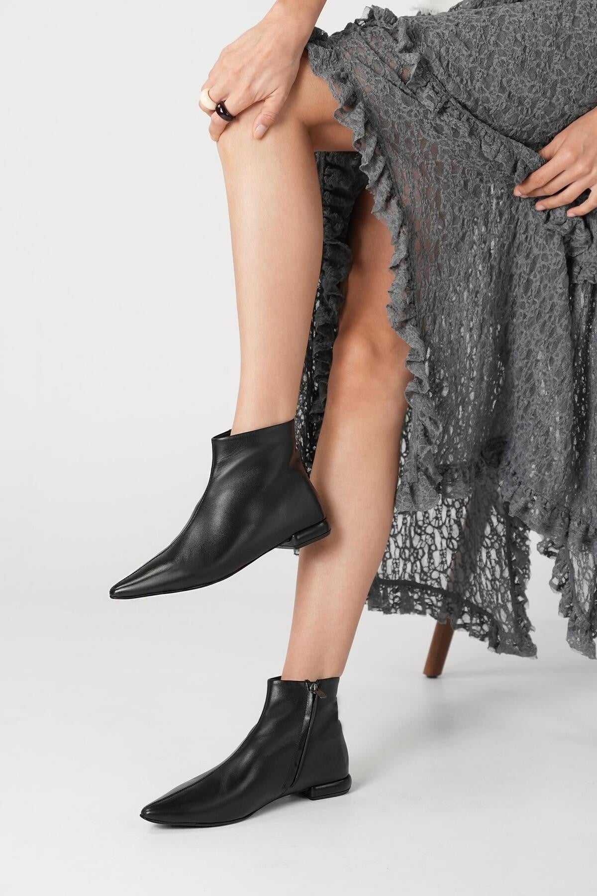 VITA Kadın Siyah %100 Gerçek Deri Sivri Burun Bot