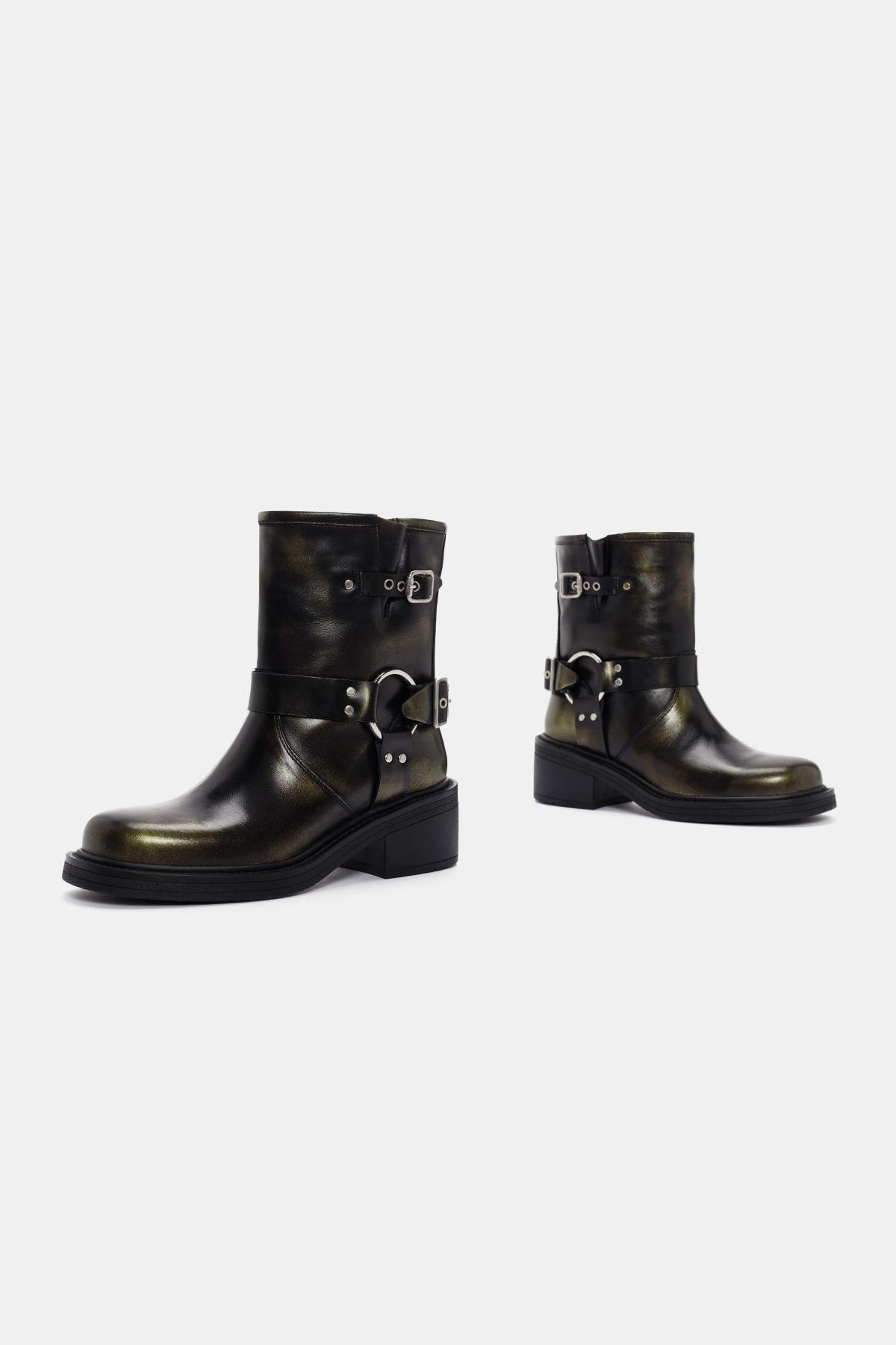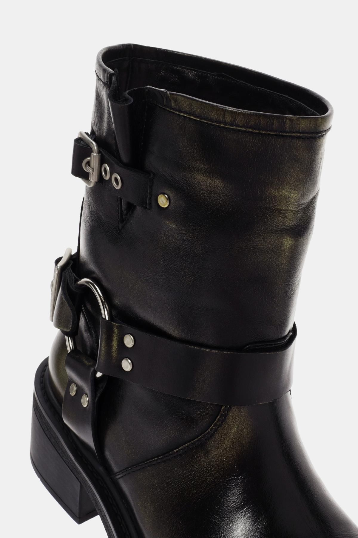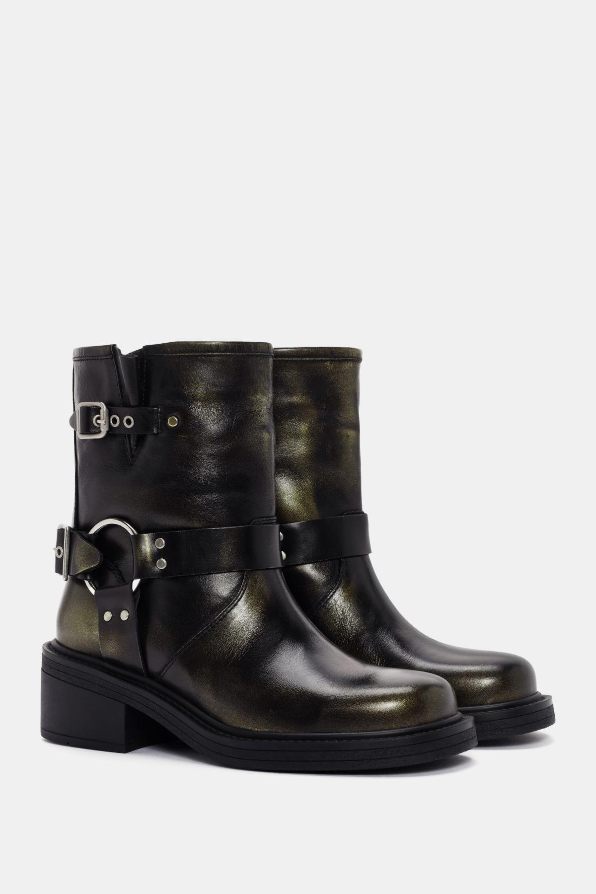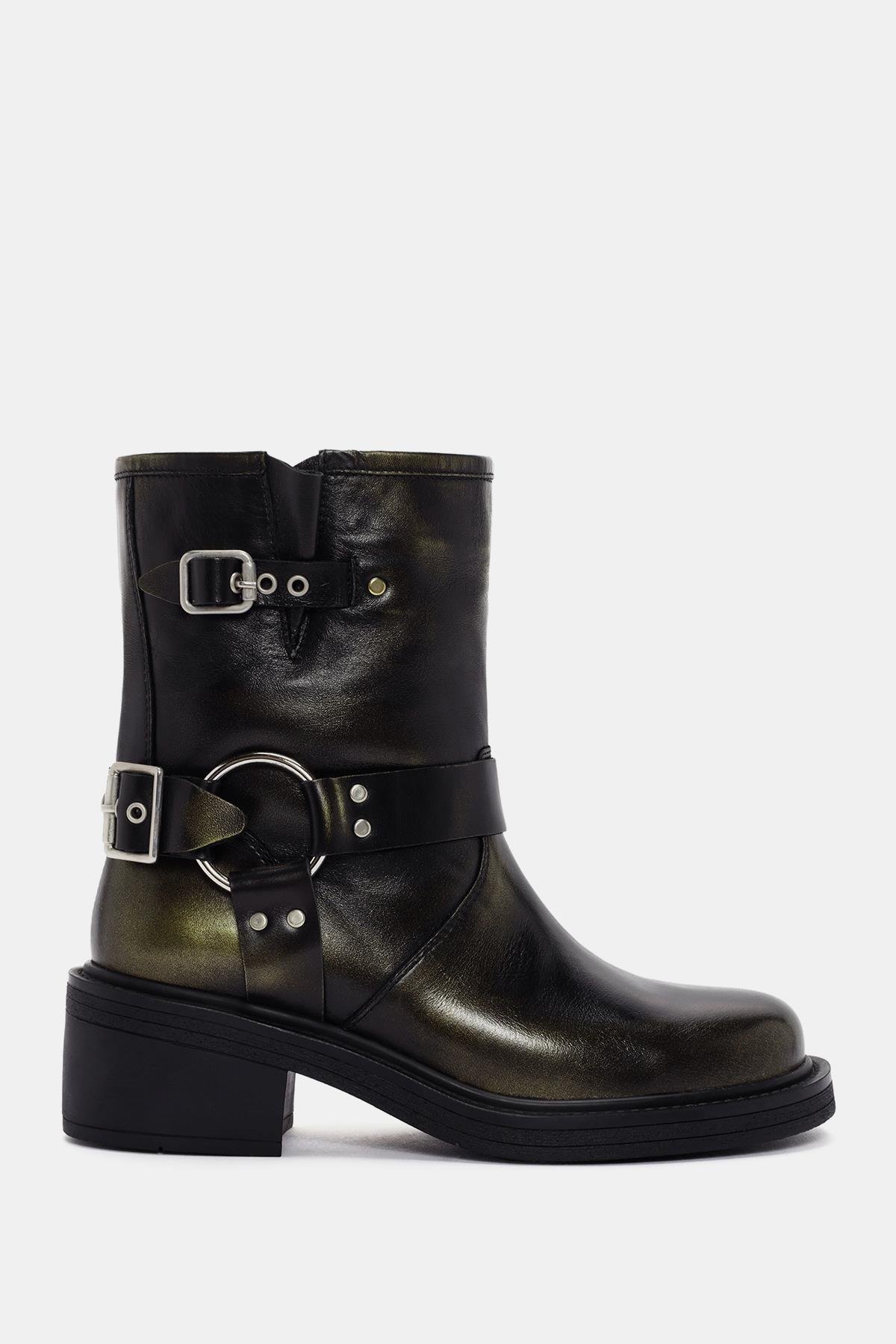 Bu botun dış yüzeyi gerçek deri ile yapılmış, böylece kaliteli ve dayanıklı bir malzeme kullanılarak üretilmiş. Metalik tokalarıyla tamamlanan tasarımı, botu sıradanlıktan çıkararak özgün bir hava katıyor.
