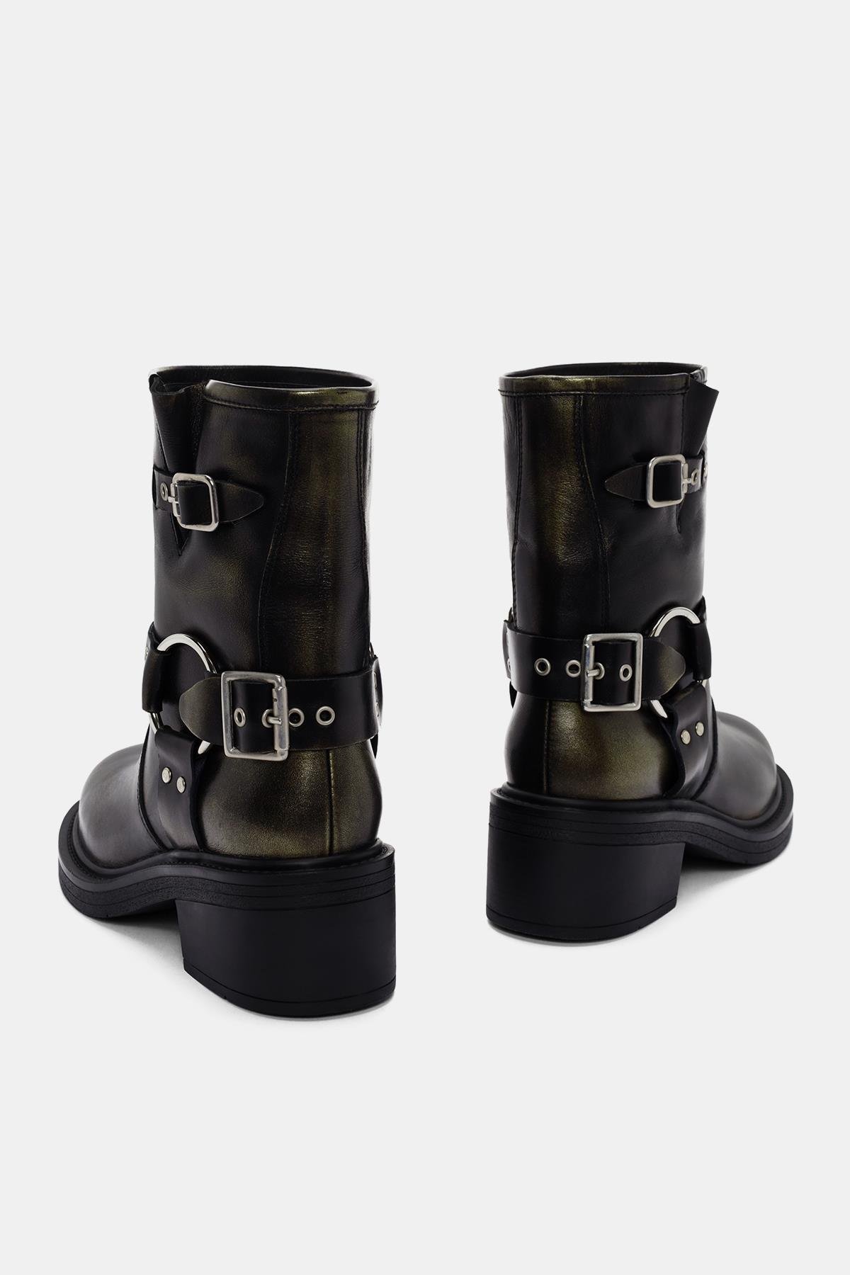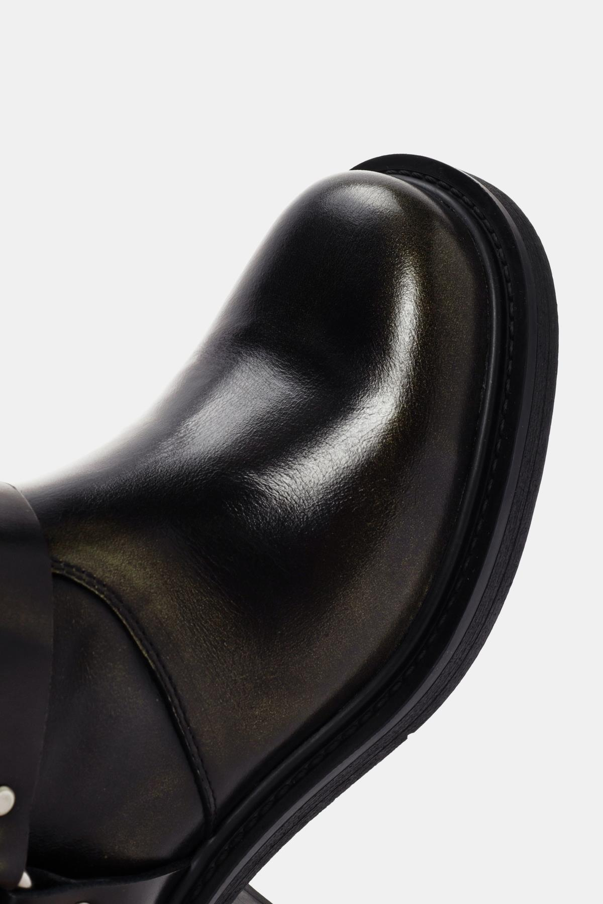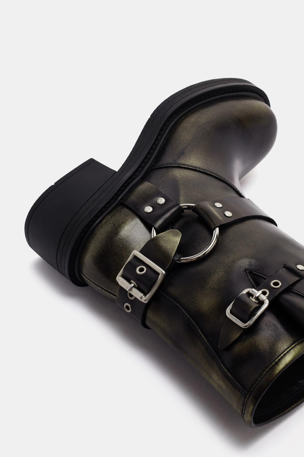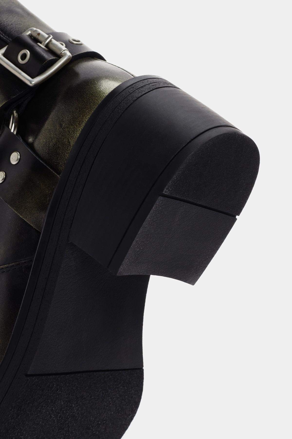 Bu botun dış yüzeyi gerçek deri ile yapılmış, böylece kaliteli ve dayanıklı bir malzeme kullanılarak üretilmiş. Metalik tokalarıyla tamamlanan tasarımı, botu sıradanlıktan çıkararak özgün bir hava katıyor.