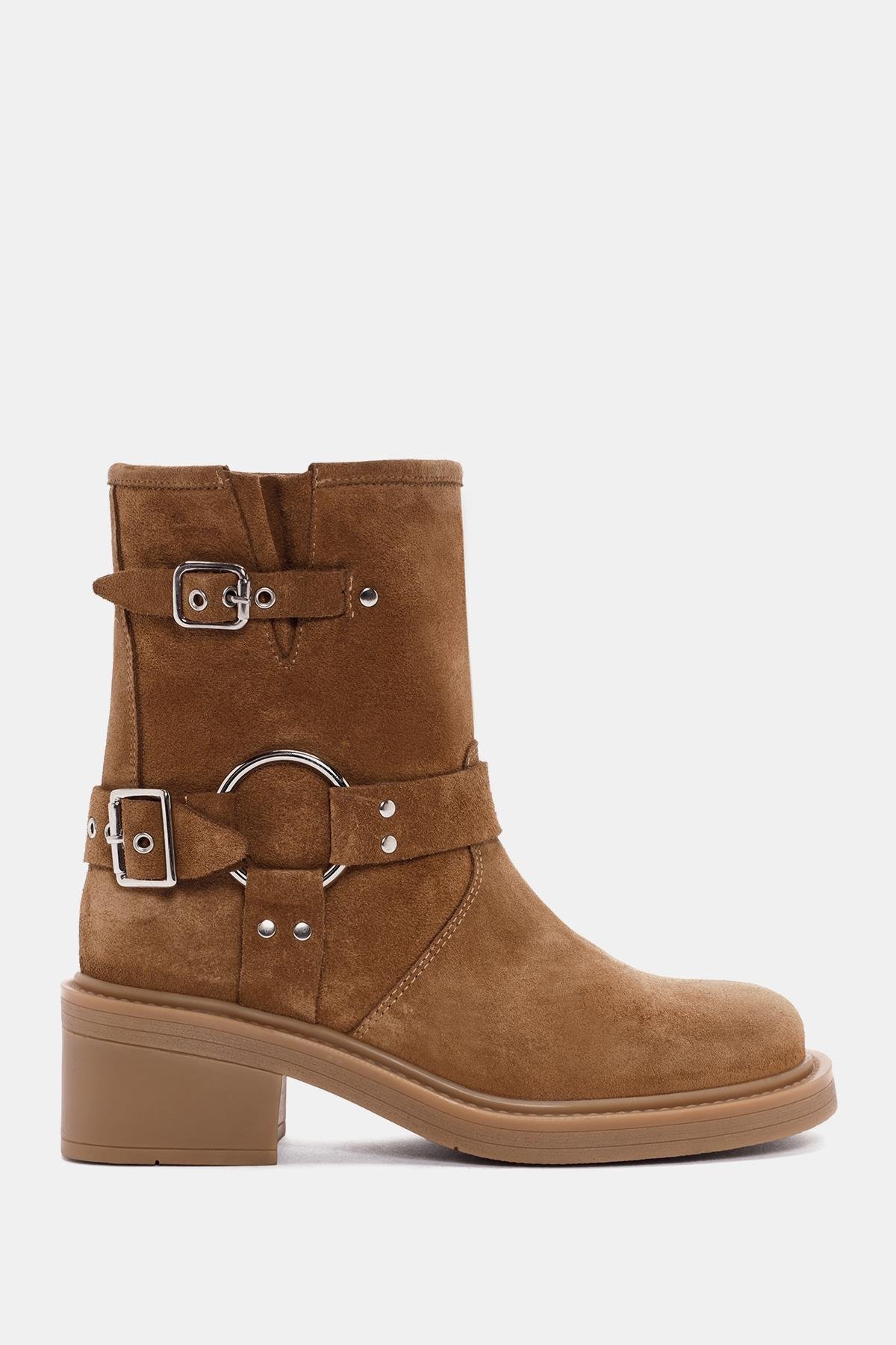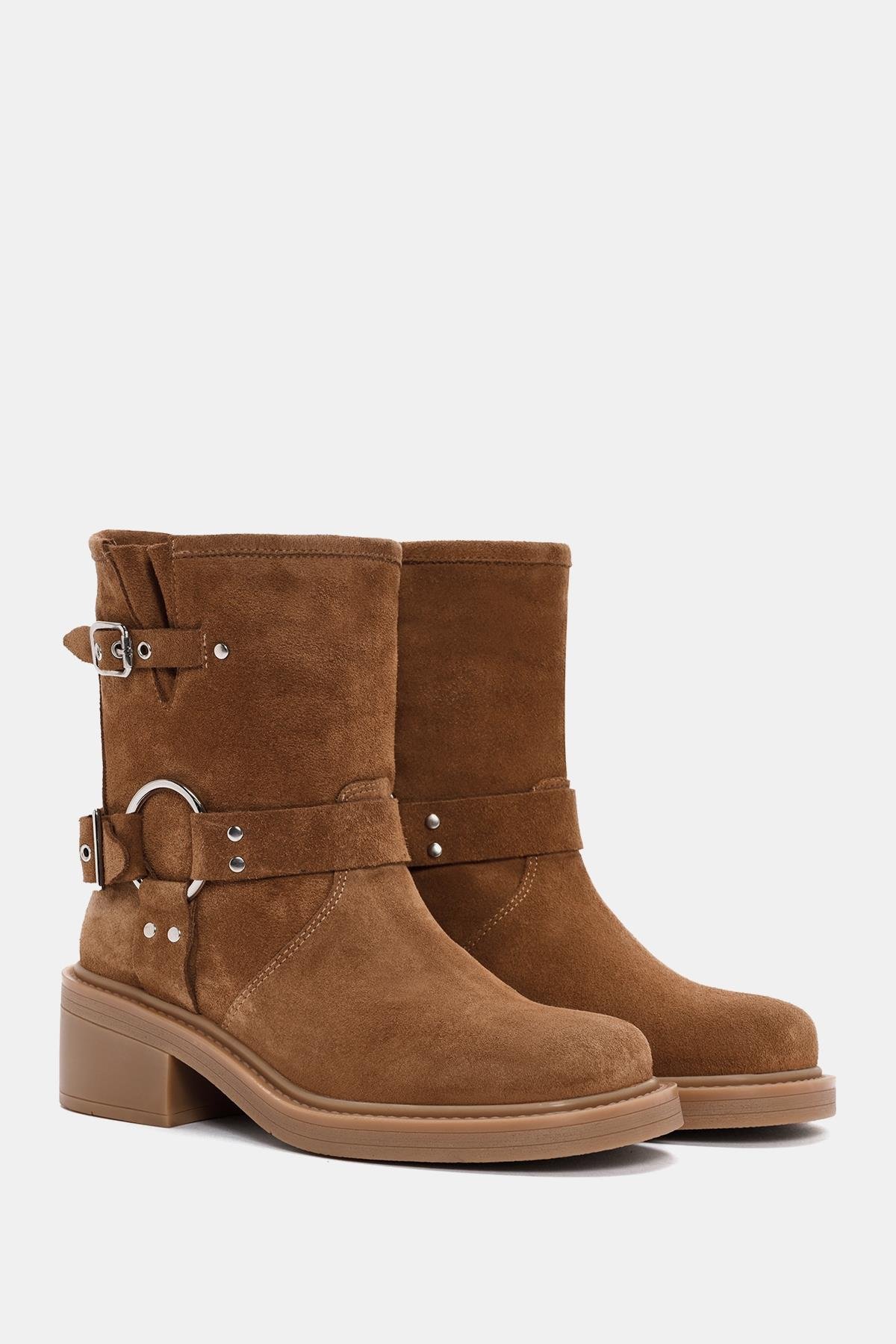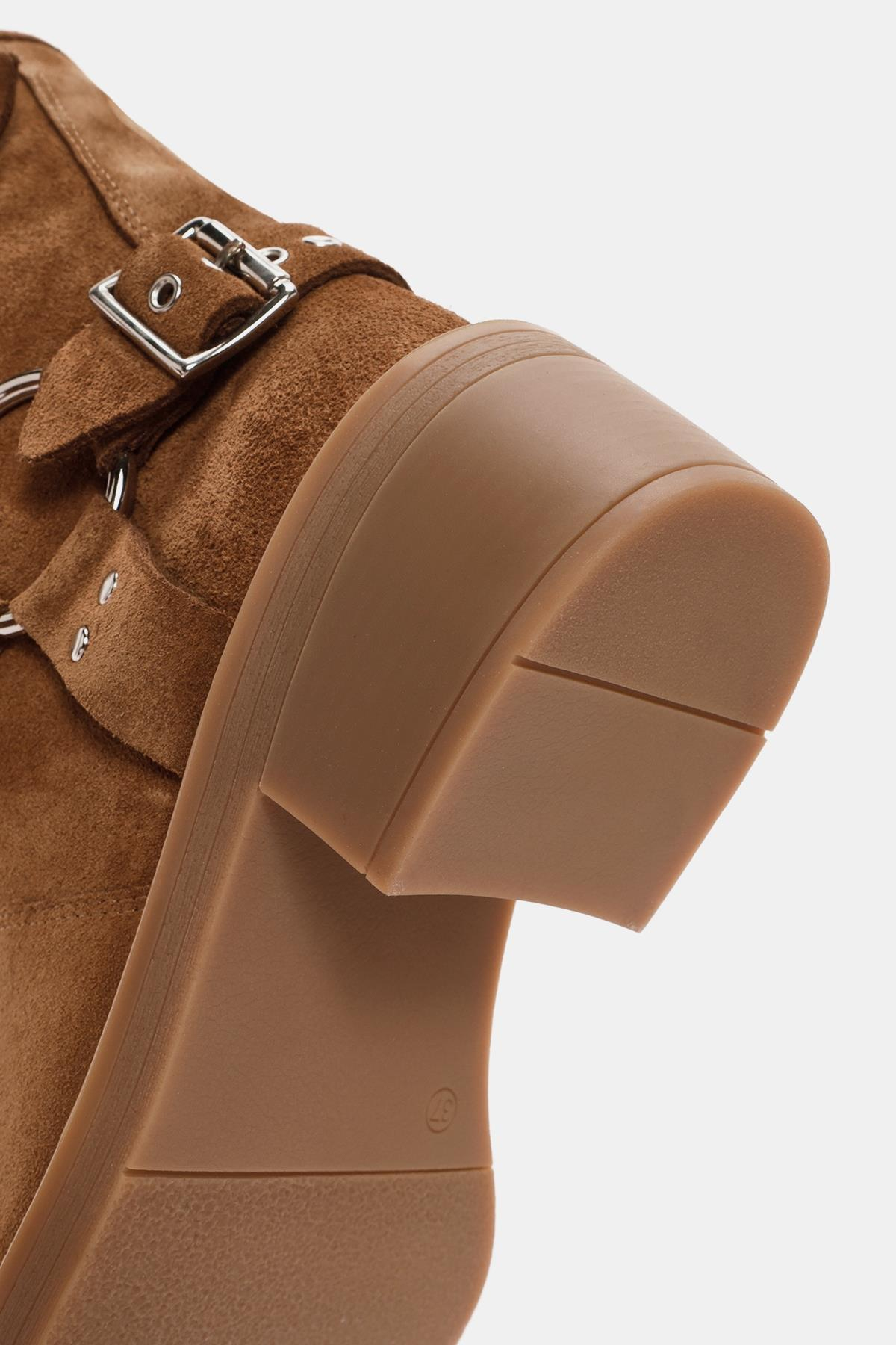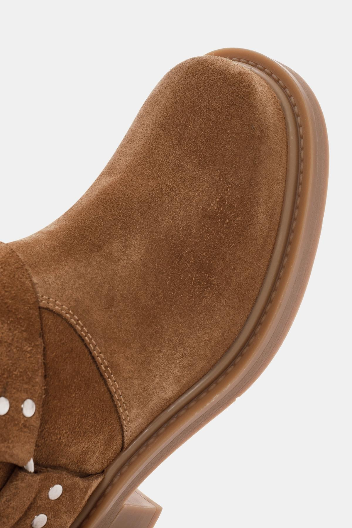 Bu botun dış yüzeyi gerçek süet deri kombinasyonuyla yapılmış, böylece kaliteli ve dayanıklı bir malzeme kullanılarak üretilmiş. Camel rengiyle tamamlanan tasarımı, botu sıradanlıktan çıkararak özgün bir hava katıyor.