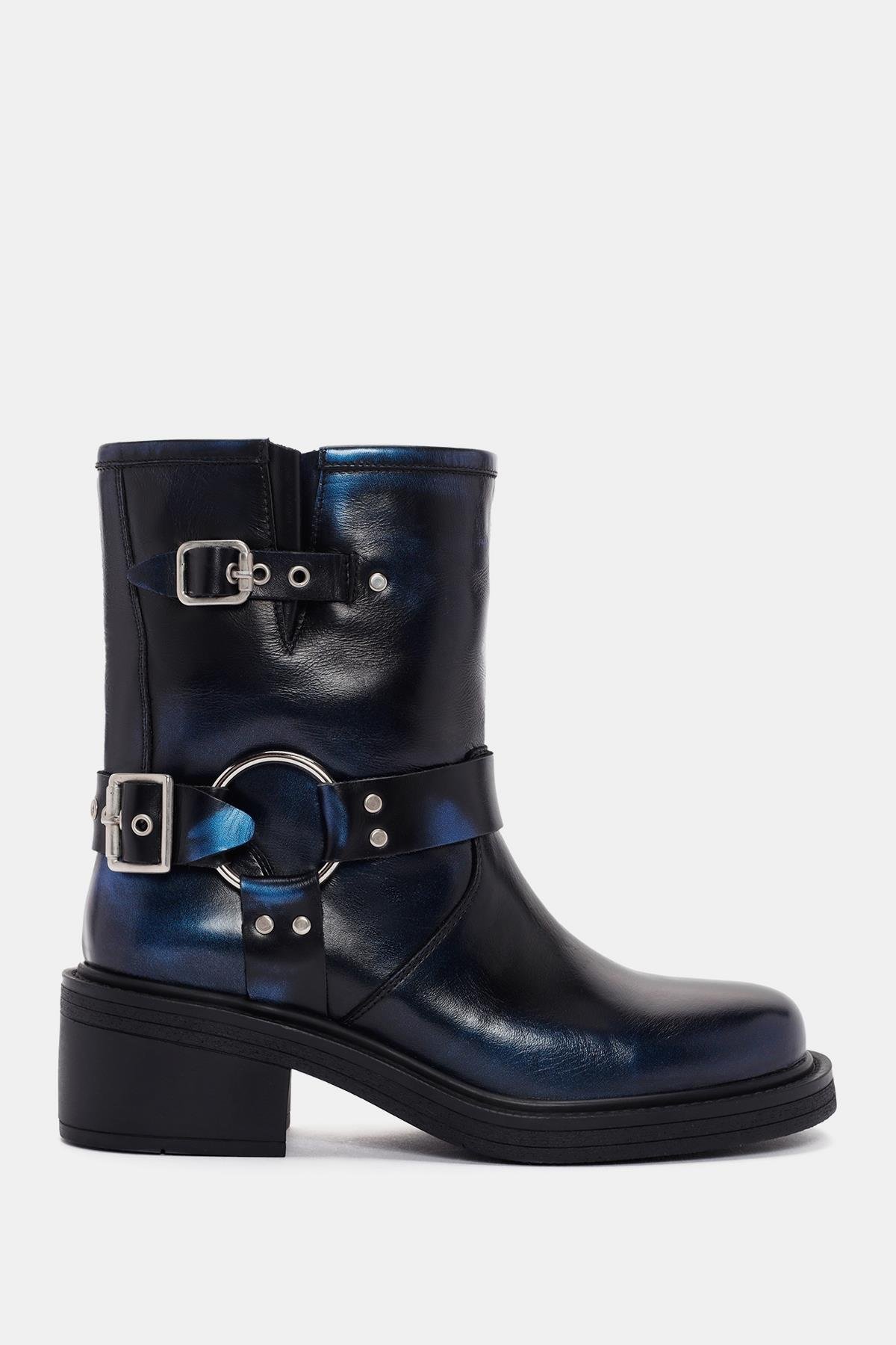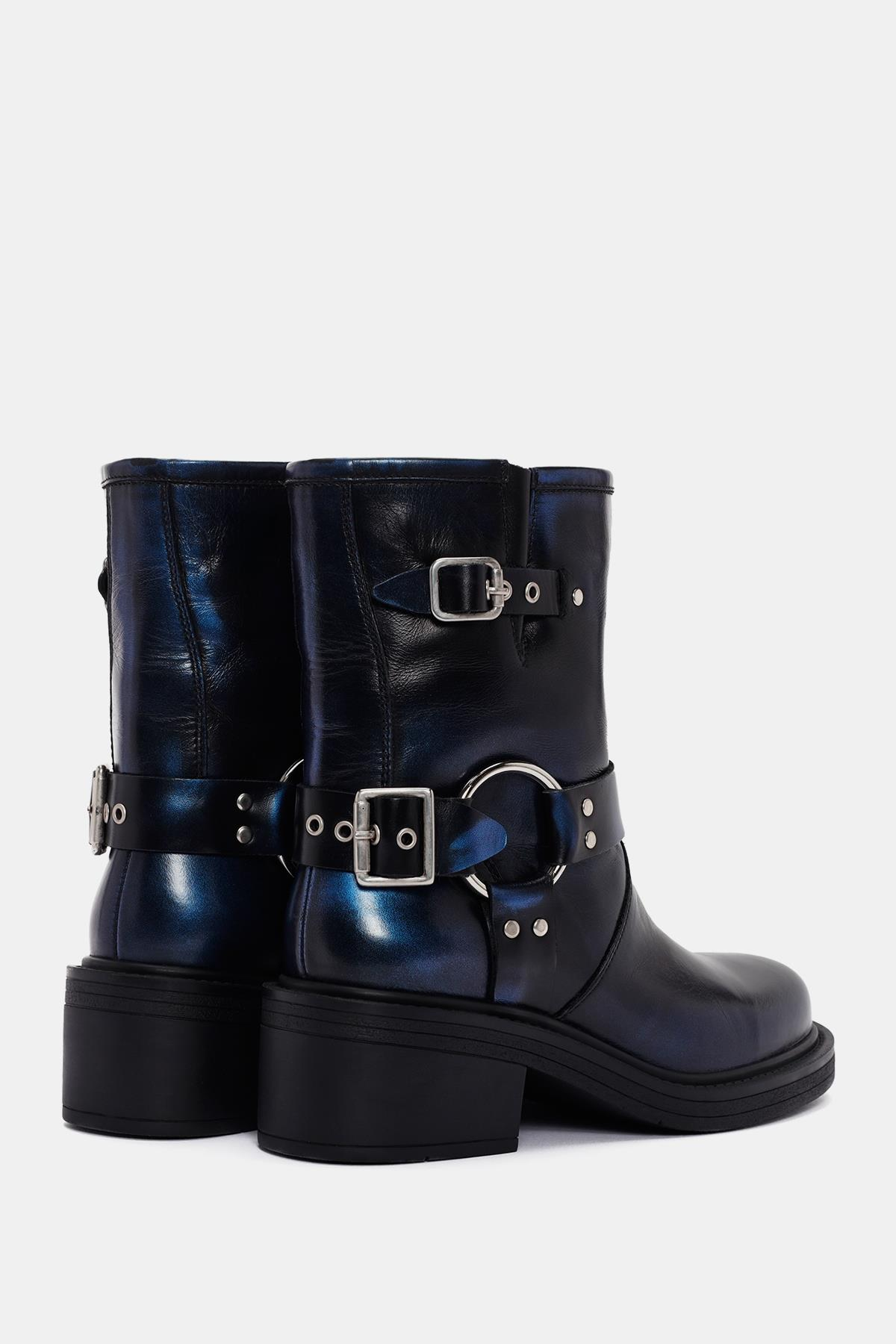 Bestyle markasının özgün tasarımlarından biri olan Rock Kadın Metalik Mavi Rengi Toka Detaylı Deri Bot, şıklığı ve özgünlüğü bir araya getiriyor. Metalik mavi rengi detaylarıyla dikkat çeken bu bot, güçlü bir görünüm sunarken aynı zamanda zarif detaylarıyla da öne çıkıyor.