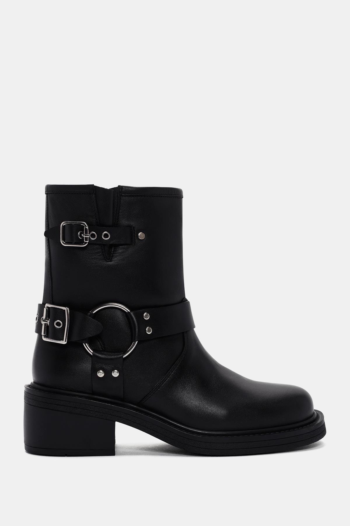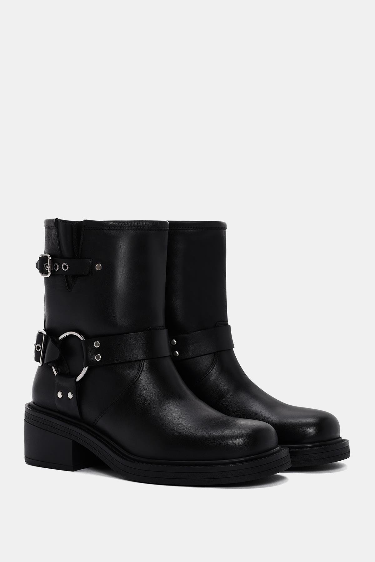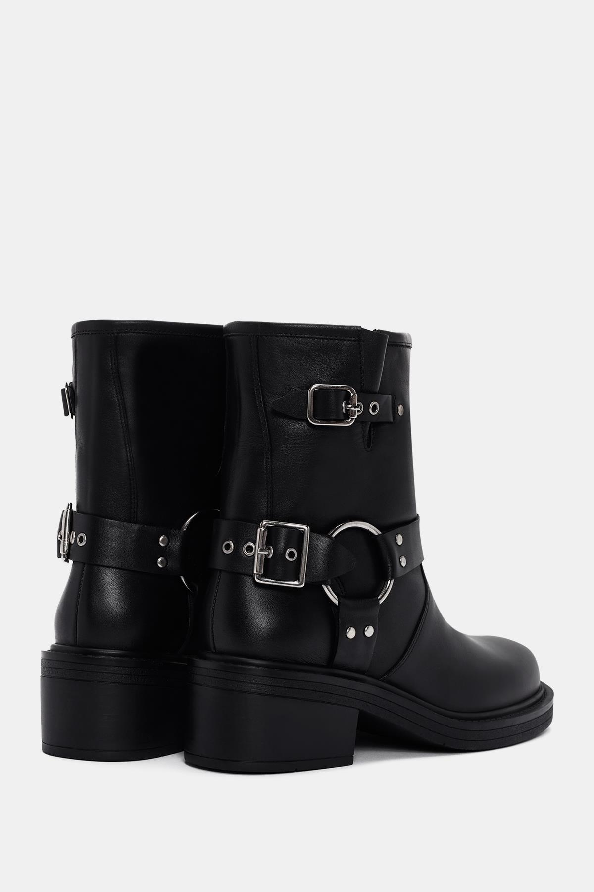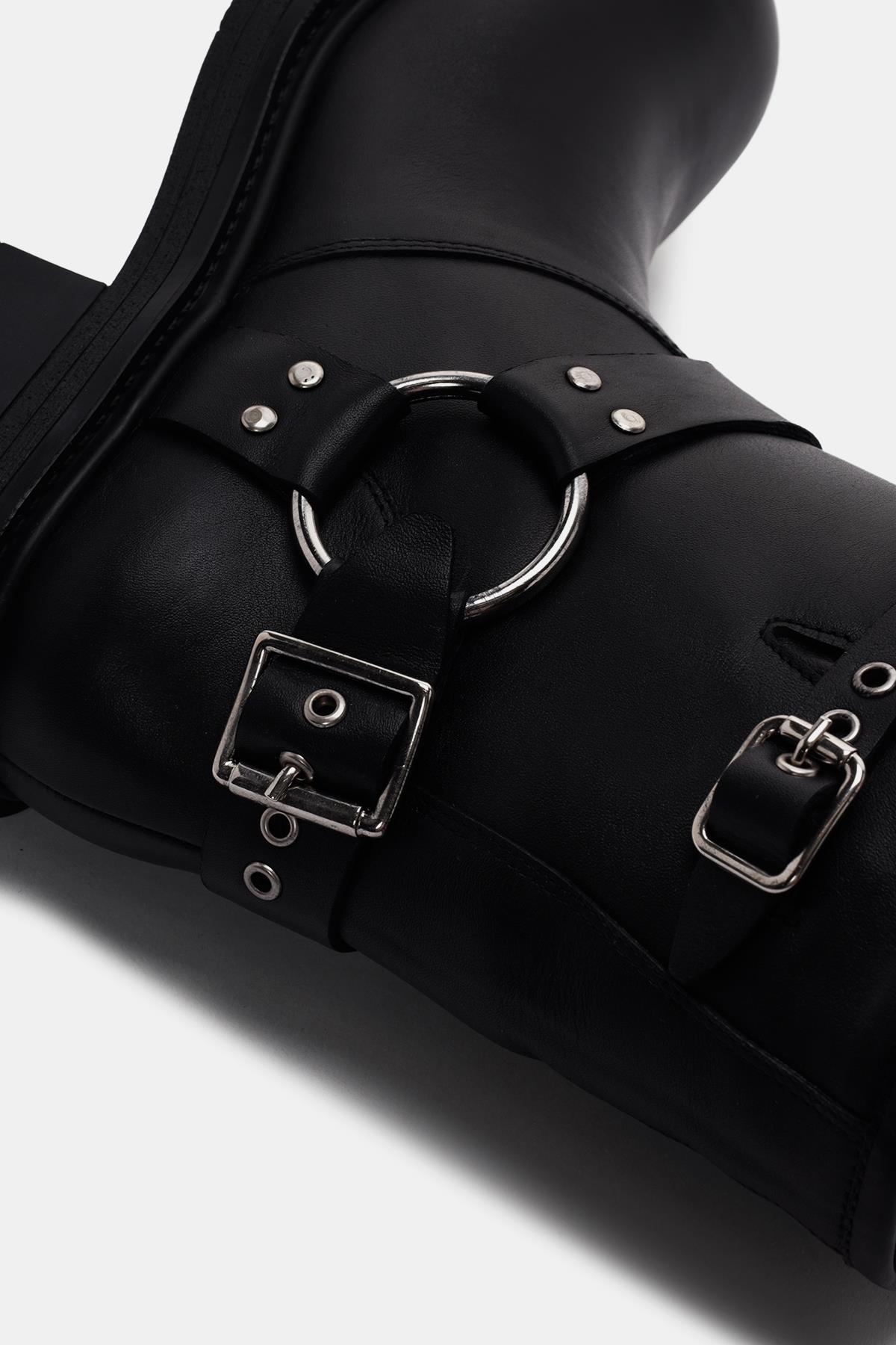 Bu botun dış yüzeyi gerçek deri ile kaplanmış, böylece kaliteli ve dayanıklı bir malzeme kullanılarak üretilmiş. Siyah renk seçimi, botu her tarza uyumlu hale getirirken, tokalar ise ekstra bir şıklık katıyor.