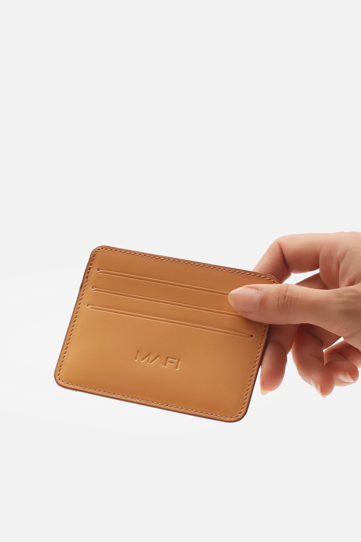 Terra El Yapımı El Boyaması Hakiki Deri Kartlık – 6 Kart Yuvalı, Zamansız Tasarım (BSK-01994/Camel)
