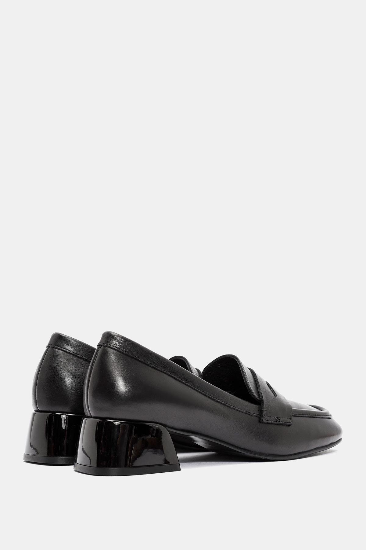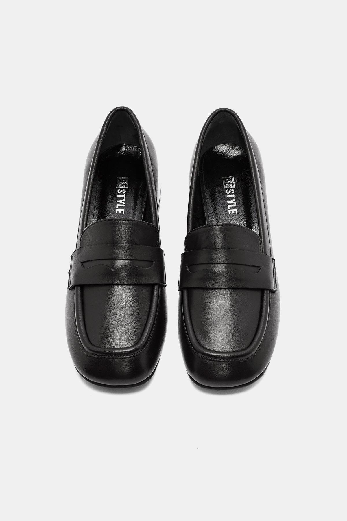 Venüs Kadın Siyah Gerçek Deri Makosen Kalın Topuklu Ayakkabı