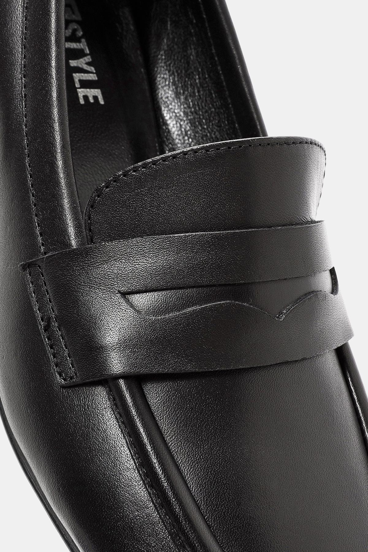 Venüs Kadın Siyah Gerçek Deri Makosen Kalın Topuklu Ayakkabı (OTS2152-Siyah)
