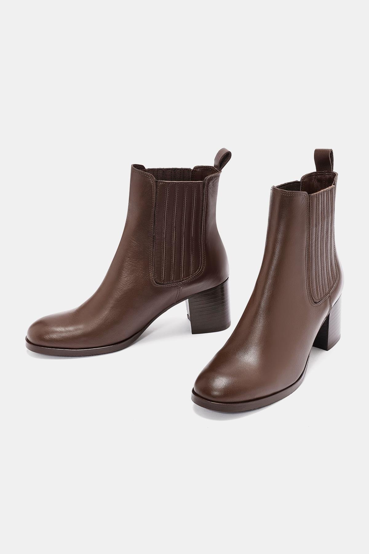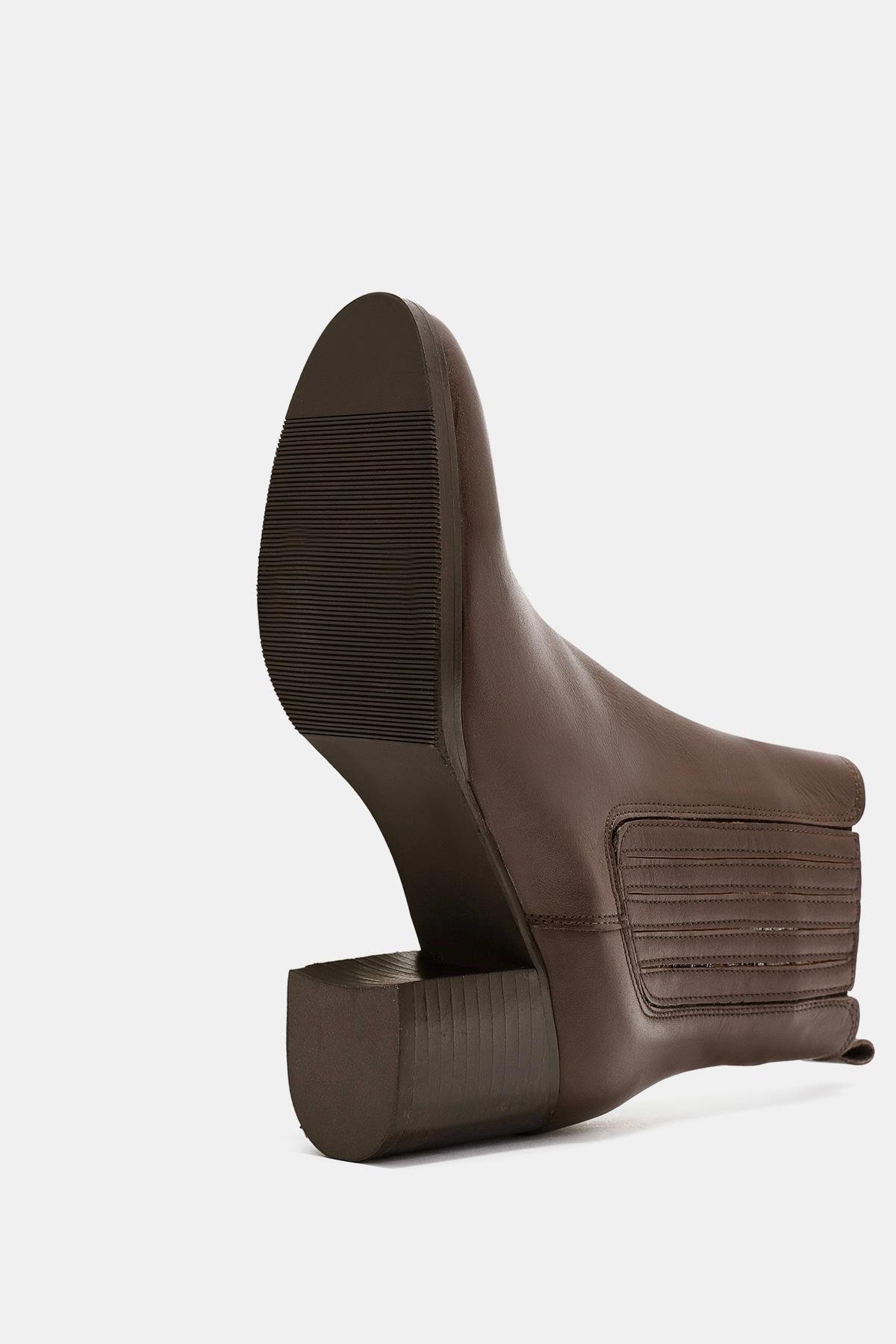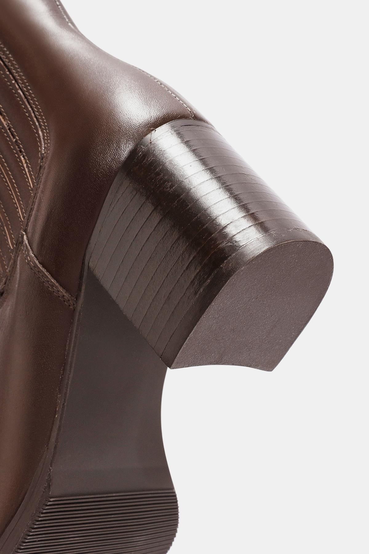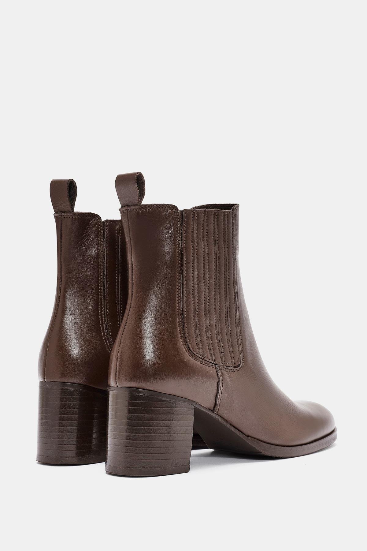 Villa Kadın Koyu Kahverengi Gerçek Deri Topuklu Klasik Bot (OTS2156-Kahverengi)