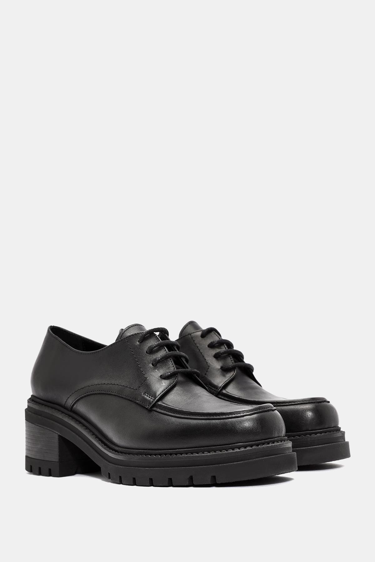Vintage Kadın Siyah Gerçek Deri Kalın Topuklu Klasik Ayakkabı