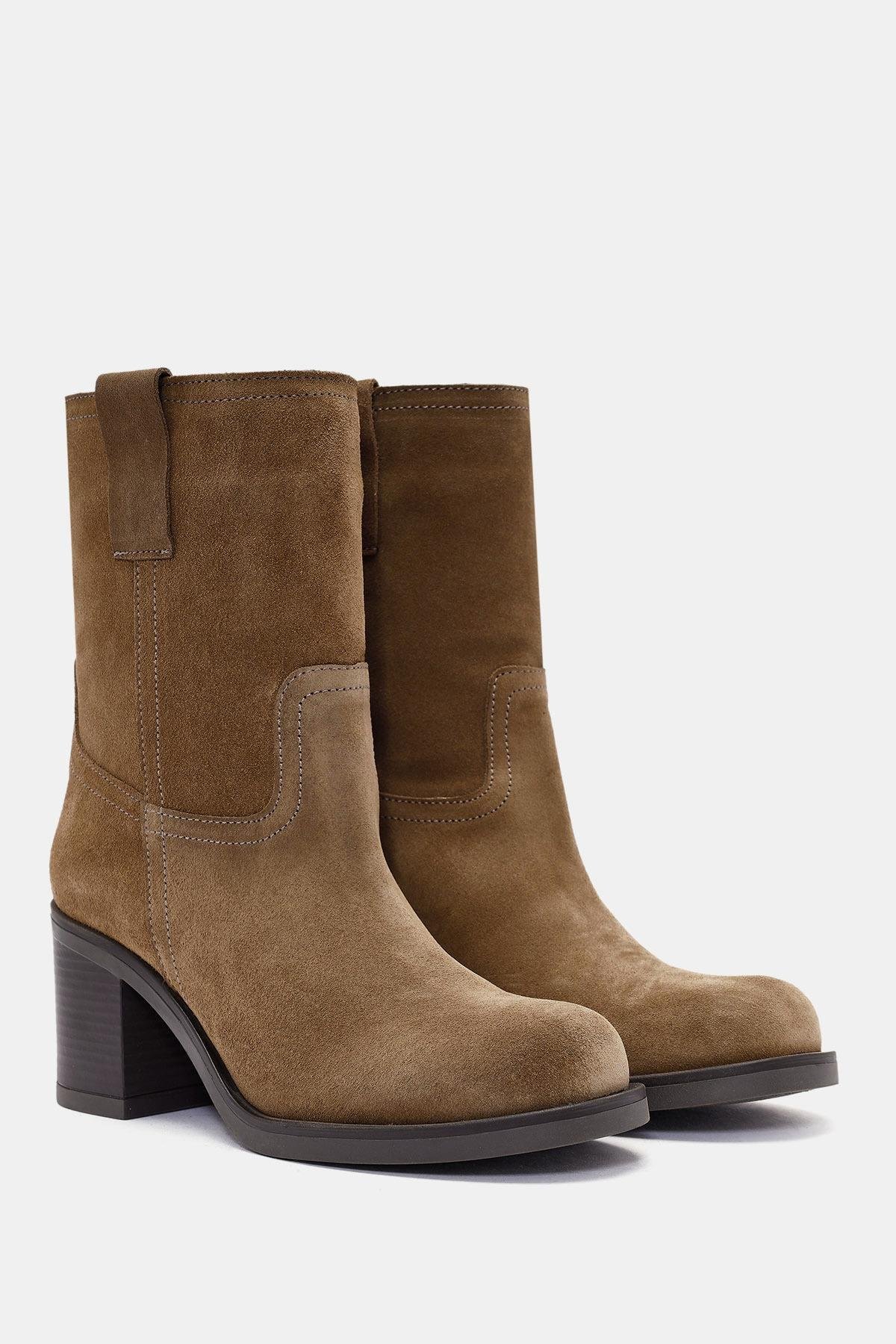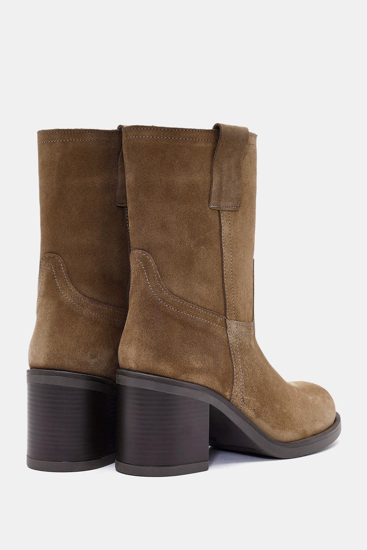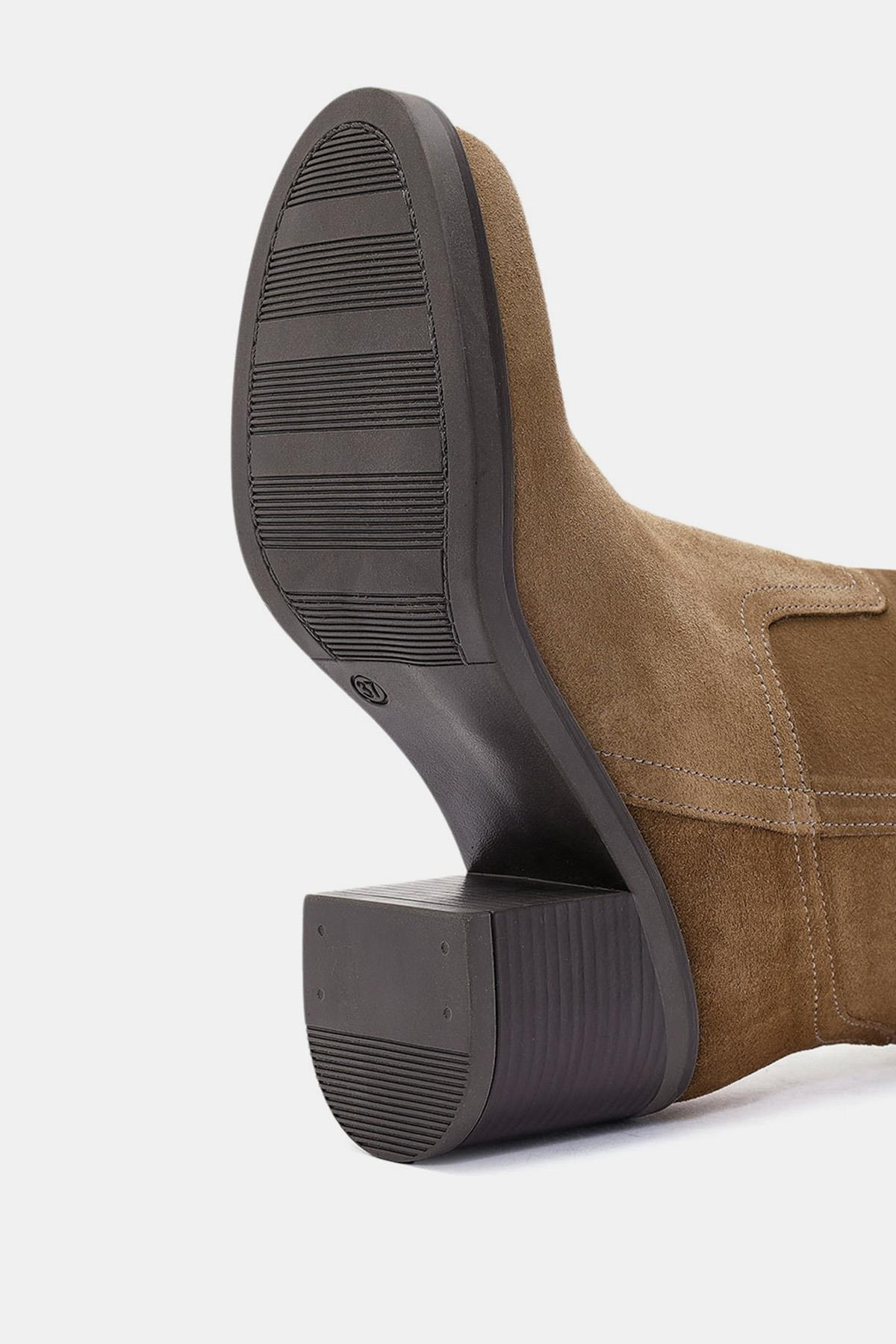 Zenda Kadın Camel Gerçek Süet Deri Kalın Topuklu Bot
