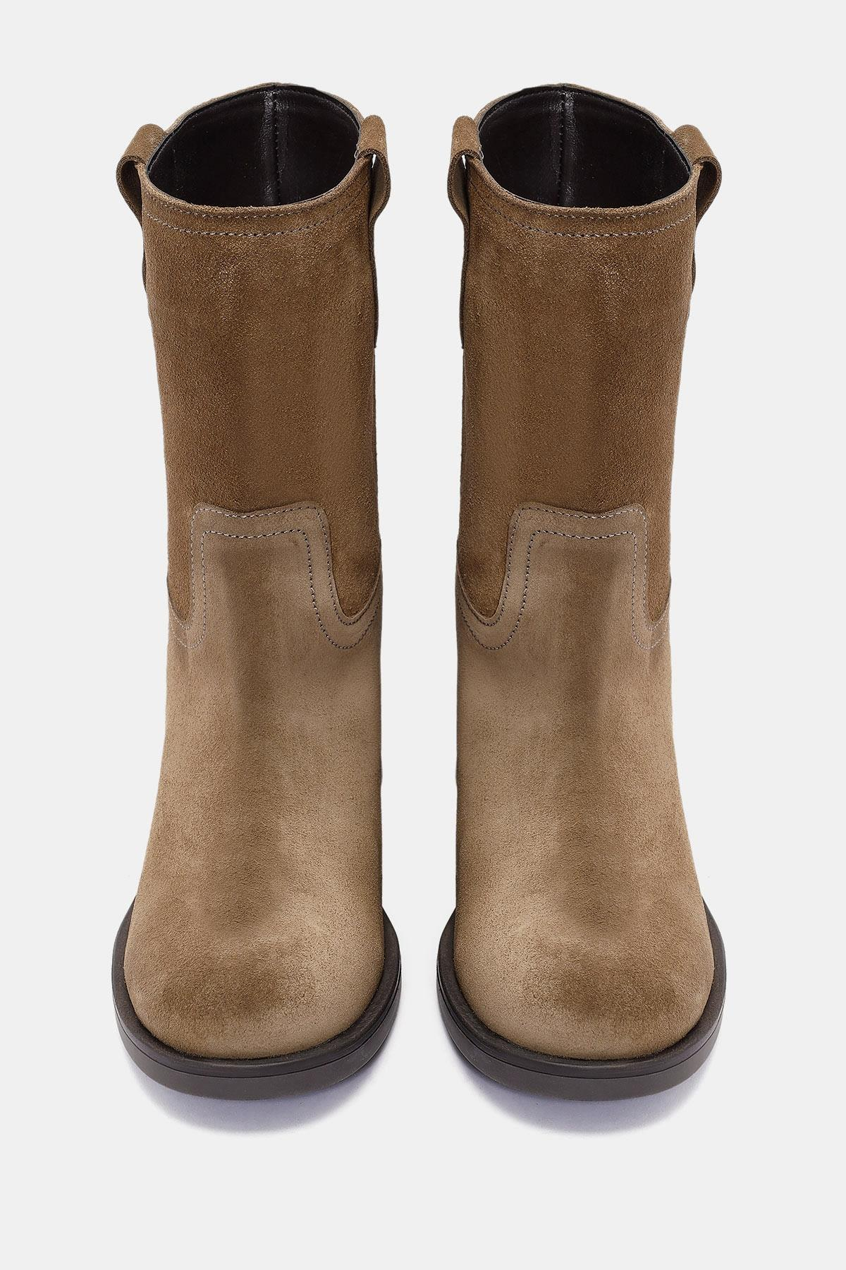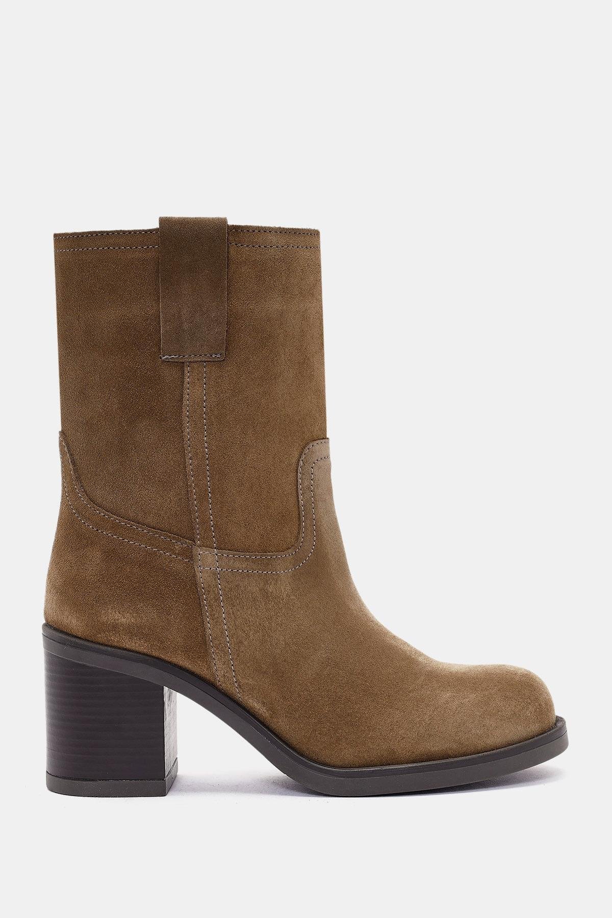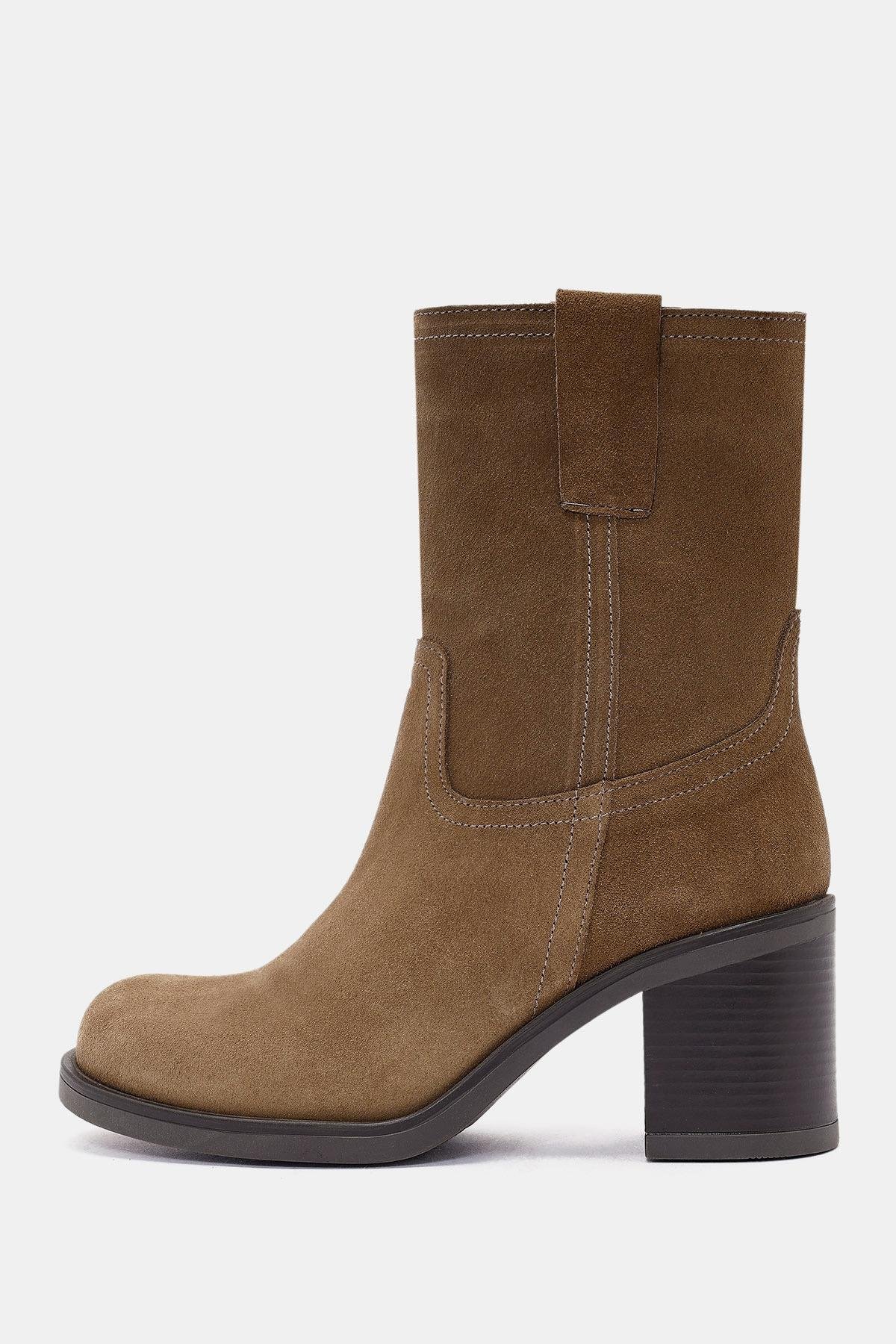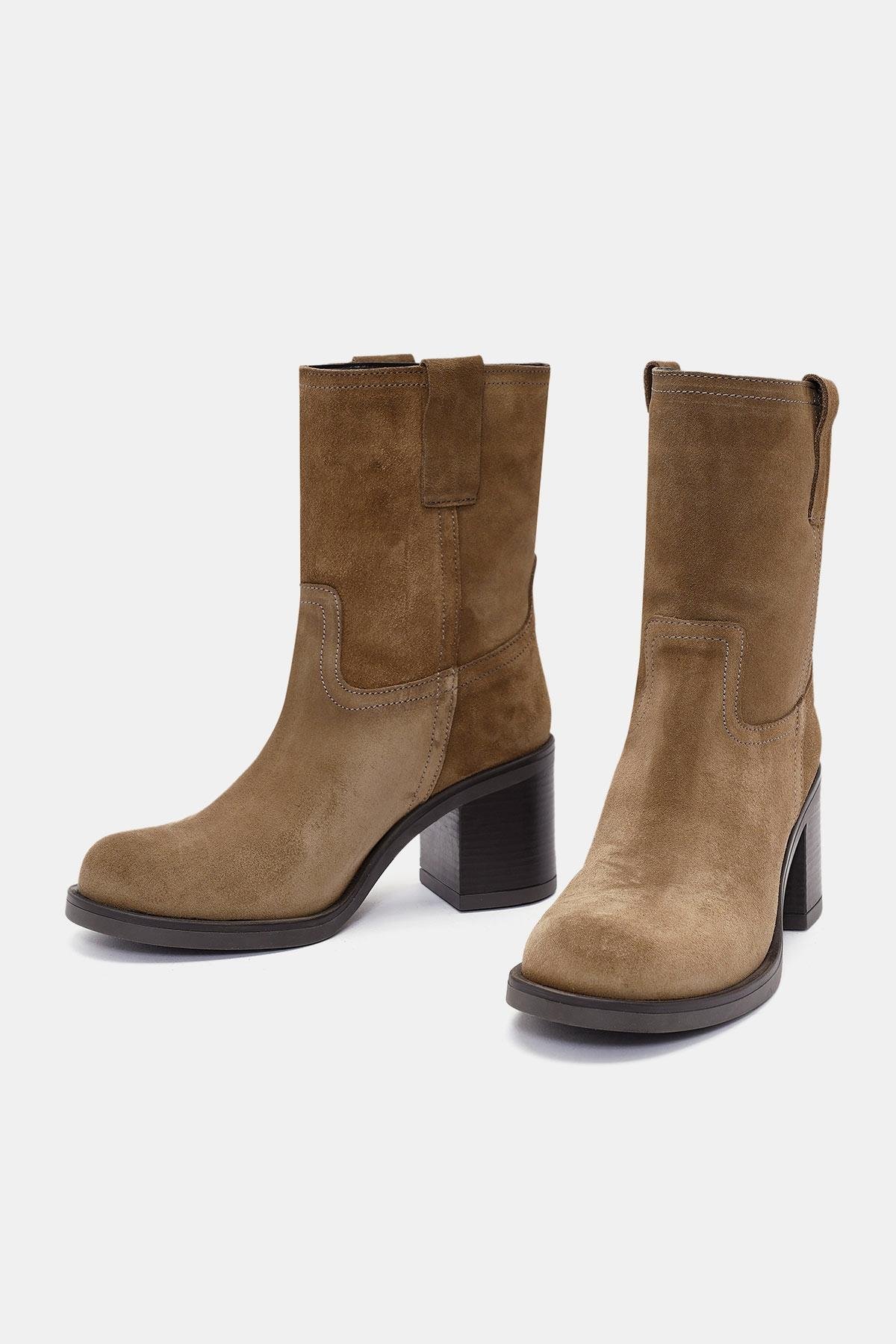Zenda Kadın Camel Gerçek Süet Deri Kalın Topuklu Bot