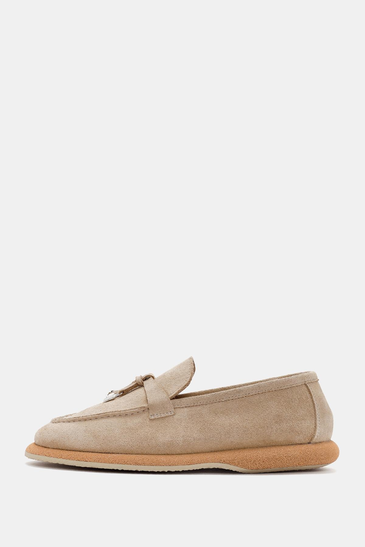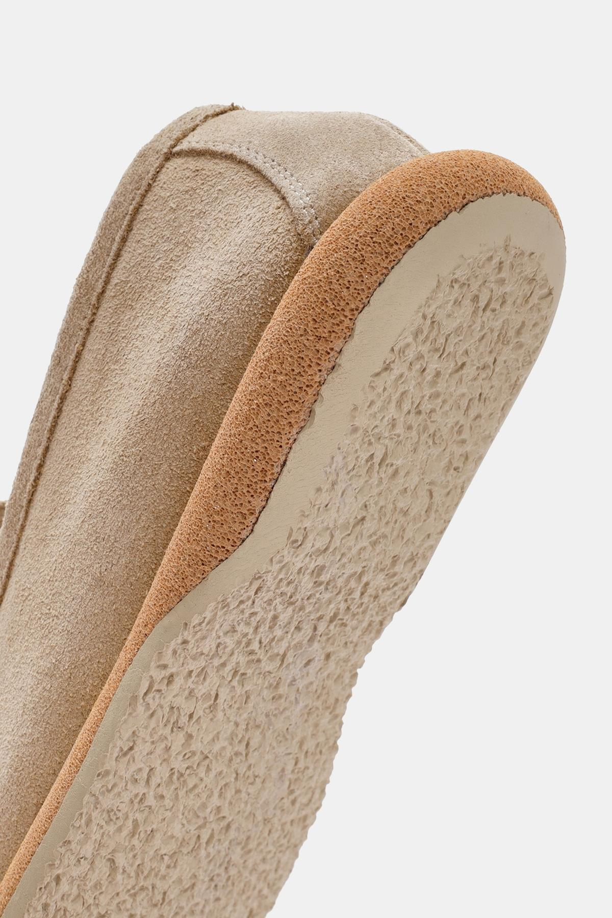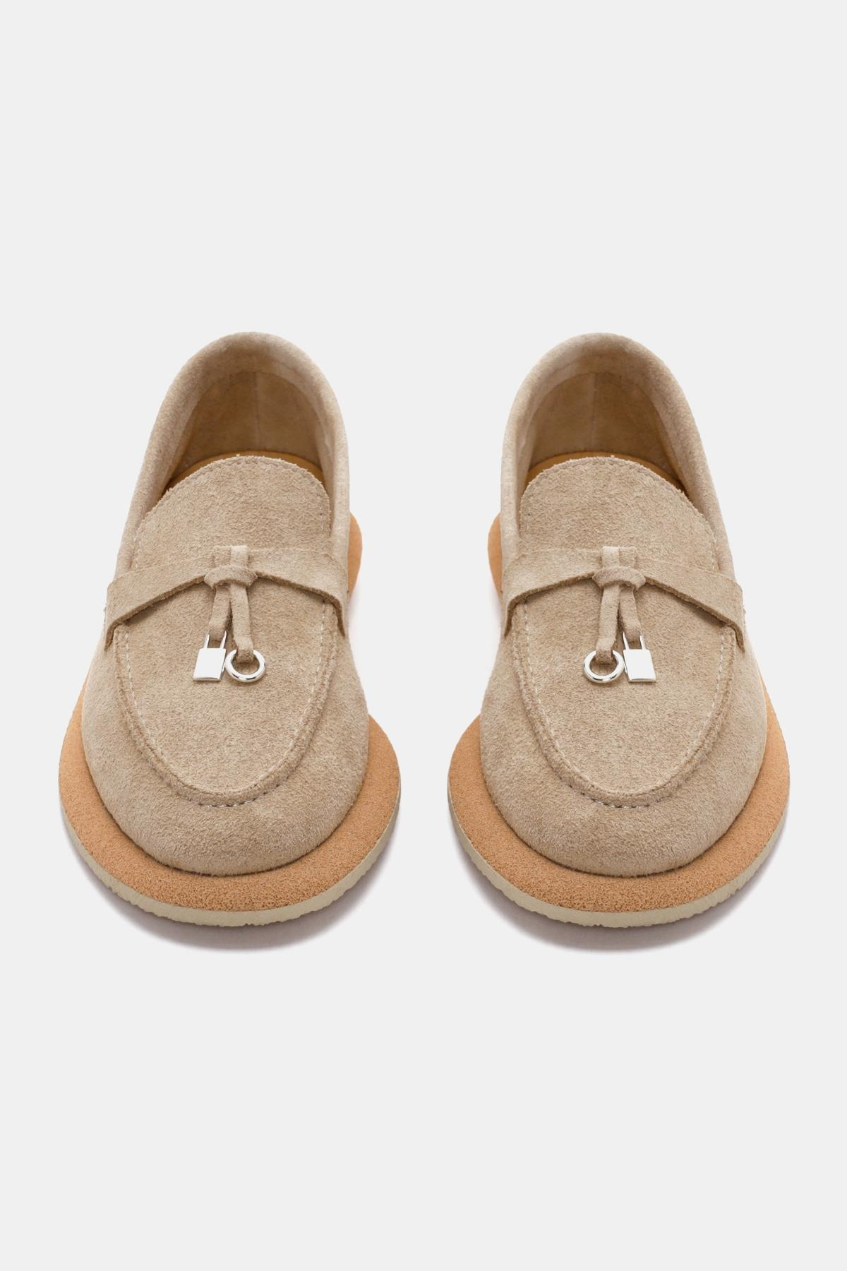 Aden Kadın Bej Süet Deri Loafer, zarif ve rahat tasarımıyla günlük kullanım için mükemmel bir tercihtir. Yumuşak süet deri malzemesi, ayaklarınıza konfor sunarken, bej rengi çeşitli kıyafetlerle kolayca uyum sağlar.