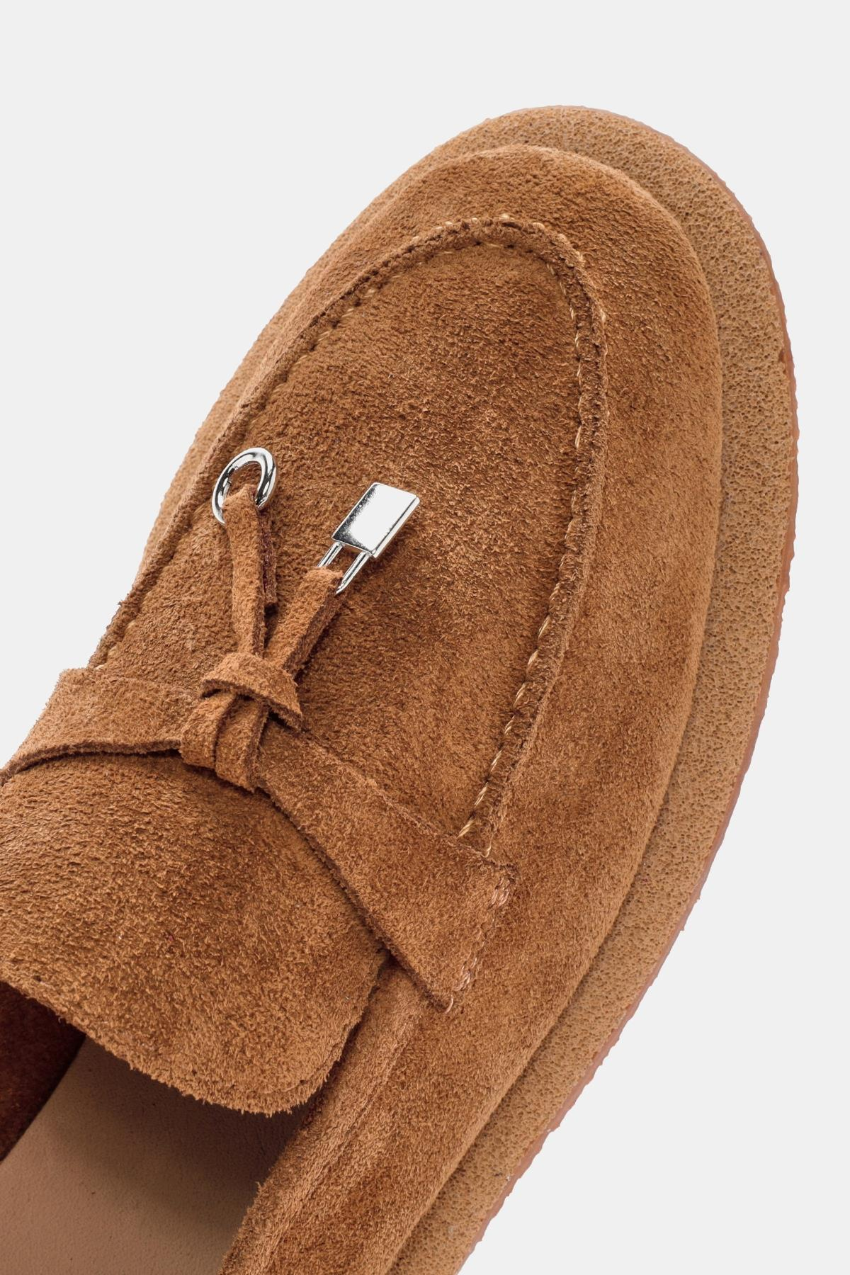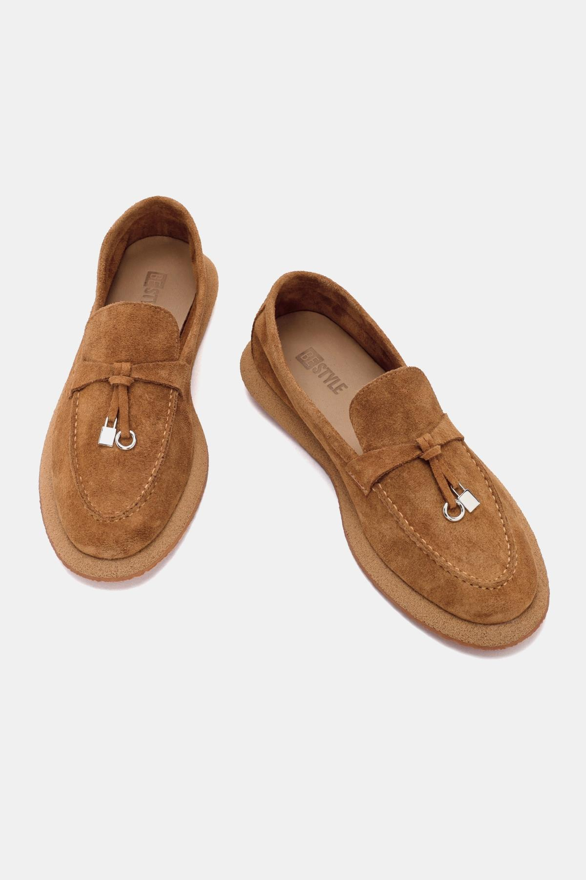 Aden Kadın Bej Süet Deri Loafer, günlük şıklığı ve konforu bir araya getiriyor. Yumuşak süet deri yapısı ve zarif bej rengiyle, her türlü kombinle uyum sağlar.